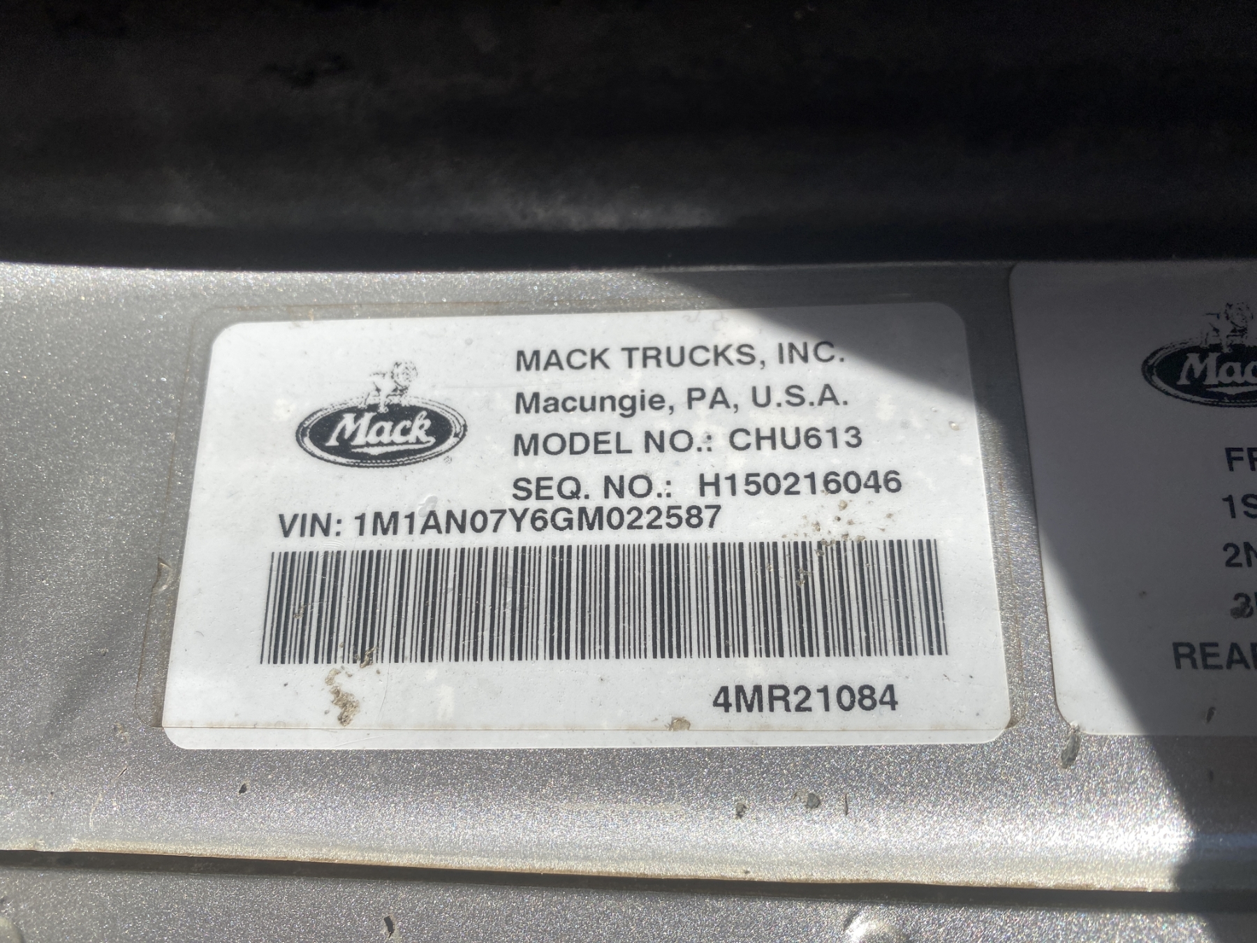 Vehicle ID Number: 1M1AN07Y6GM022587