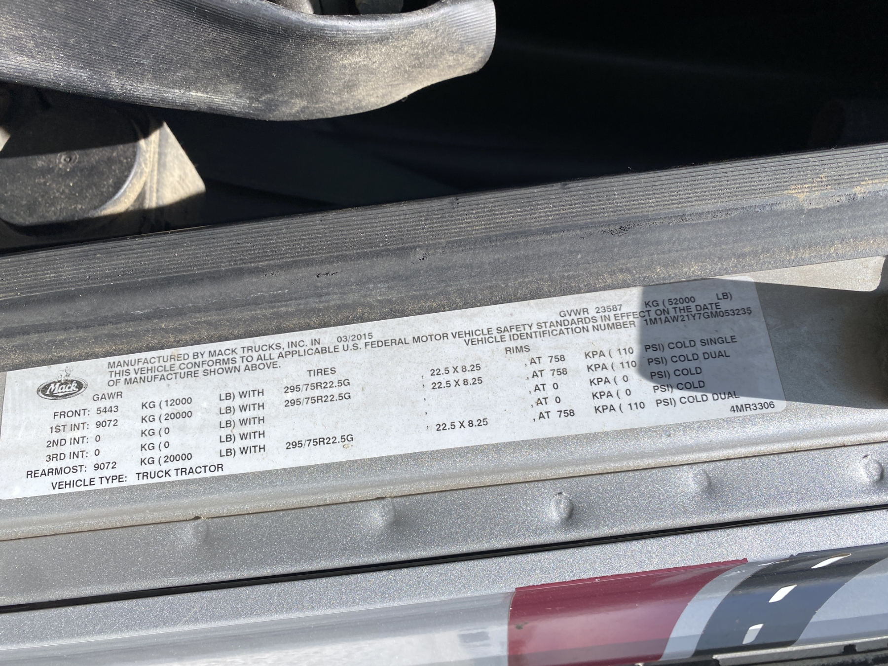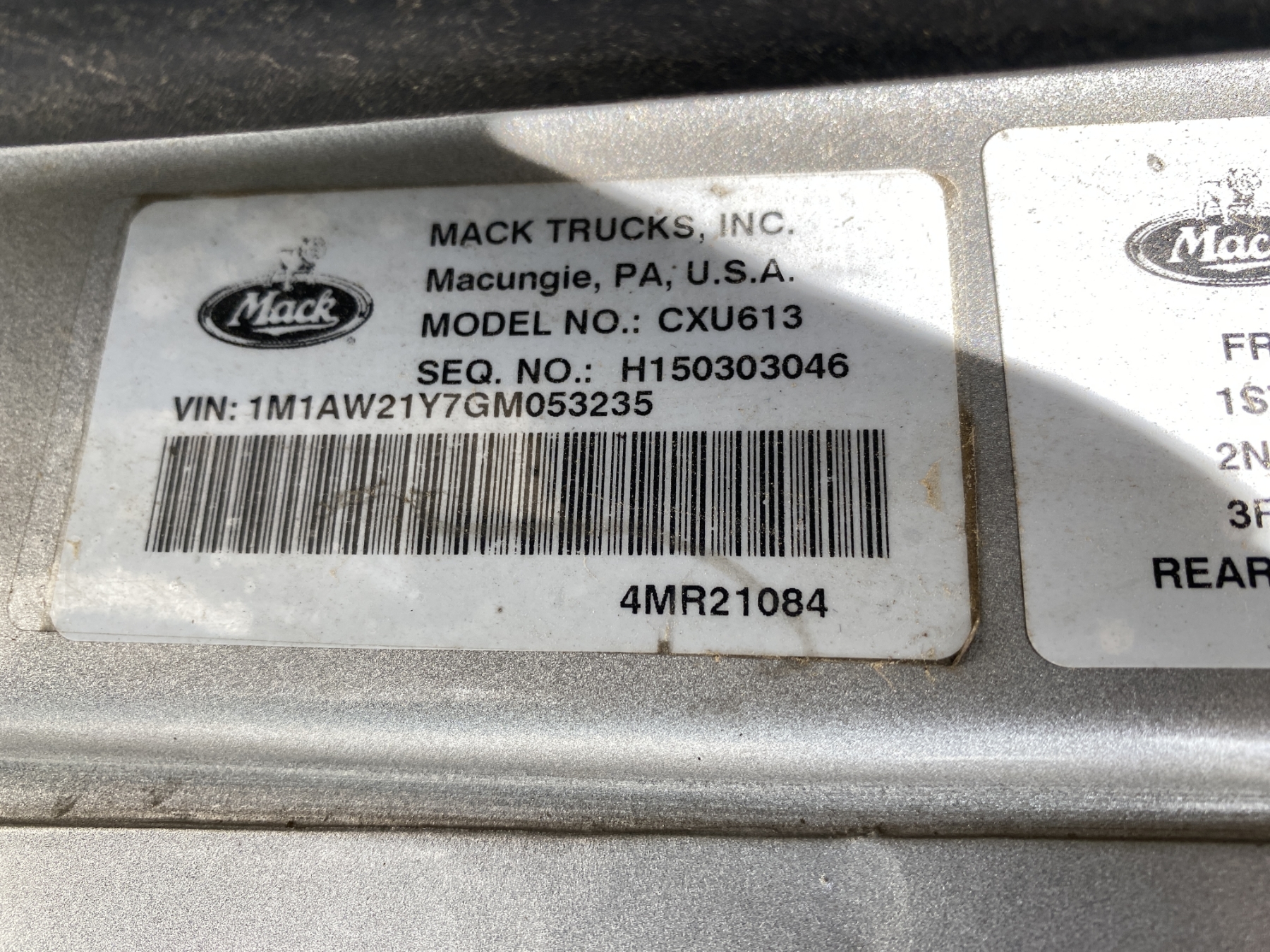 Vehicle ID Number: 1M1AW21Y7GM053235
