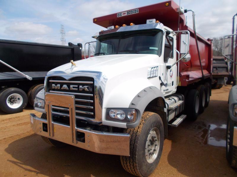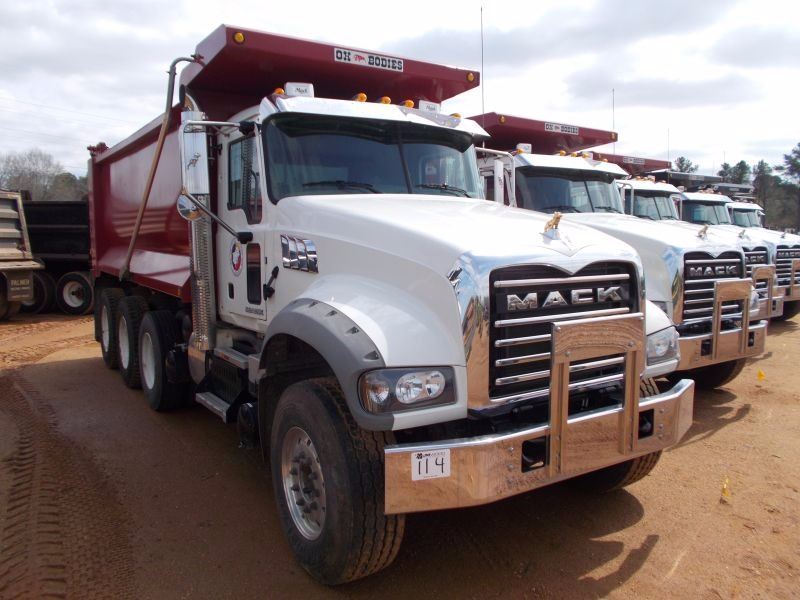 2016 MACK GU713 DUMP, VIN/SN:1M2AX07CXGM060365 - TRI-AXLE, 455 HP MP8 MACK ENG, 10 SPD MACK TRANS, 44K REARS, 18K FRONT, ENGINE BRAKE, P/S, A/C, 16' HARD OX DUMP BODY, 21 C/Y CAP, HIGH LIFT TAILGATE, ELEC TARP, 385/65R22.5 FRONT TIRES, 11R24.5 REAR TIRES, ALUM DISC FRONT WHEELS, STEEL DISC REAR WHEELS, ODOMETER READING 22,921 MILES (COUNTY OWNED)