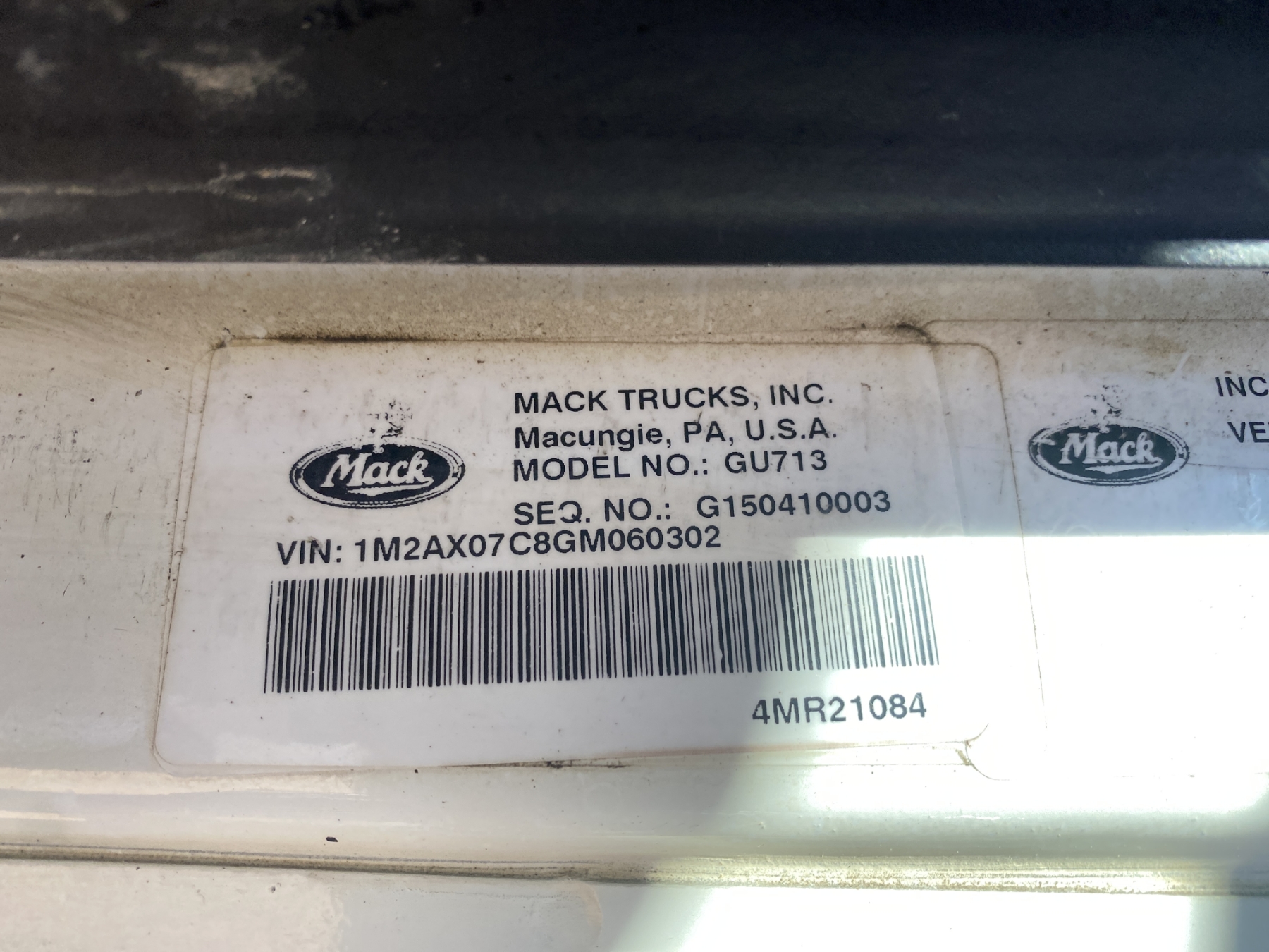 2016 MACK GU713 Dump Truck