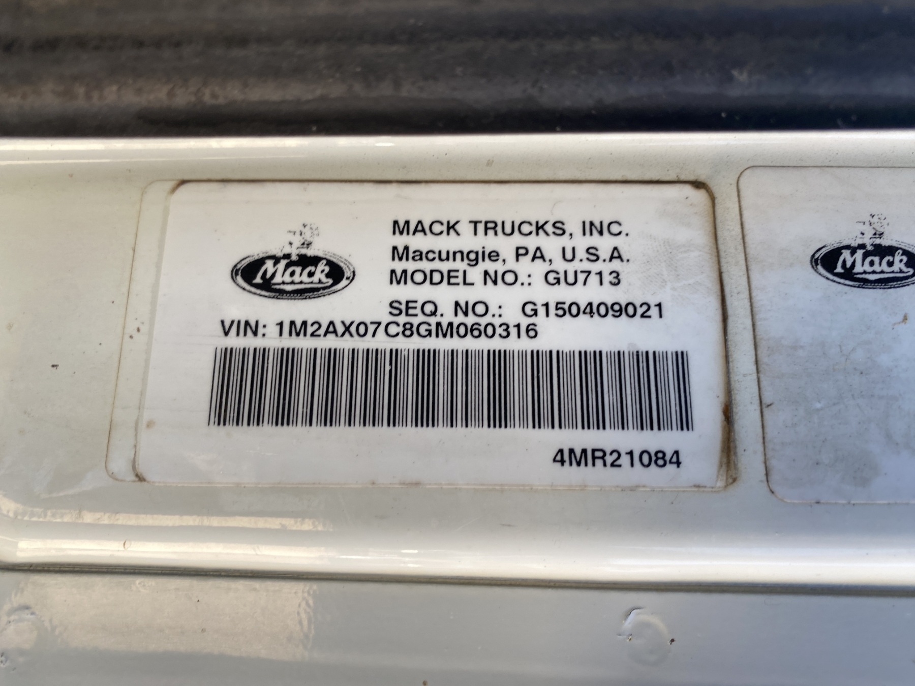2016 MACK GU713 Dump Truck