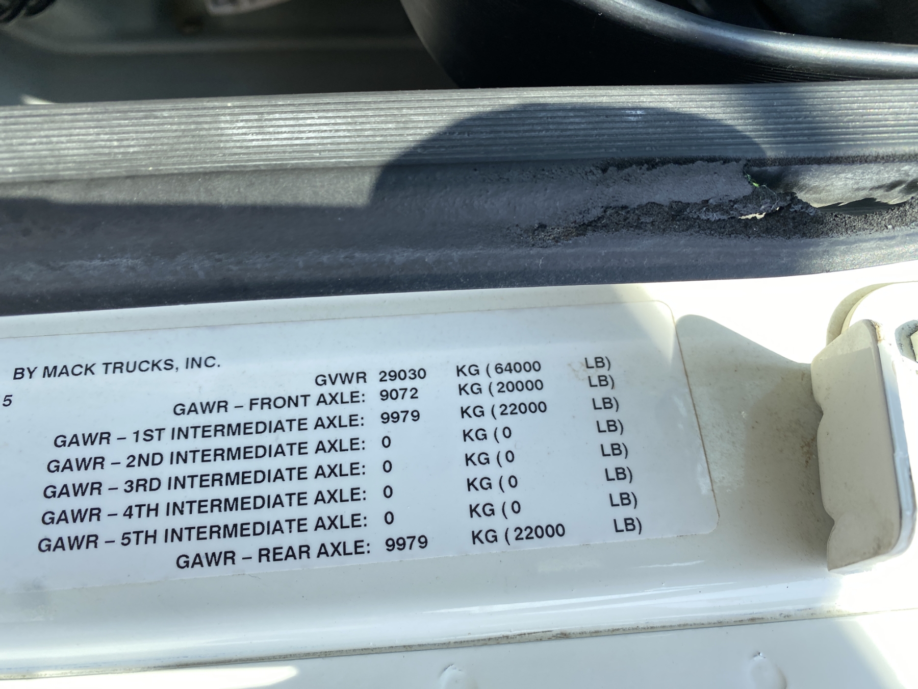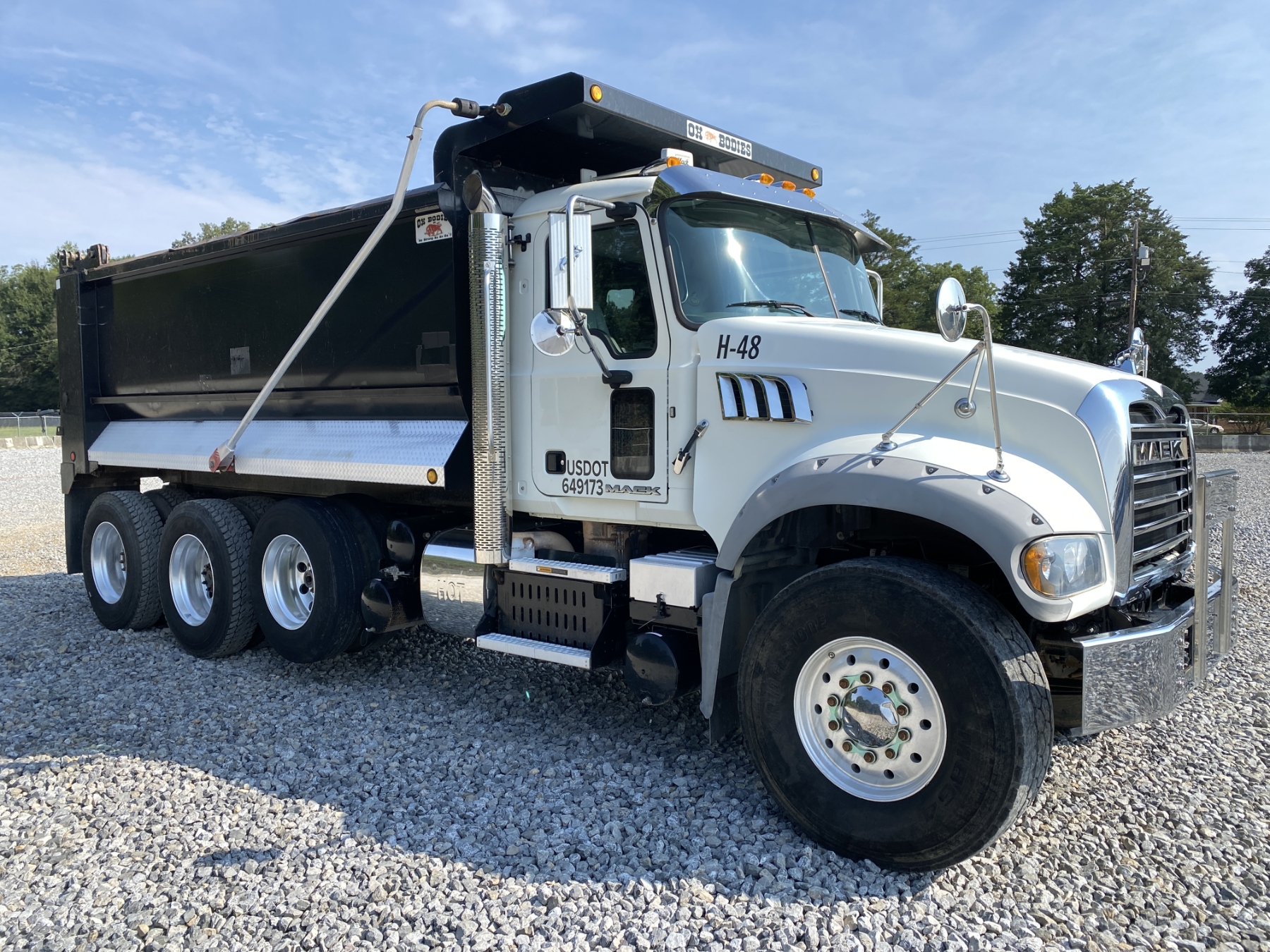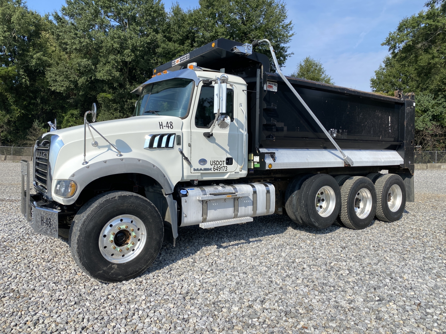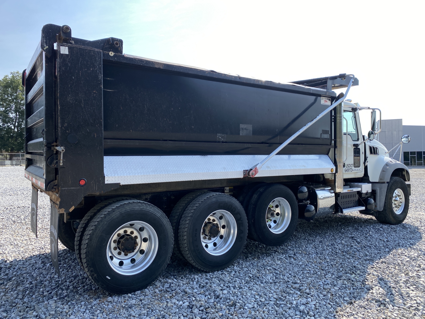 Tri Axle, 455 HP Mack MP8 engine, 8LL trans, 44K rears, 20K front, 16' Hard Ox body, high-lift gate, 11R24.5 rear tires, 425/65R22.5 front tires, all alum