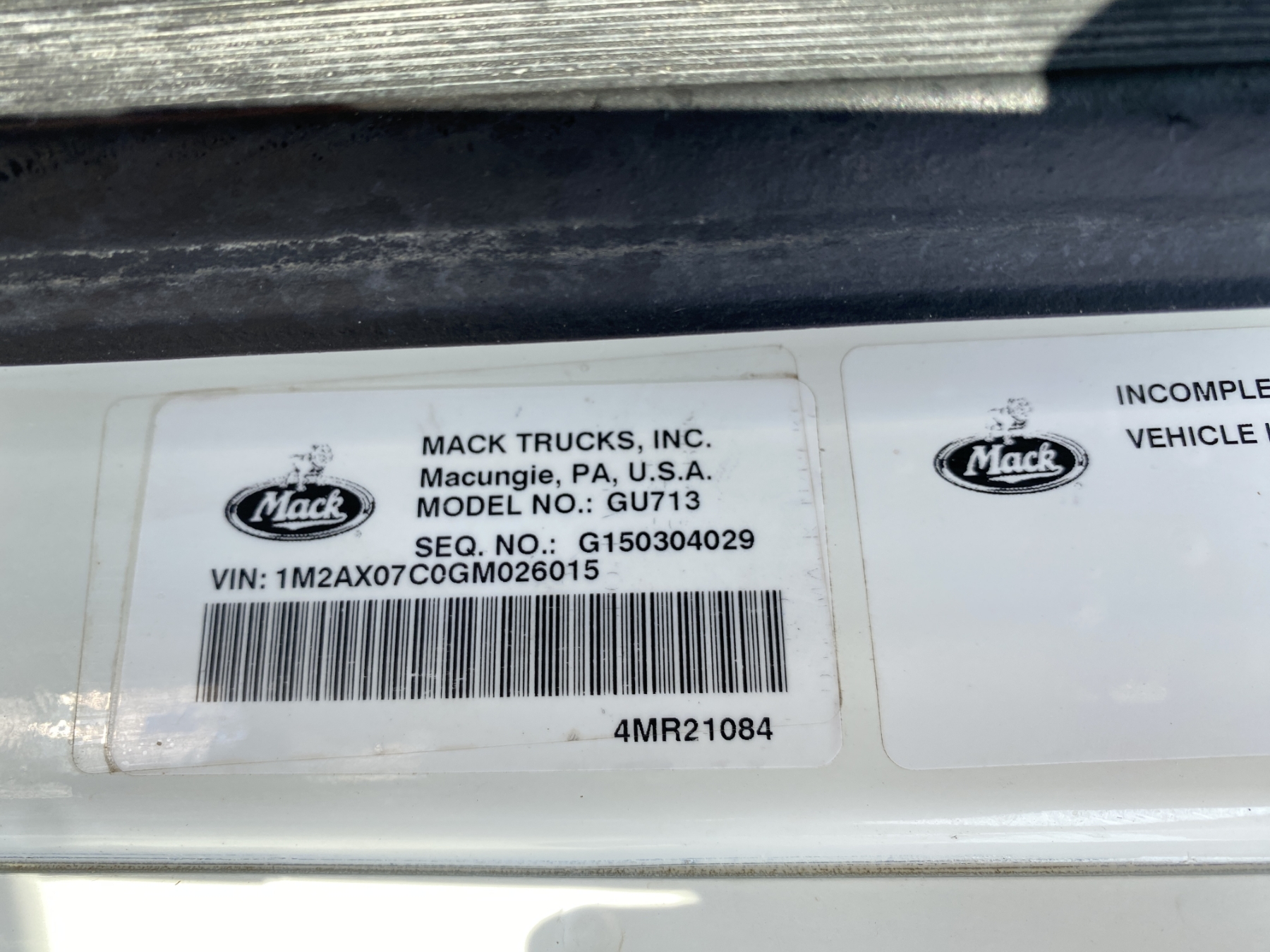 2016 MACK GU713 Dump Truck