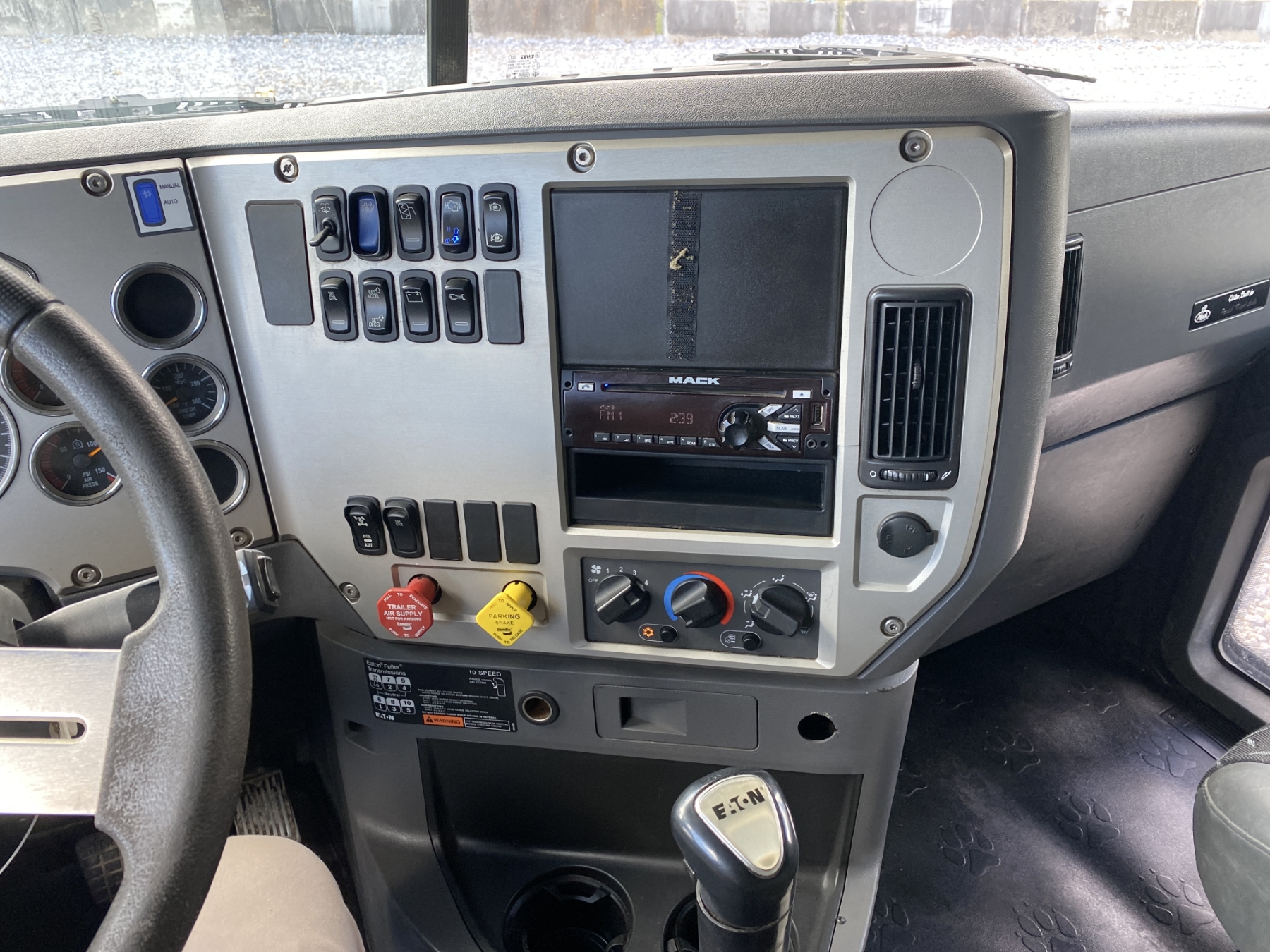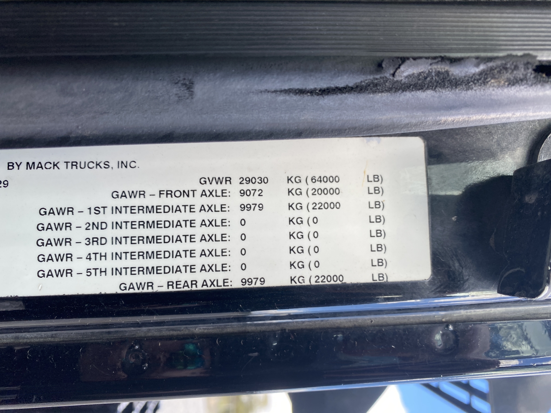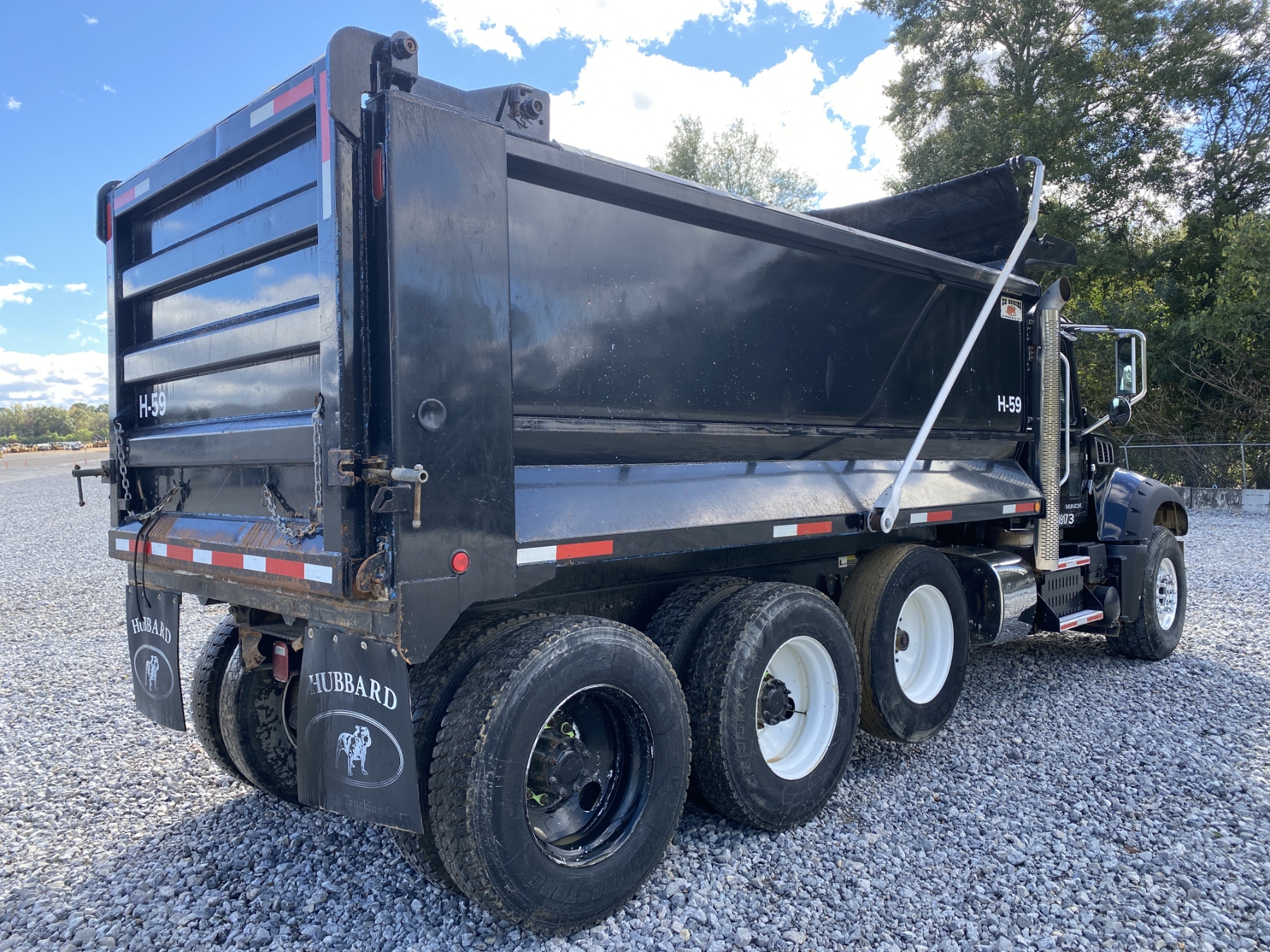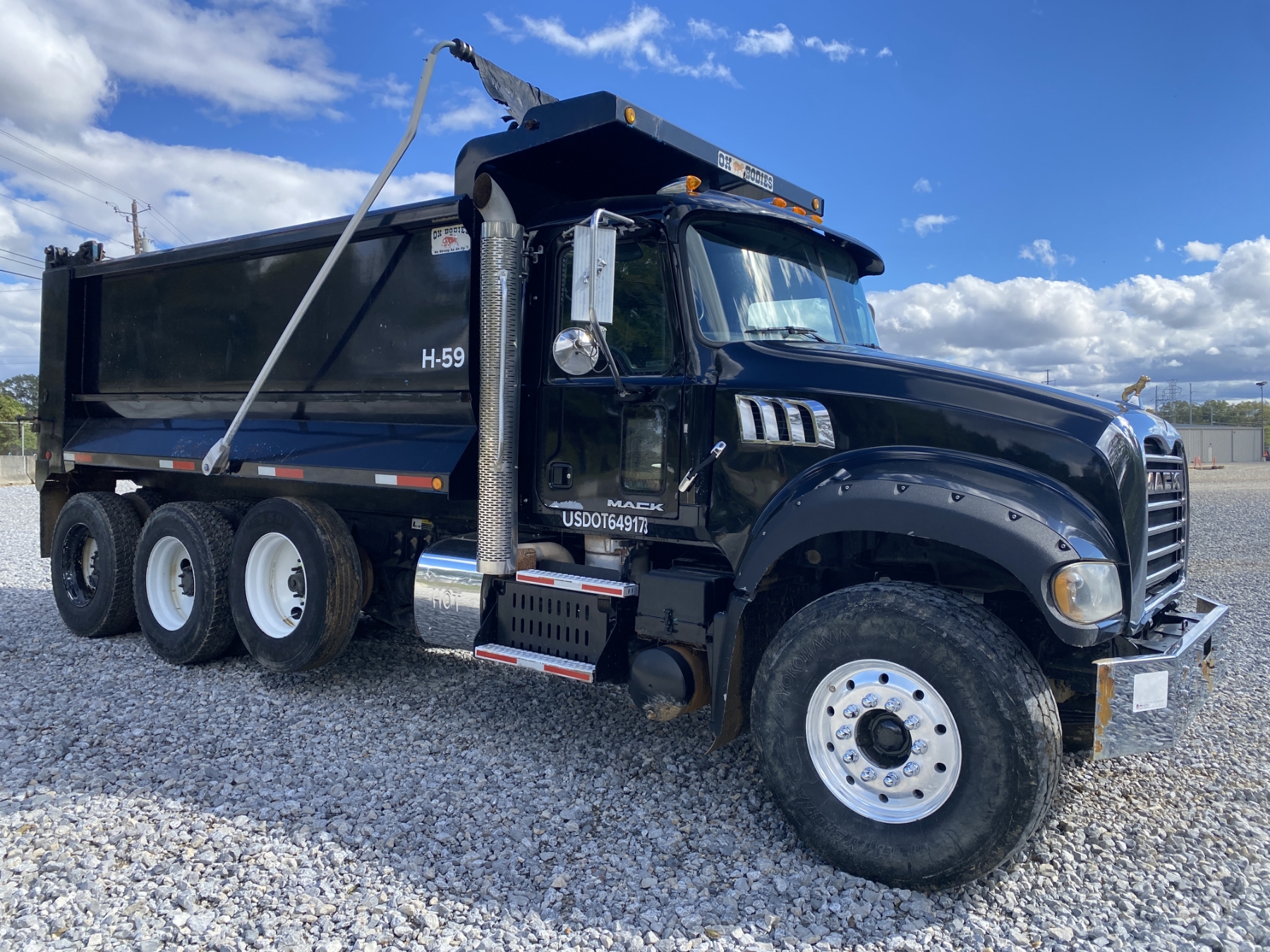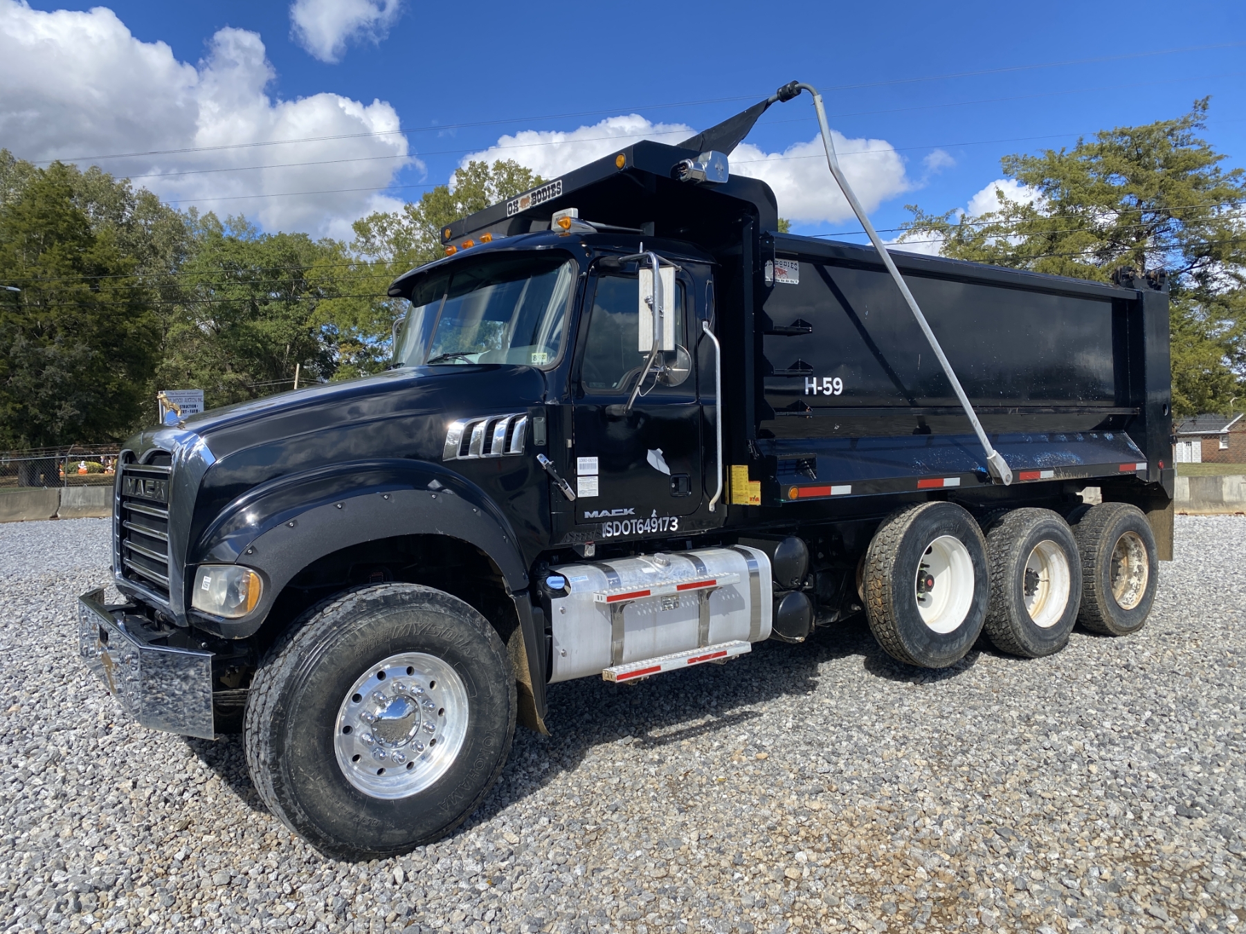 Tri Axle, 405 HP Mack MP7 engine, 10 speed trans, 44K rears, 20K front, 16' Hard Ox body, high-lift gate, 11R24.5 rear tires, 425/65R22.5 front tires
