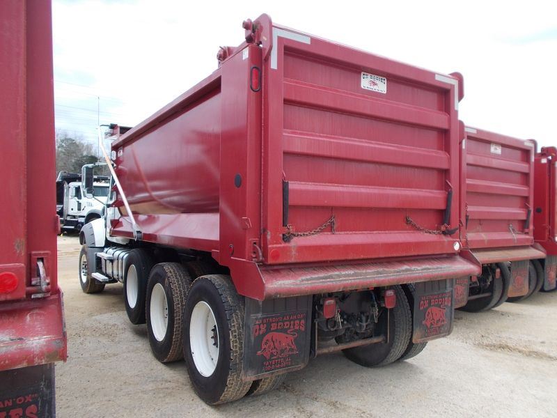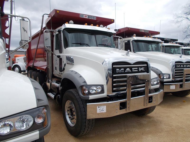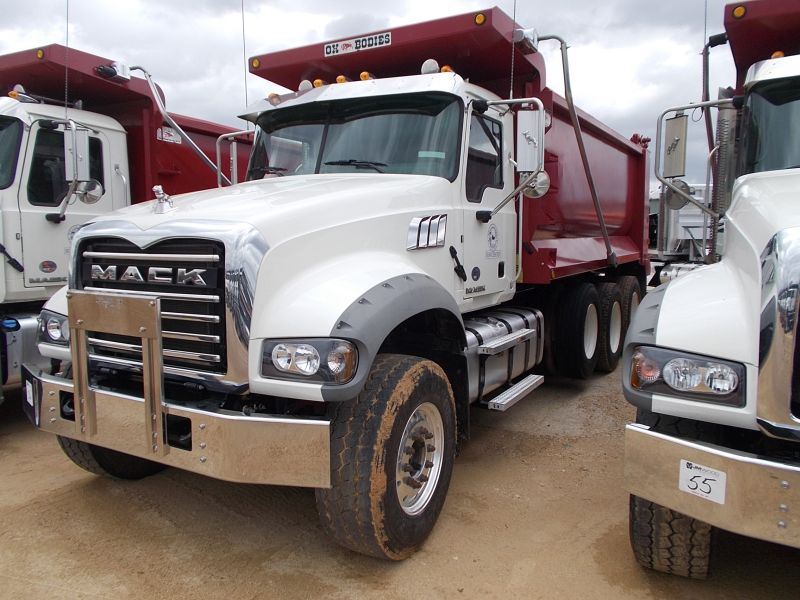 2016 MACK GU713 TRI-AXLE DUMP, S/N 1M2AX09C9GM025300, 425 HP MACK MP8 ENG, ALLISON 4500 RDS AUTO TRANS, 44K REARS, 18K FRONT, ENGINE BRAKE, 16' HARD OX BODY, ELEC TARP, AIR TAILGATE, 11R24/5 REAR TIRES ON STEEL DISC WHEELS, 385/65R22.5 FRONT TIRES ON ALUM WHEELS, ODOMETER READING 28,580 MILES (COUNTY OWNED)