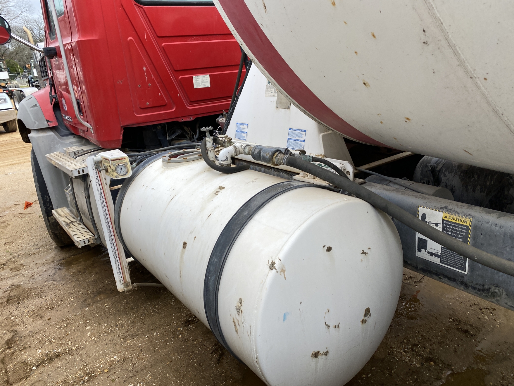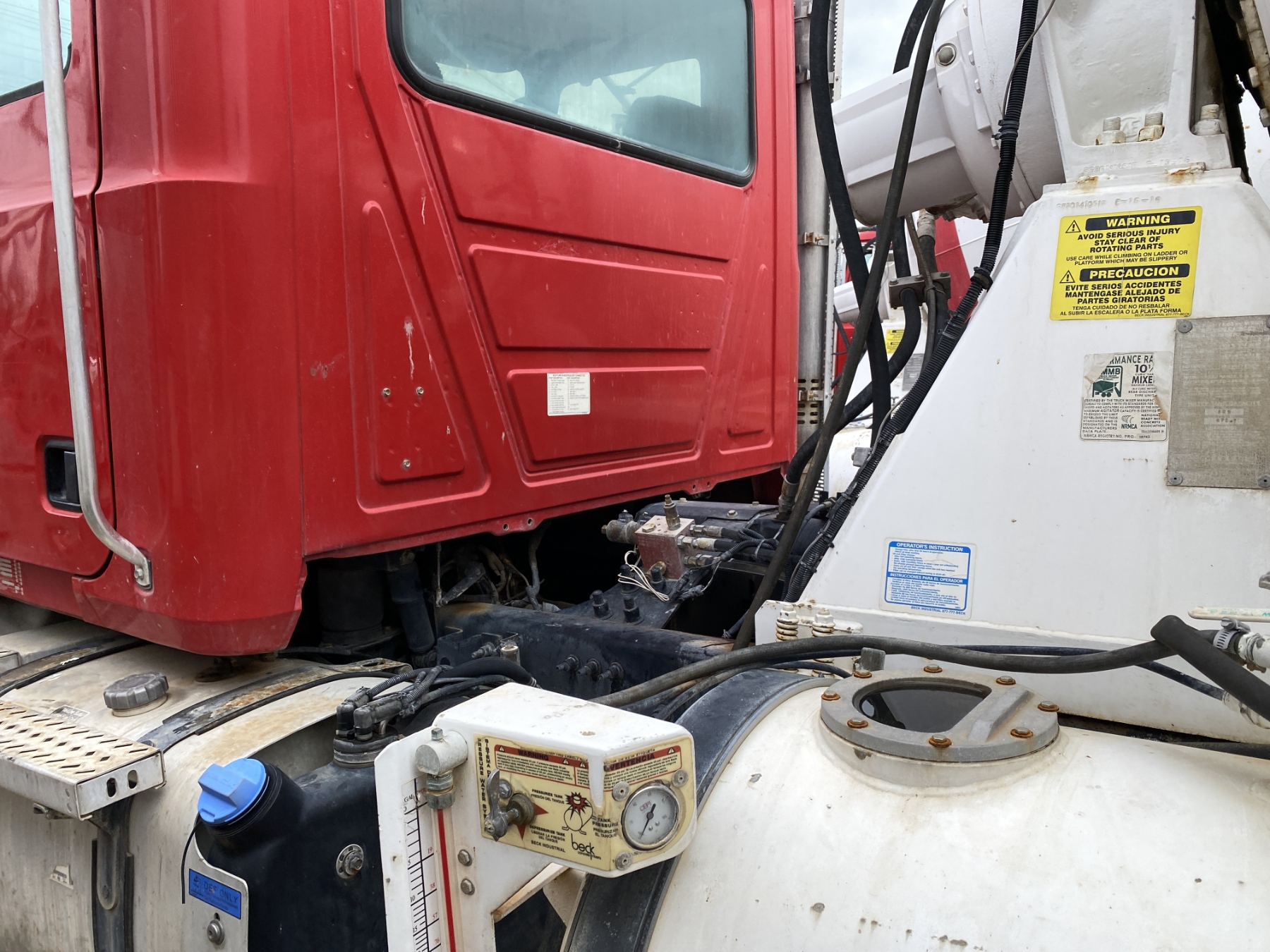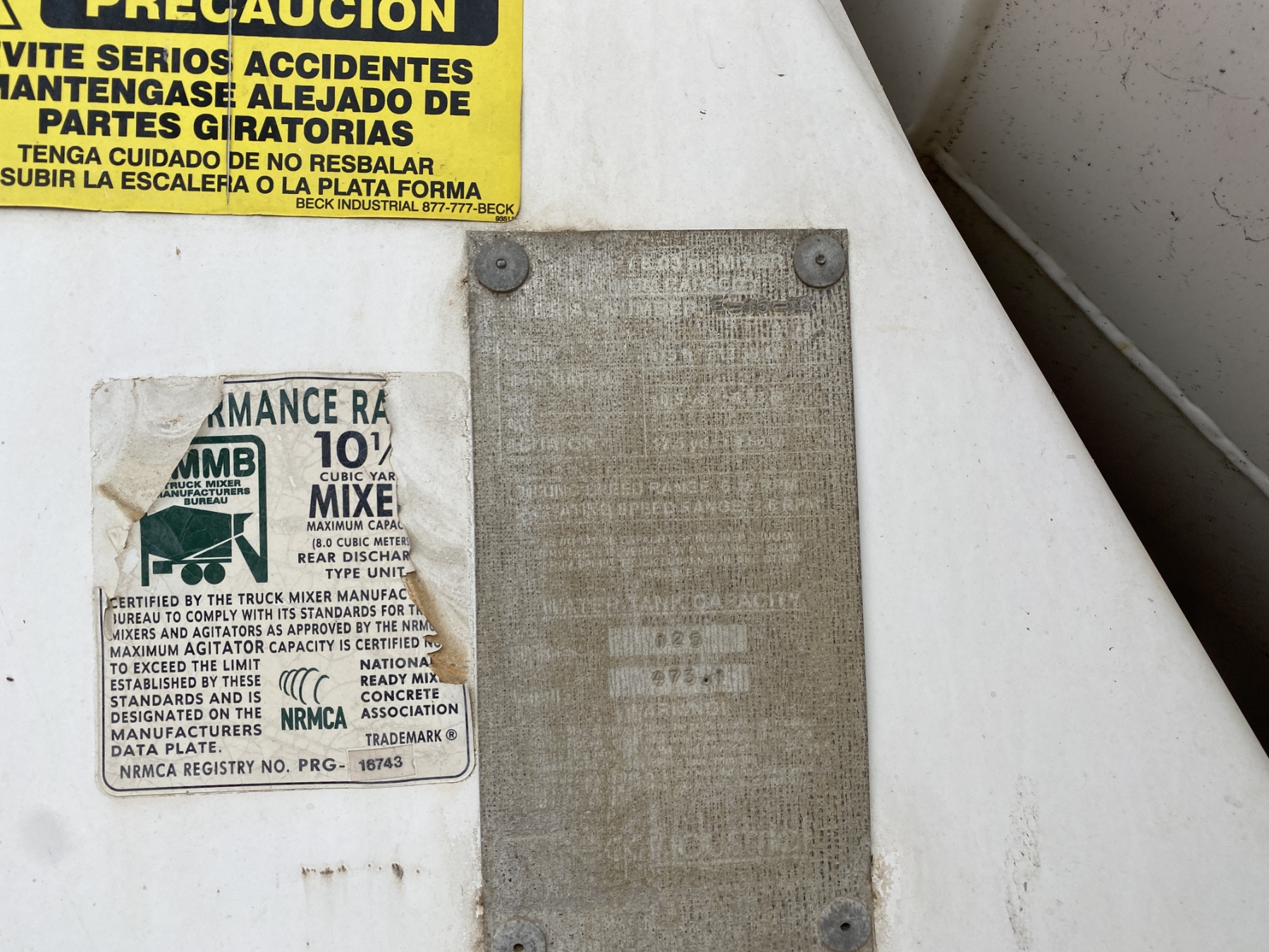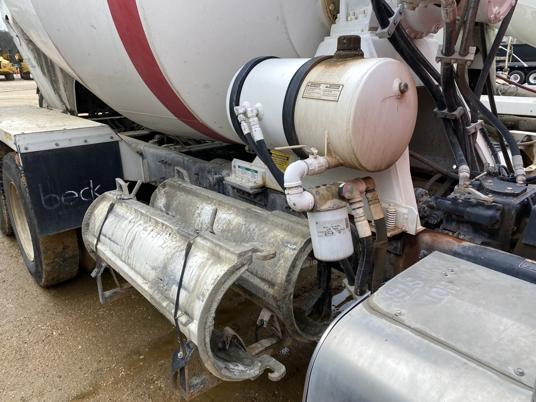 T/A, Mack MP7-395 engine, Eaton 8LL trans, 46K rears, 22,800 lb. front, 12.5 Yd. Beck mixer, 11R24.5 rear tires, 425/65R22.5 front tires