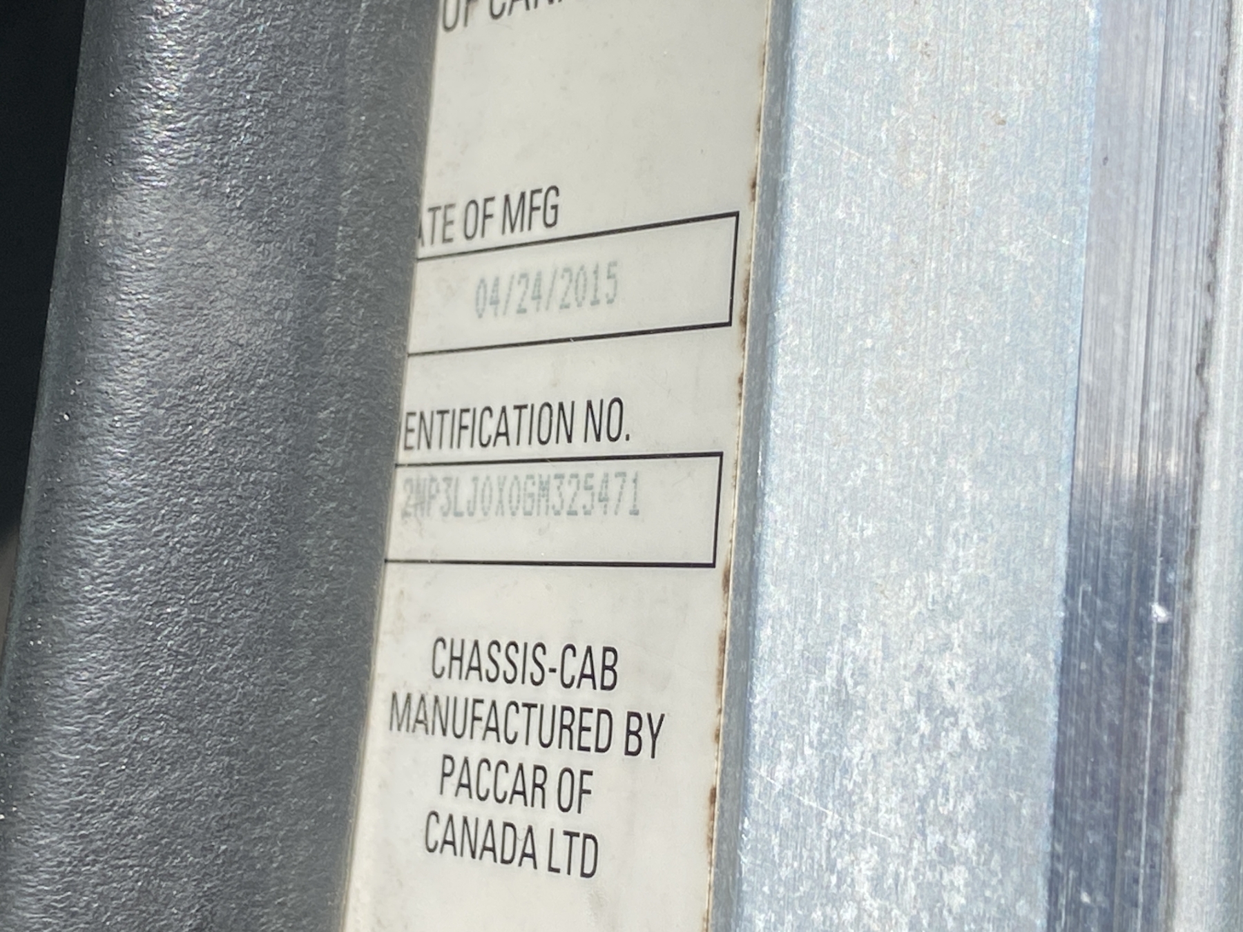 Vehicle ID Number: 2NP3LJ0X0GM325471