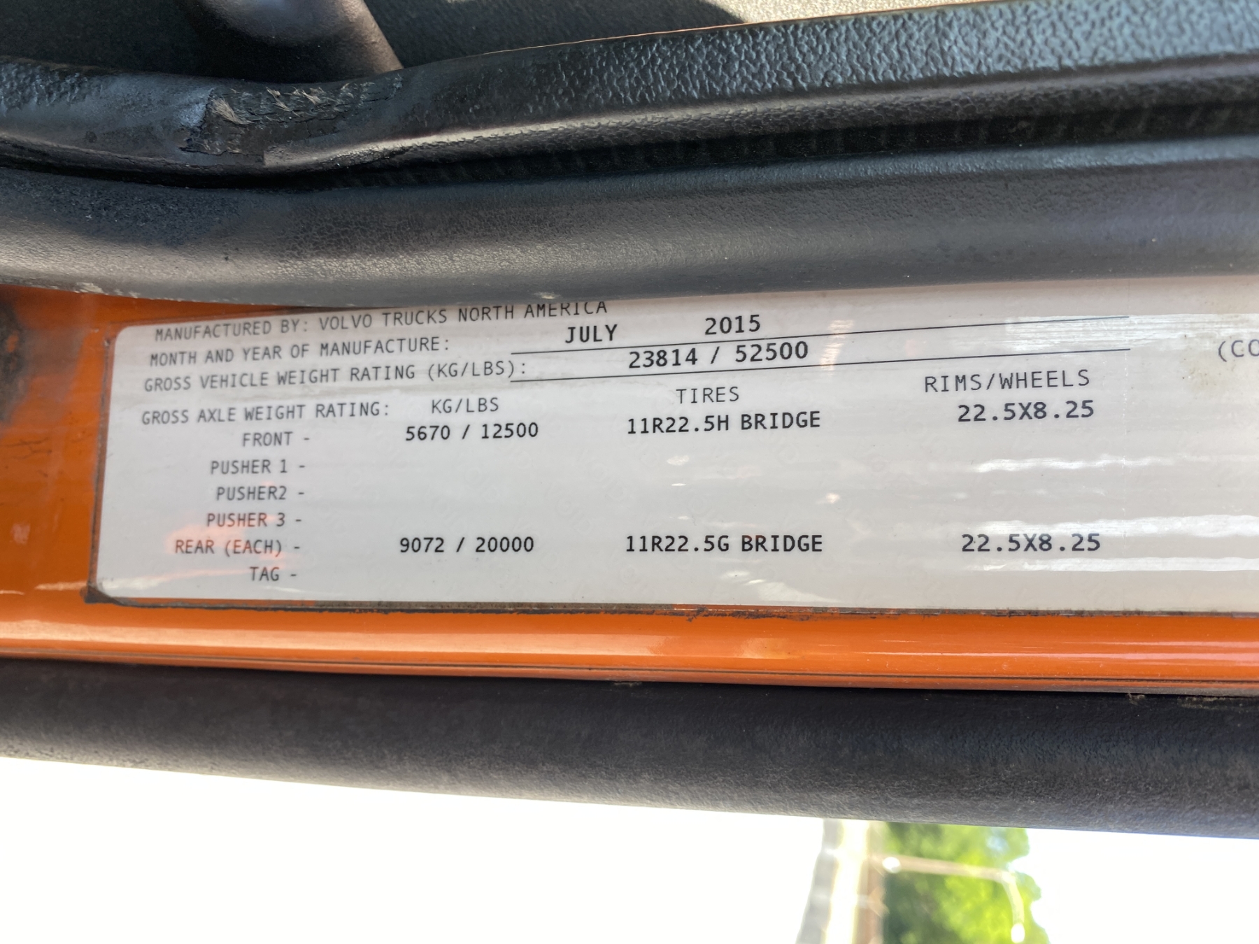 T/A, 455 HP Volvo D13 engine, A/T, 40K rears, air ride, 12,500 lb. front, 225" W/B, 11R22.5 tires, all alum