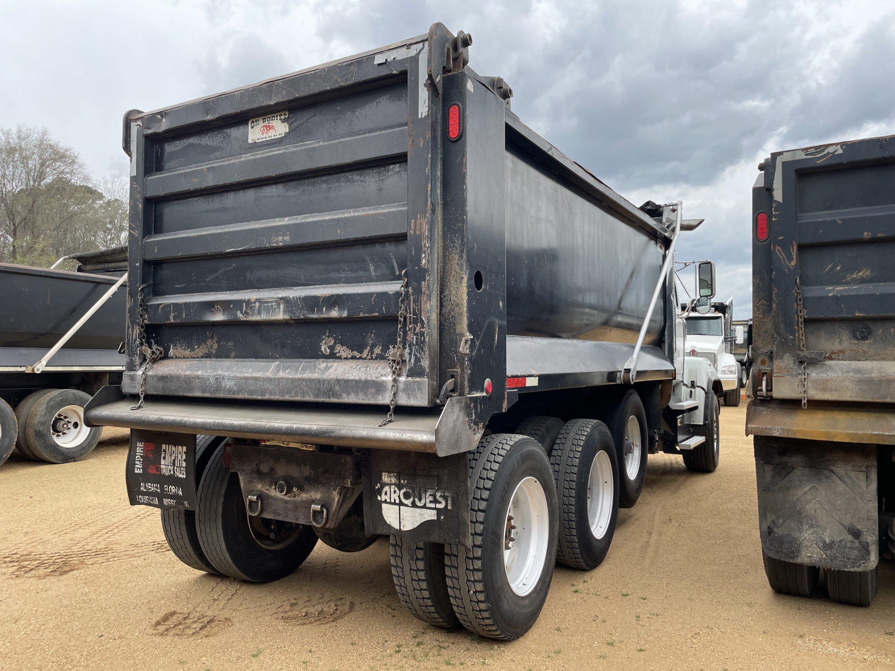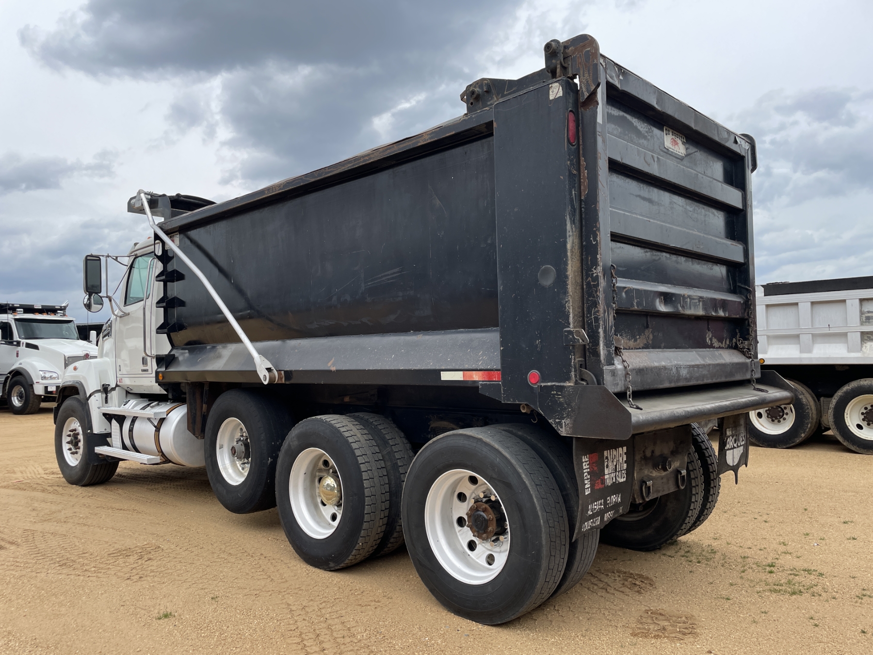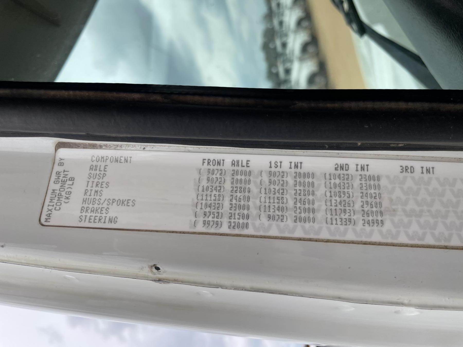 Tri Axle, Detroit engine, Allison A/T, 46K rears, 20K front, 16' Hard Ox body, 11R24.5 rear tires, 425/65R22.5 front tires