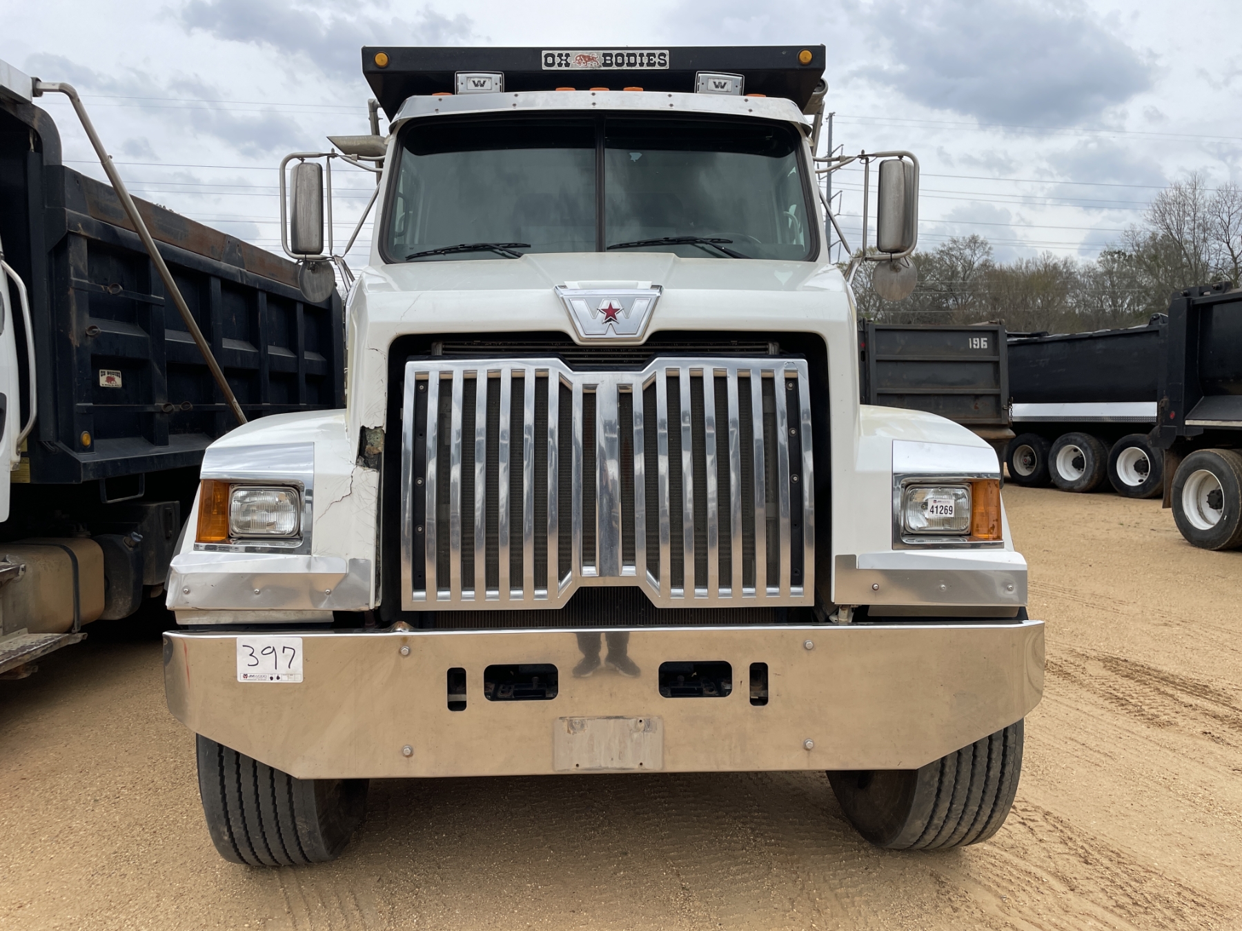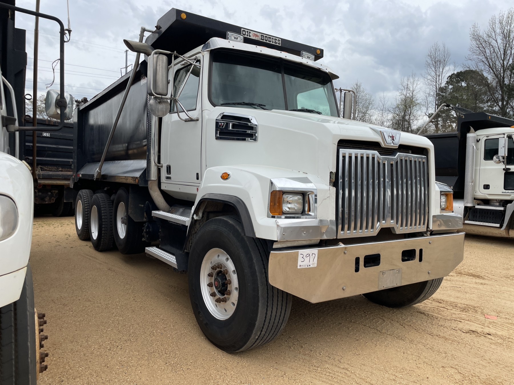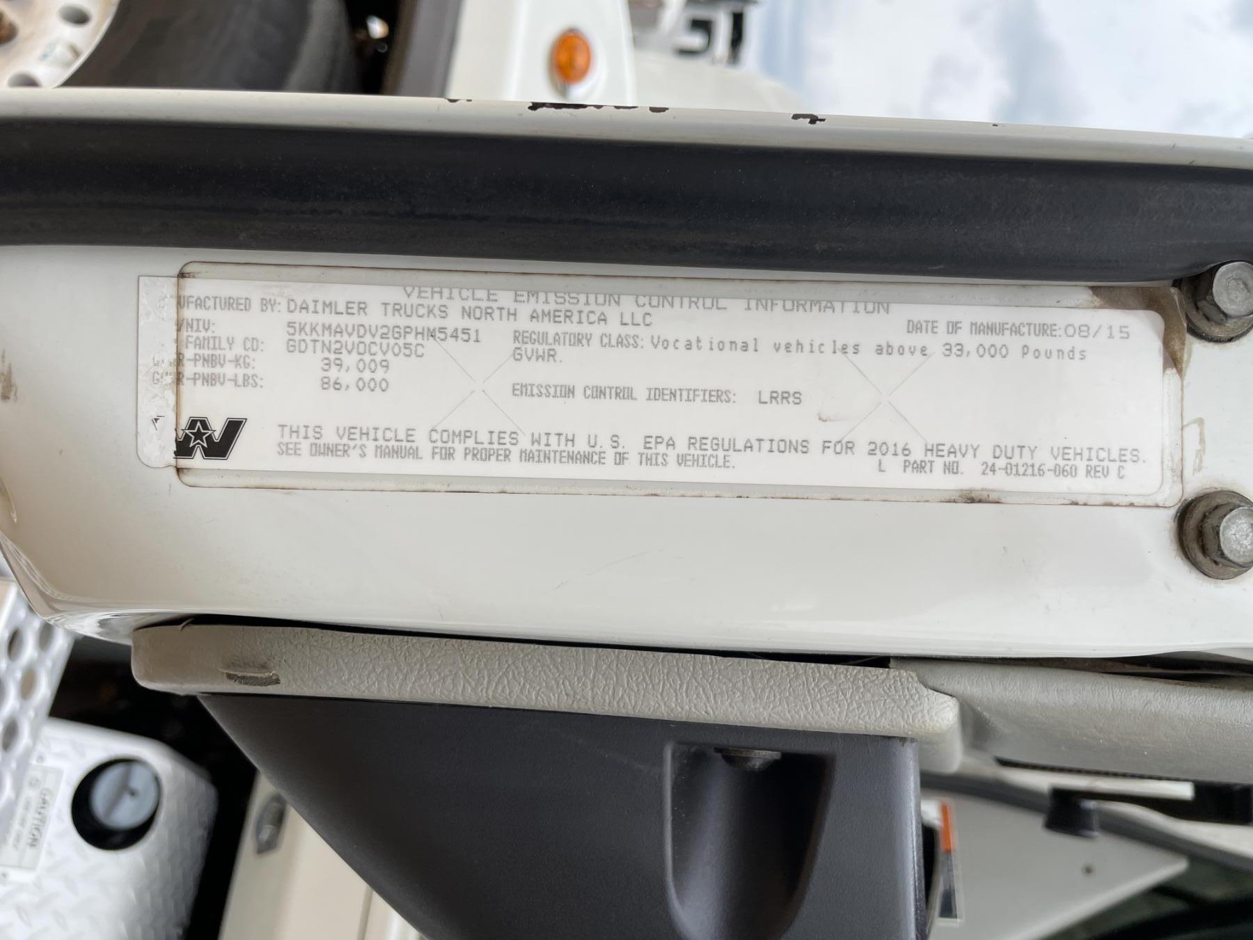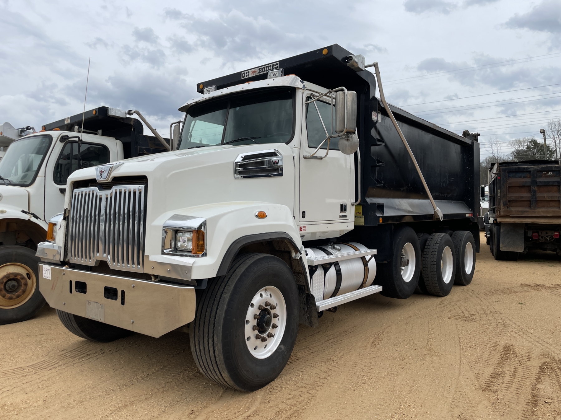 Tri Axle, Detroit engine, Allison A/T, 46K rears, 20K front, 16' Hard Ox body, 11R24.5 rear tires, 425/65R22.5 front tires