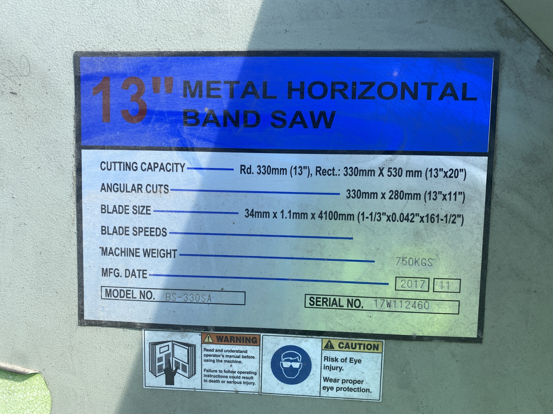 2017 BAILEIGH BS-330SA 13" HORIZONTAL BAND SAW