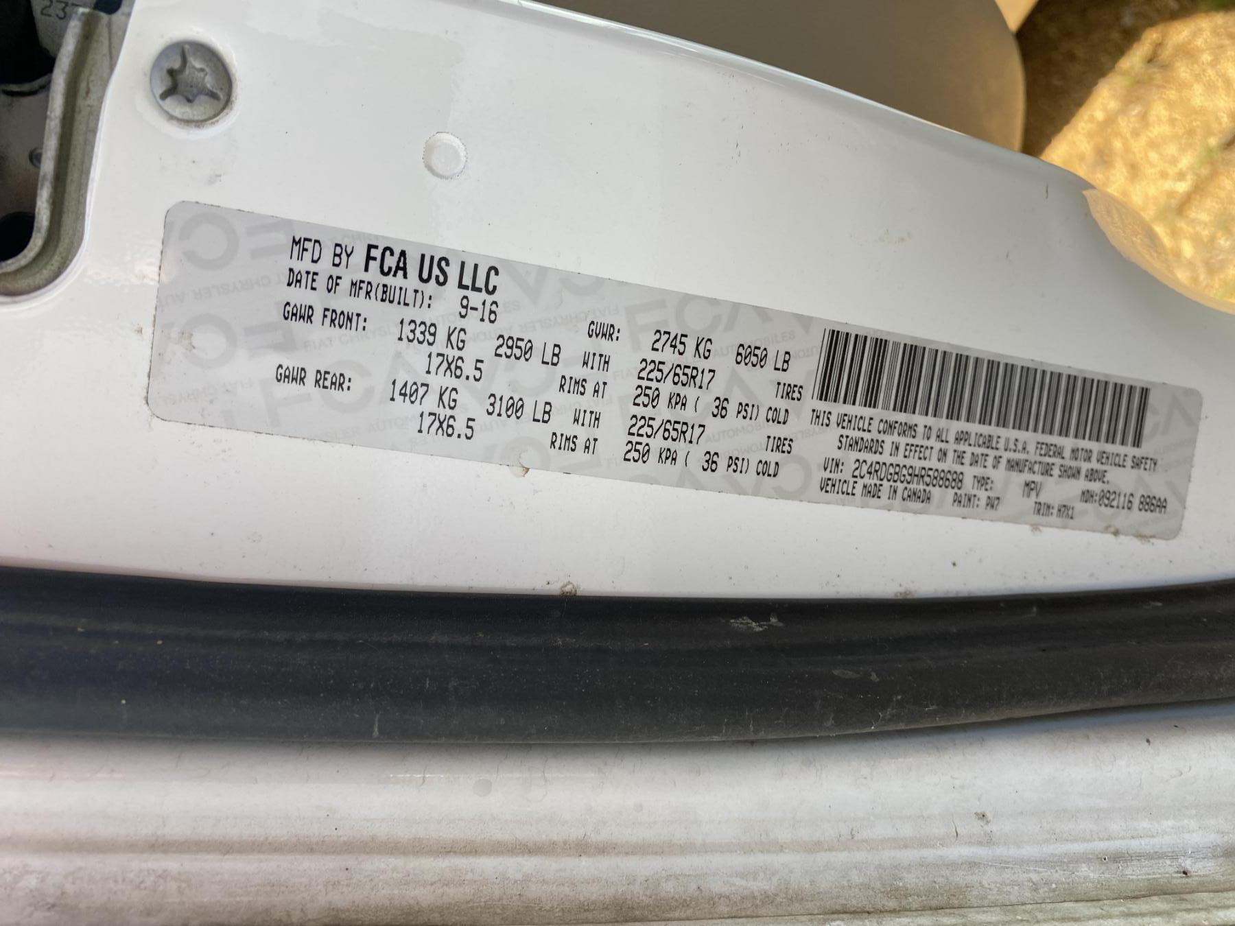 Vehicle ID Number: 2C4RDGBG9HR588688