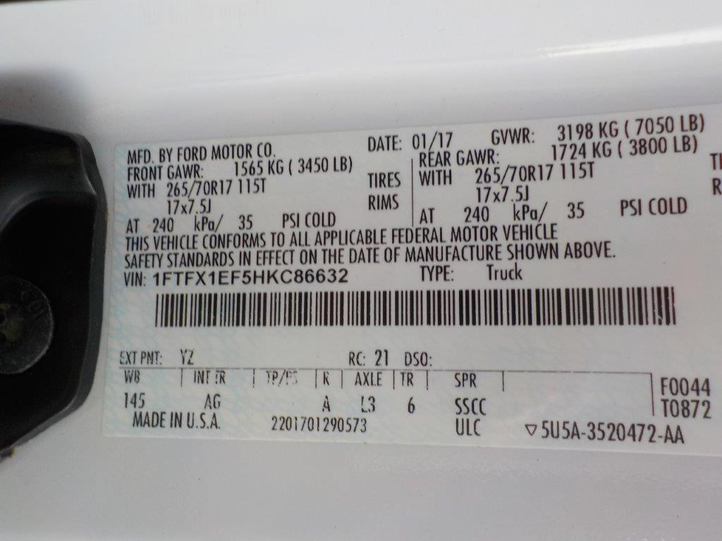 Vehicle ID Number: 1FTFX1EF5HKC86632