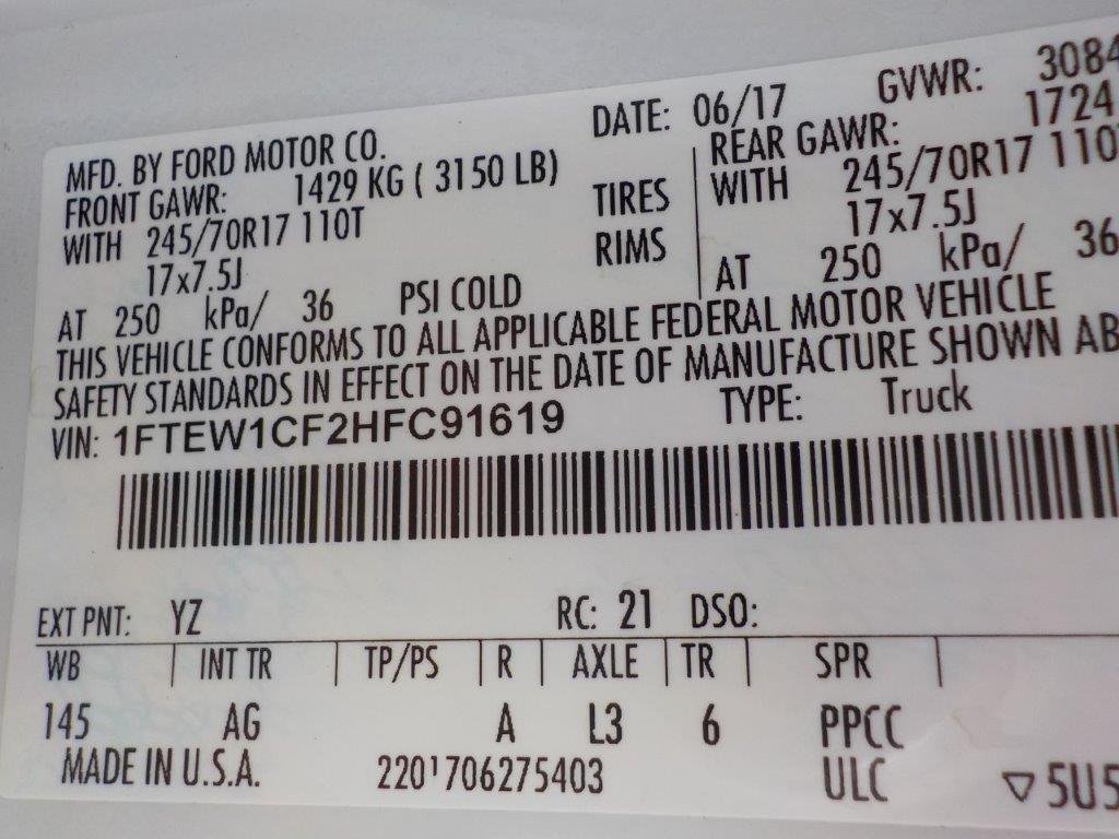 Vehicle ID Number: 1FTEW1CF2HFC91619