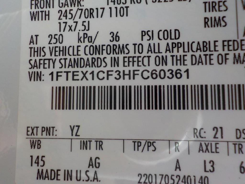 Vehicle ID Number: 1FTEX1CF3HFC60361