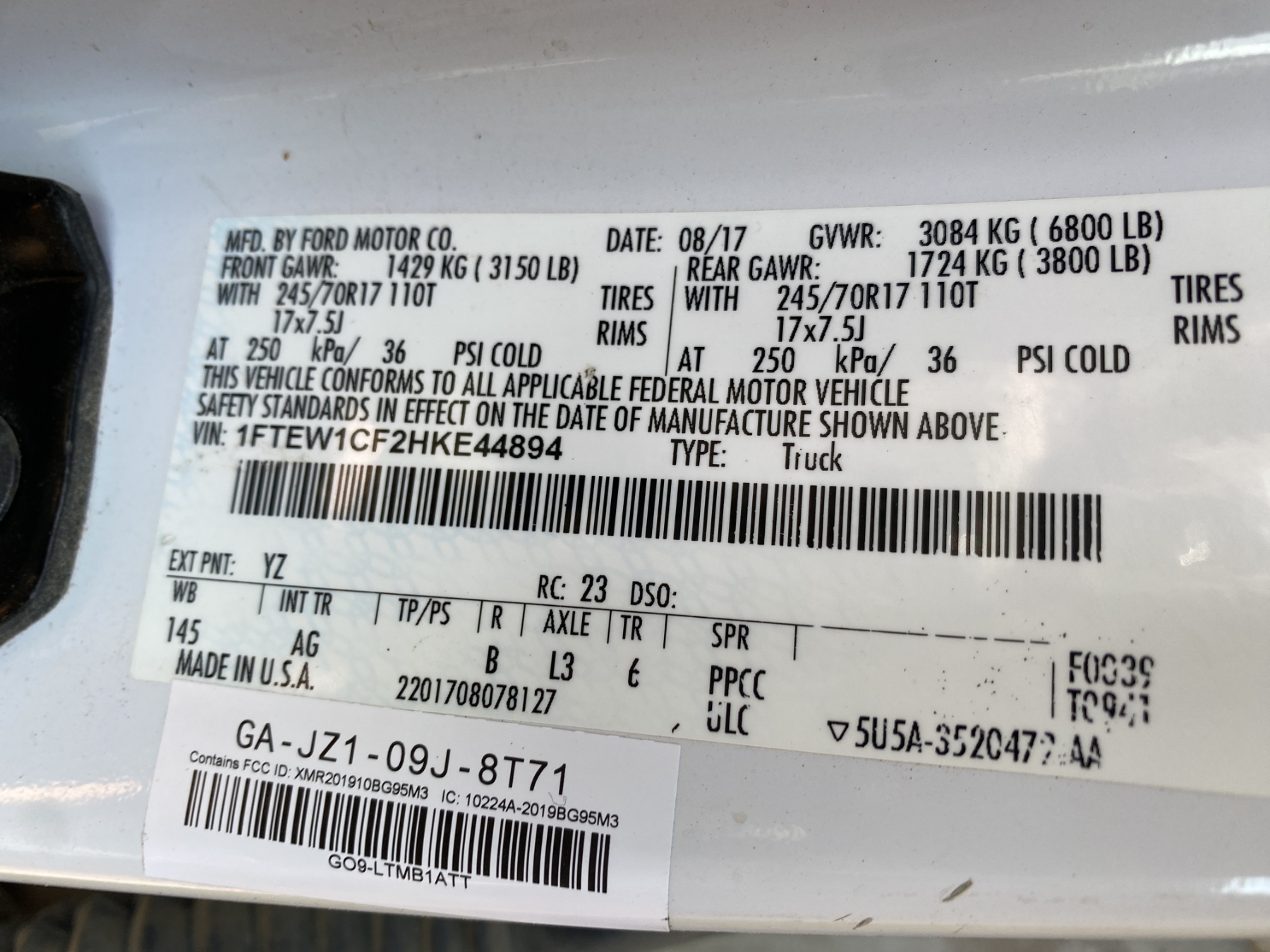 Vehicle ID Number: 1FTEW1CF2HKE44894