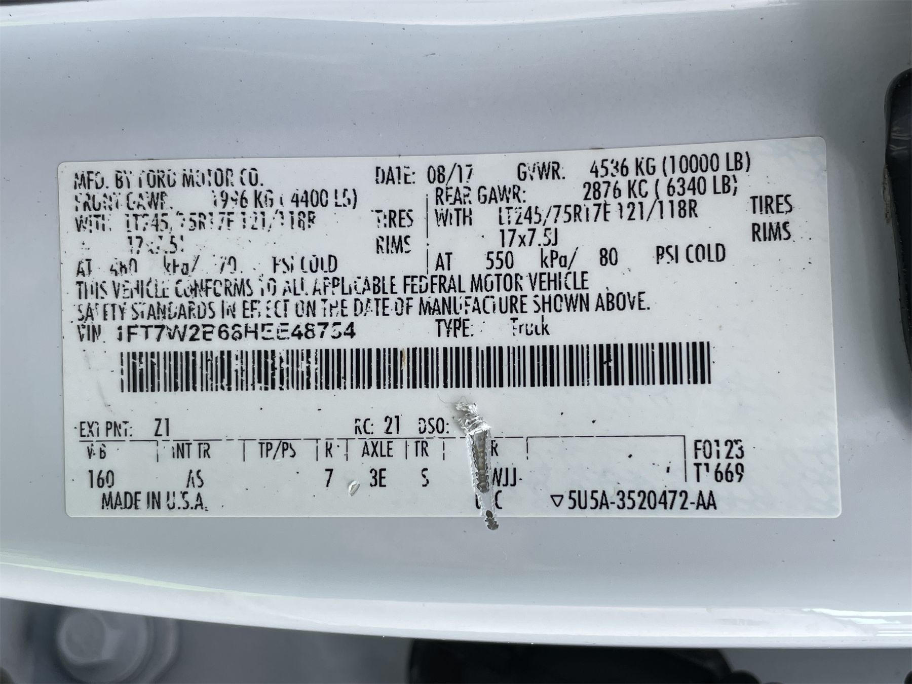 Vehicle ID Number: 1FT7W2E6SHEE48754