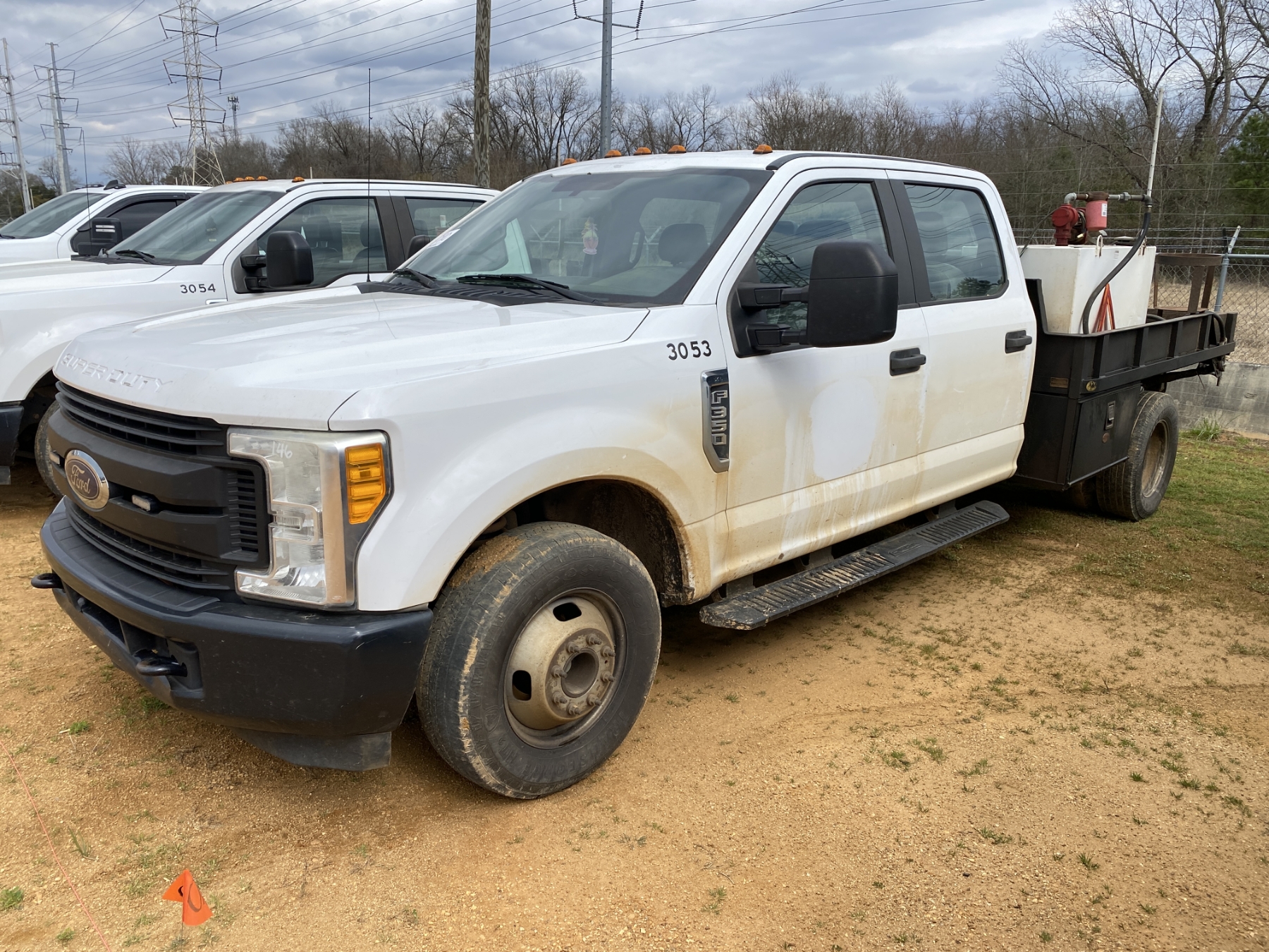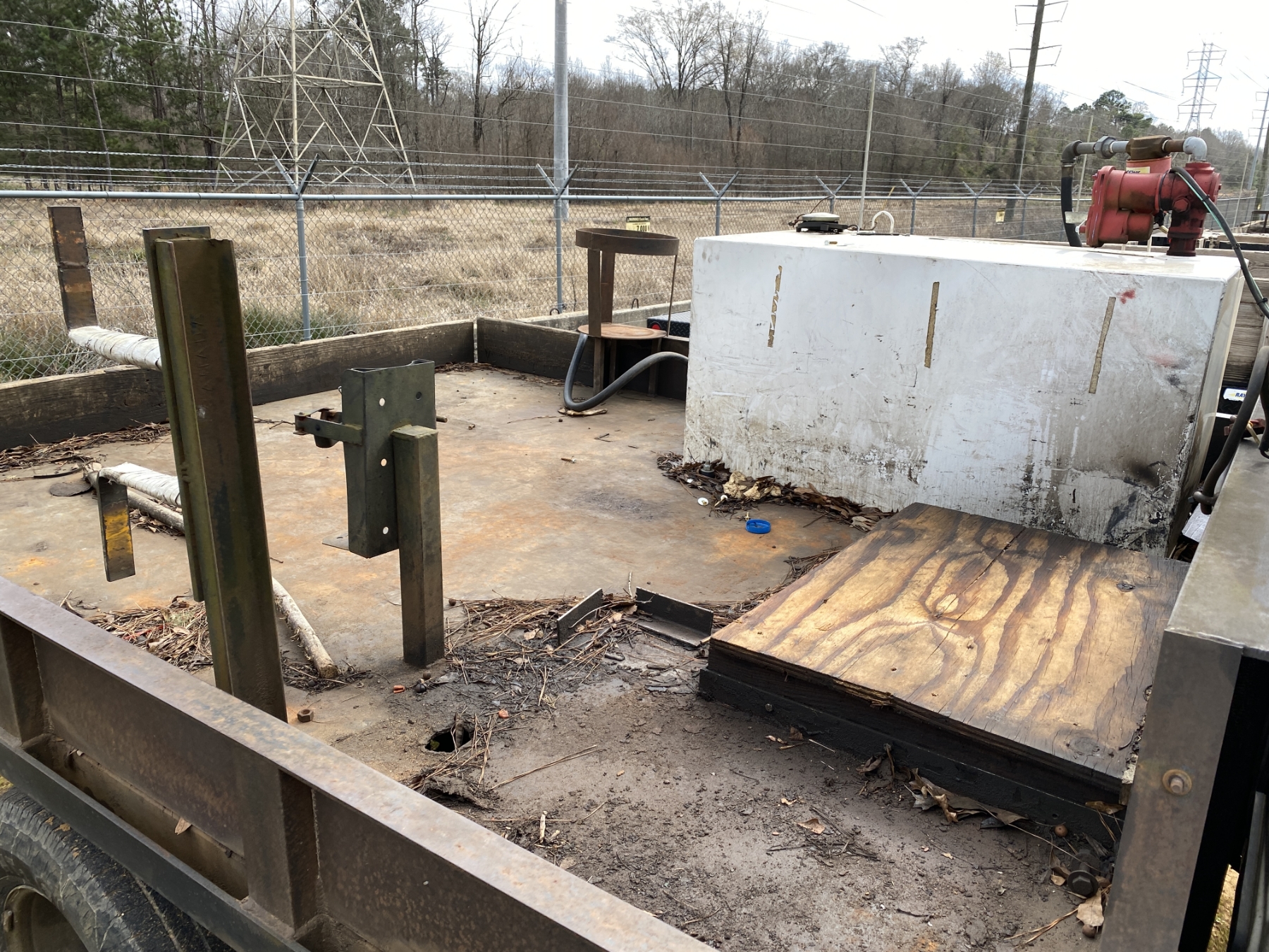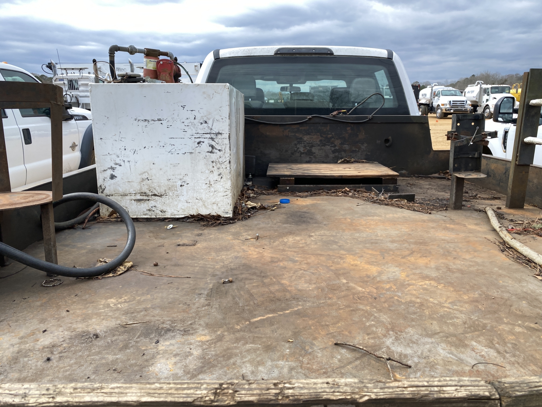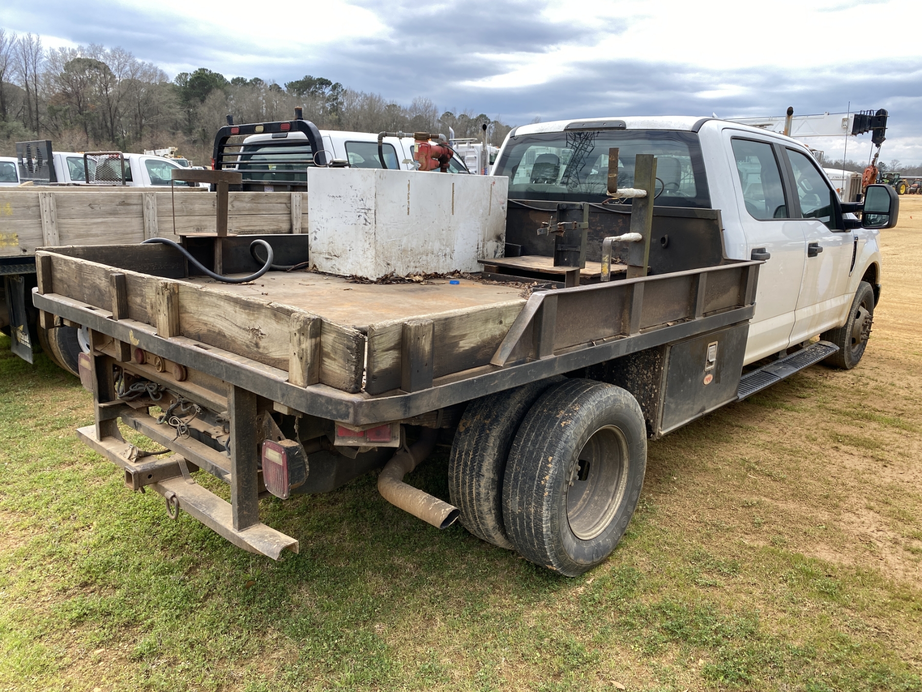 dually, crew cab, gas, A/T, 9' Alabama Autocarriage flatbed, fuel tank