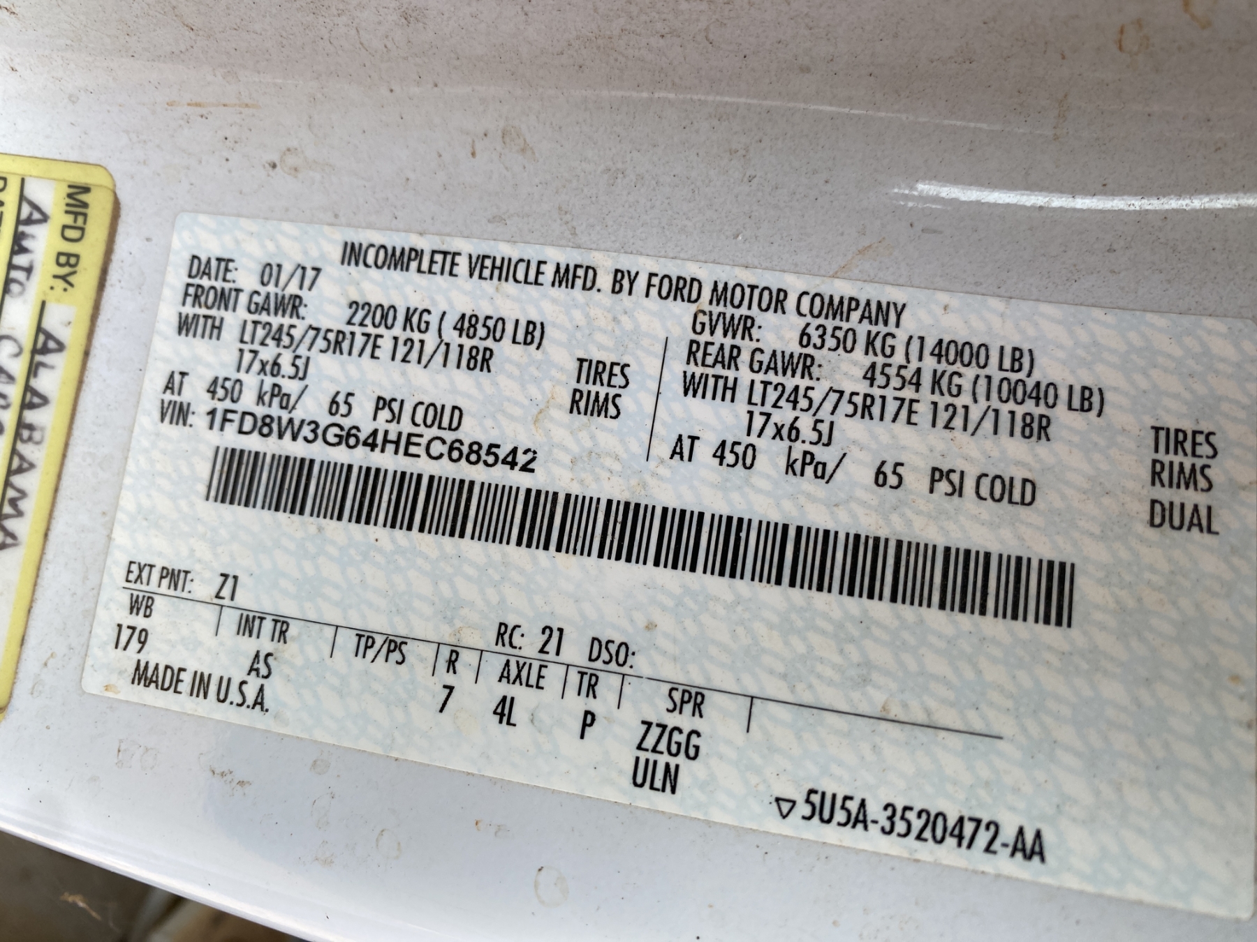 Vehicle ID Number: 1FD8W3G64HEC68542