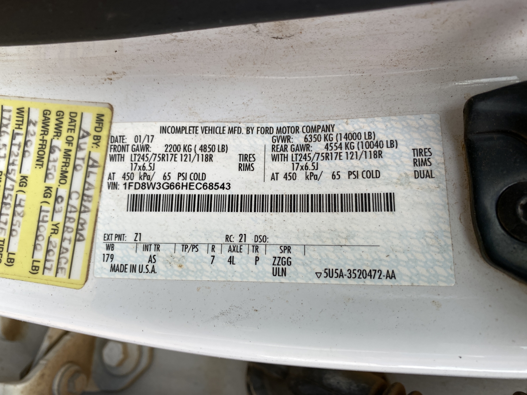 Vehicle ID Number: 1FD8W3G66HEC68543