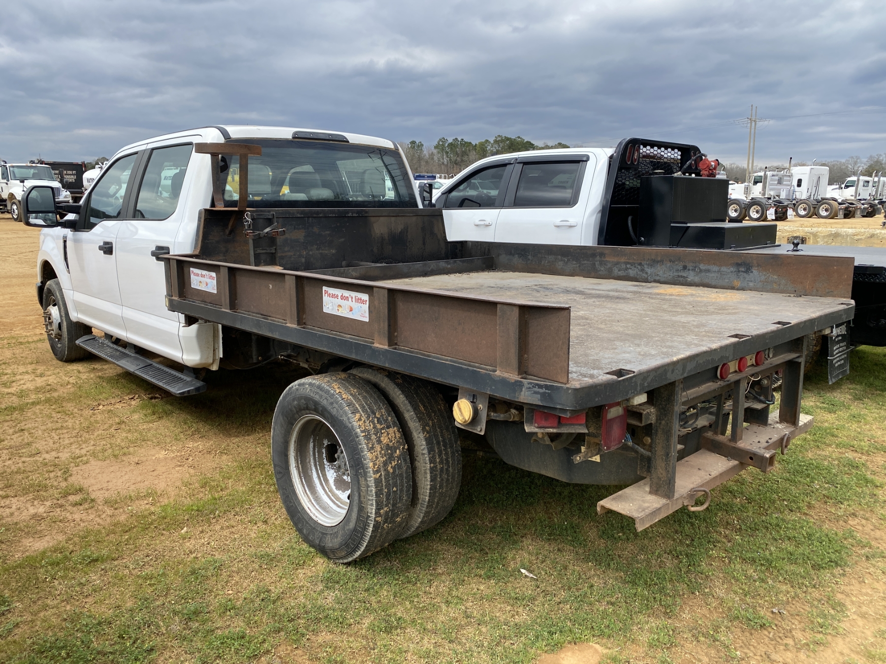 dually, crew cab, gas, A/T, 9' Alabama Autocarriage flatbed