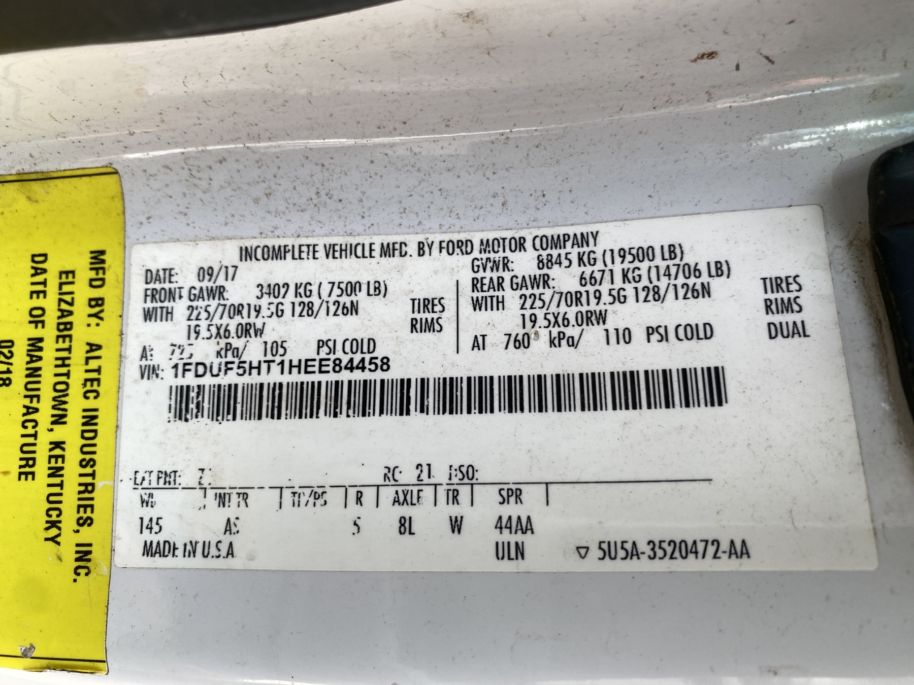 Vehicle ID Number: 1FDUF5HT1HEE84458