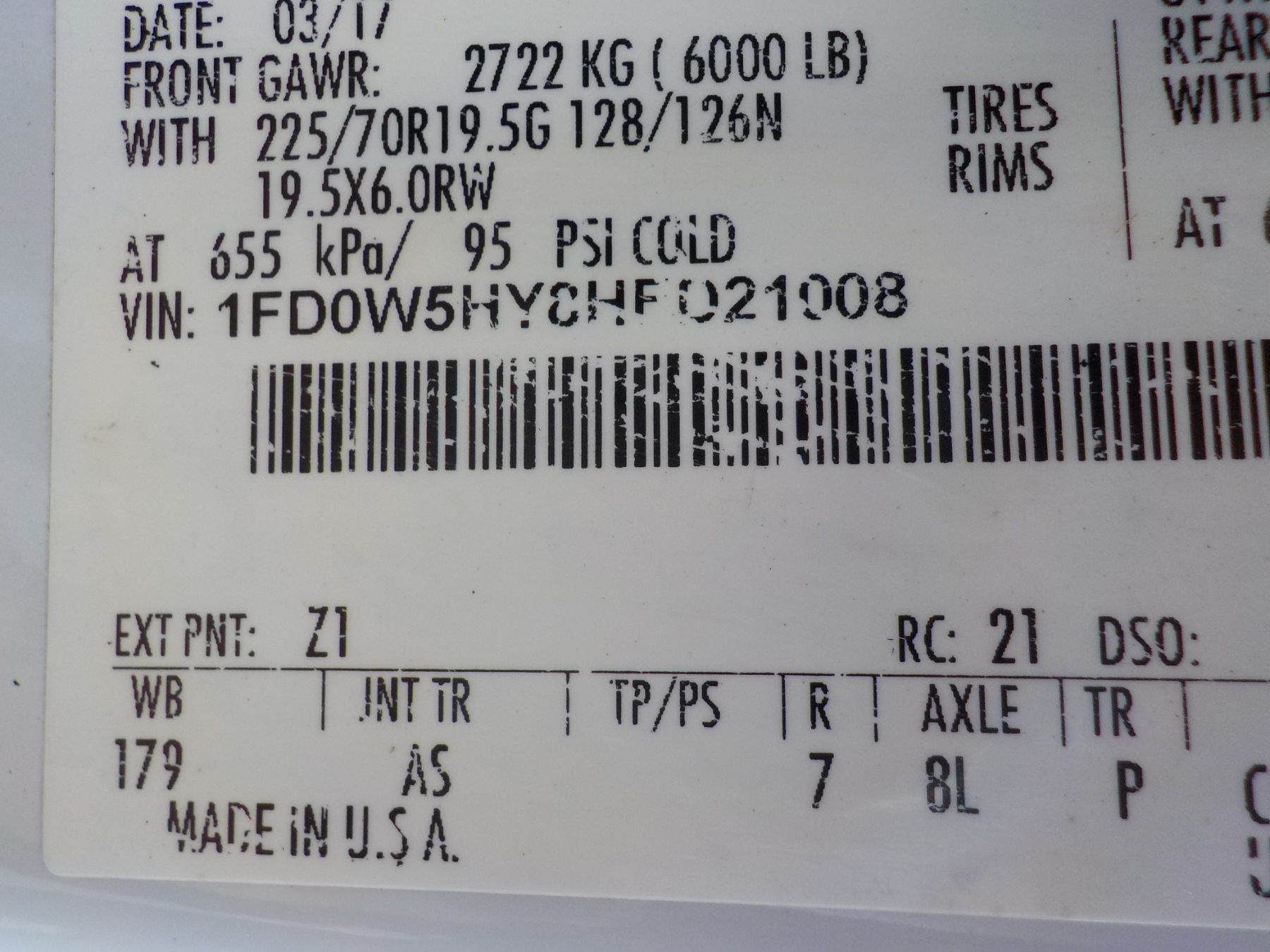 Vehicle ID Number: 1FD0W5HY8HED21008