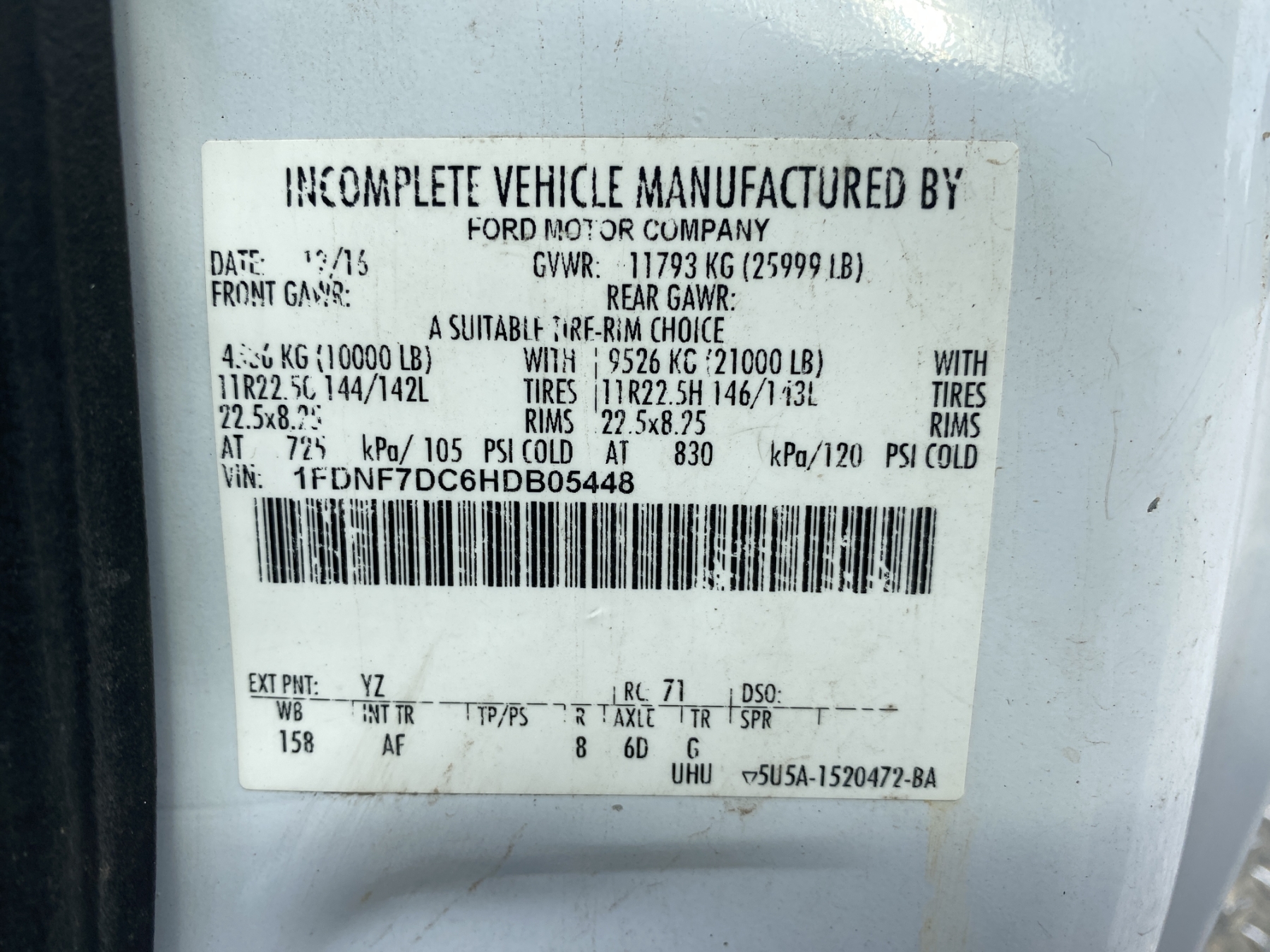 Vehicle ID Number: 1FDNF7DC6HDB05448