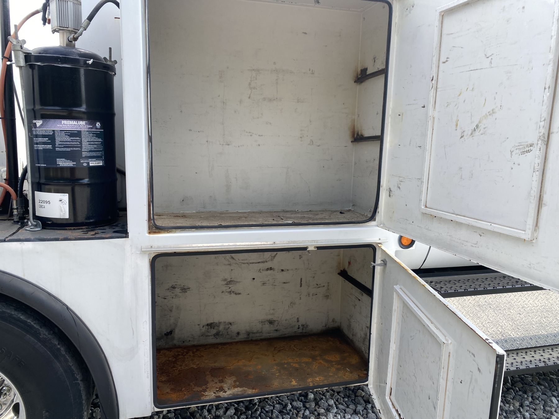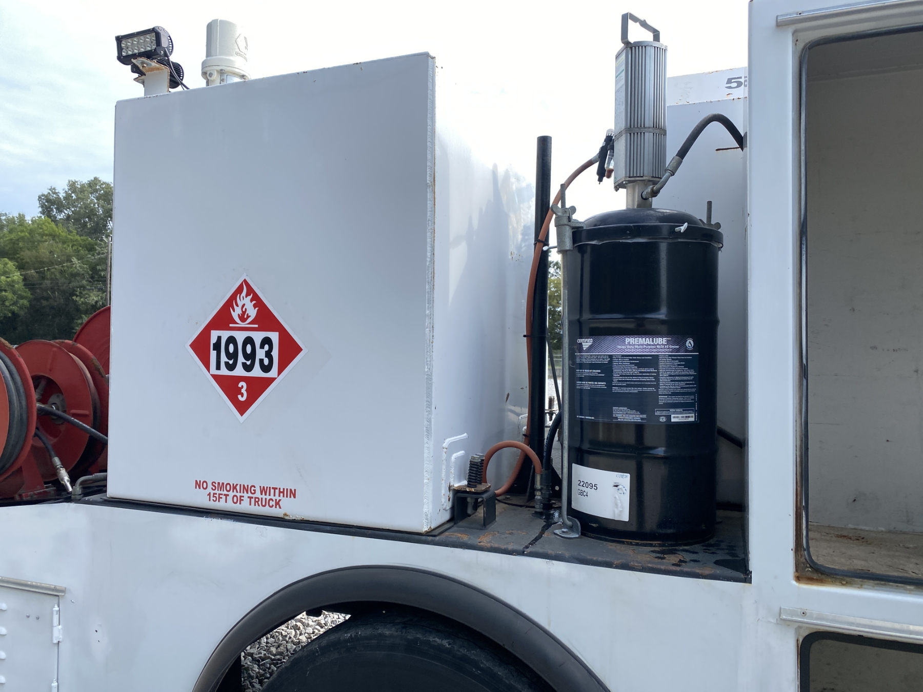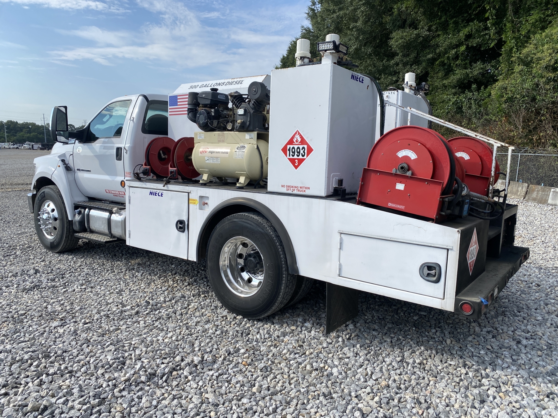 Power Stroke diesel, A/T, 13' body, 500 gallon fuel tank, (4) product tanks, waste oil recovery sys, grease BBL, air compressor, hose reels