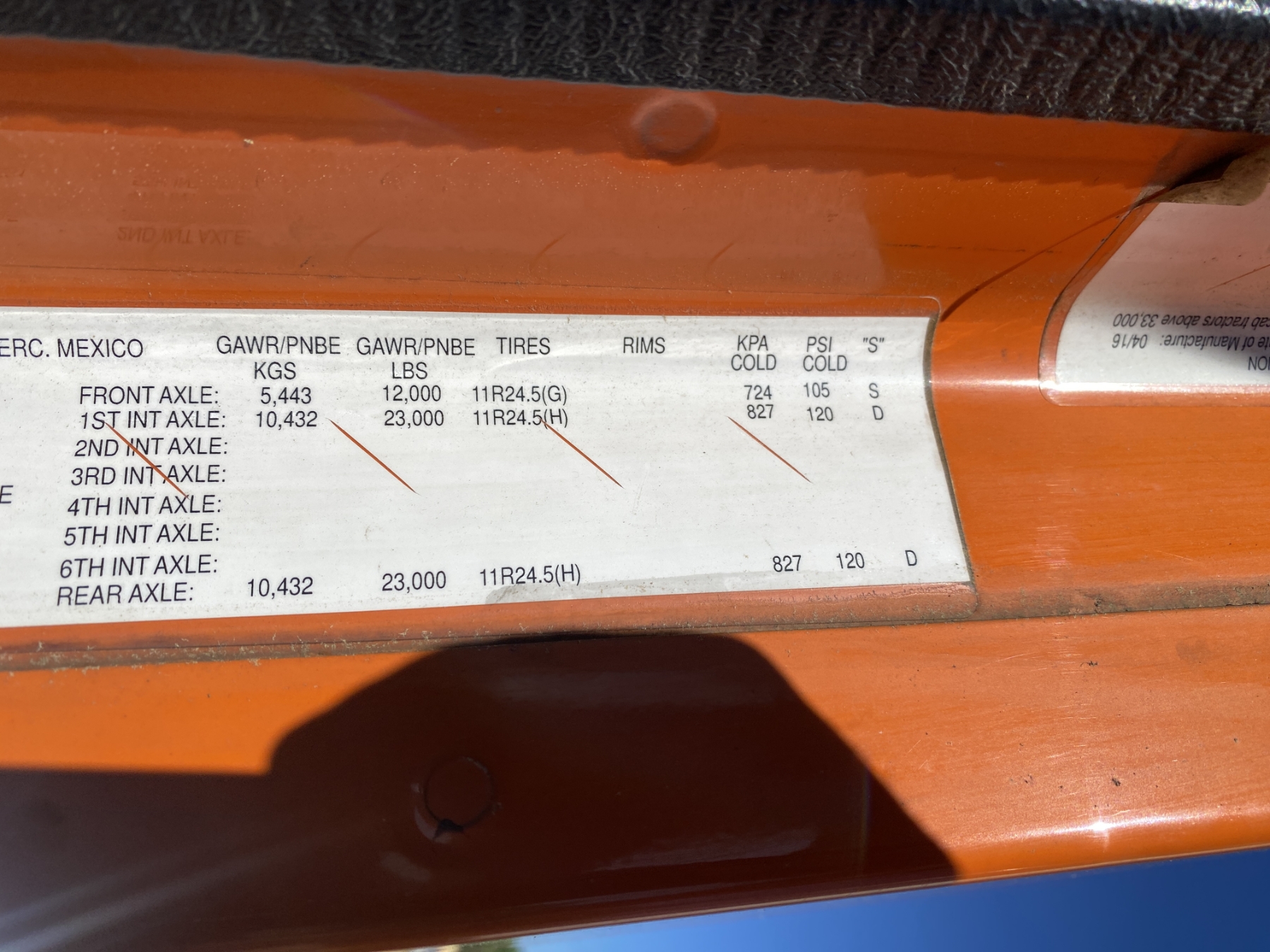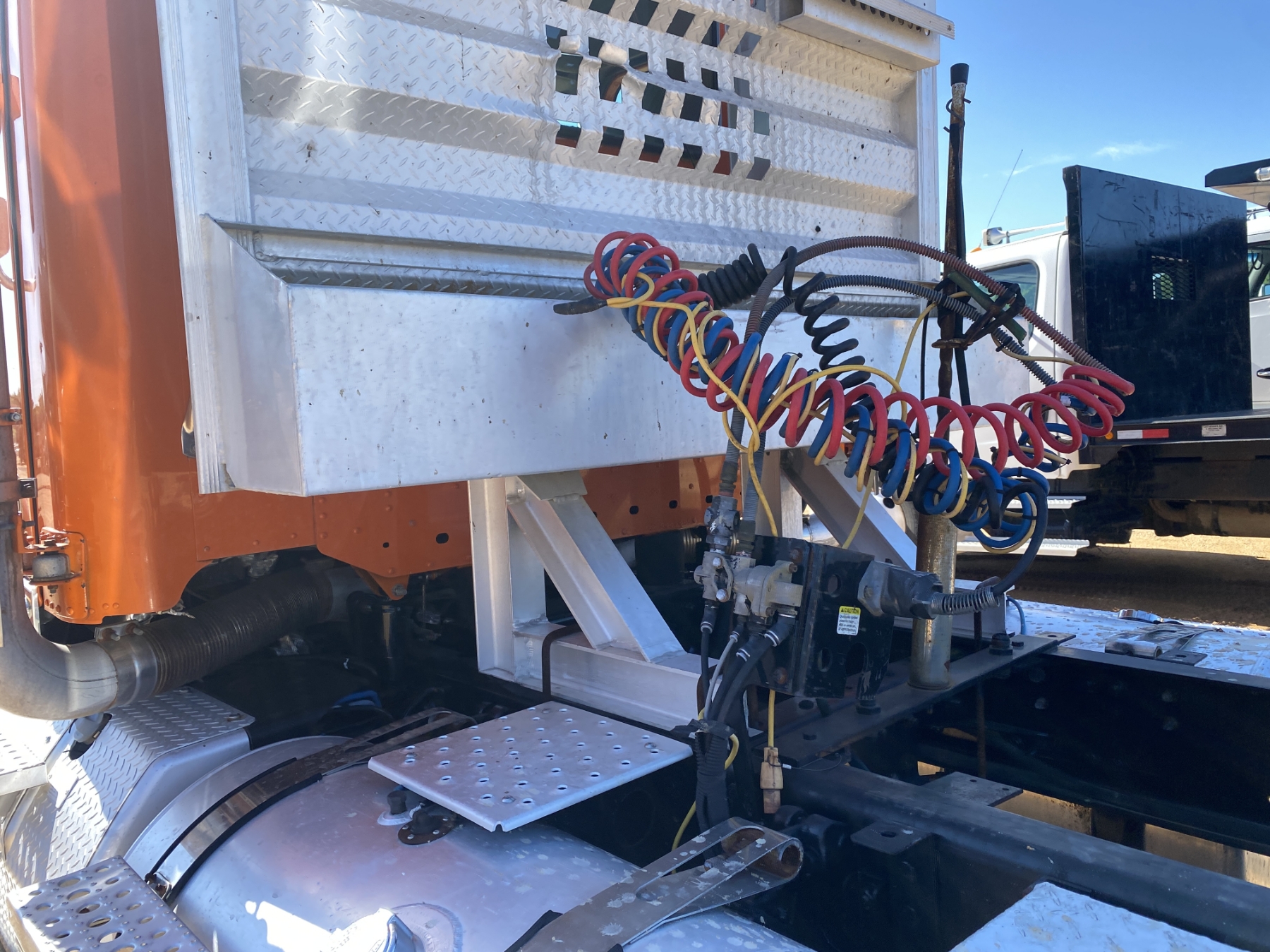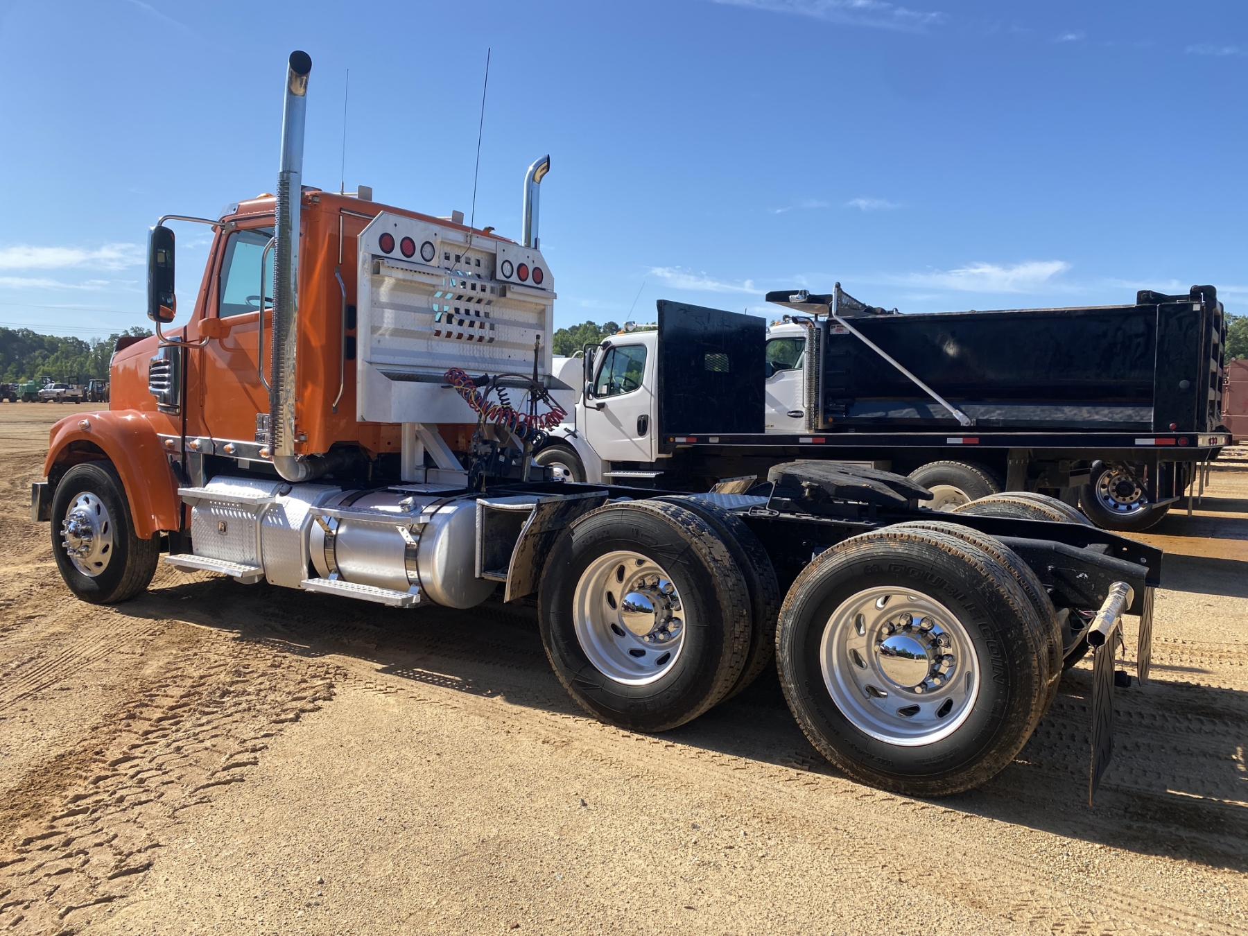 T/A, 505 HP Detroit DD15 engine, 10 speed trans, 46K rears, air ride, 12K front, 220" W/B, Vulcan V320 scale system, alum headache rack, 11R24.5 tires, all alum, (Emissions Altered)