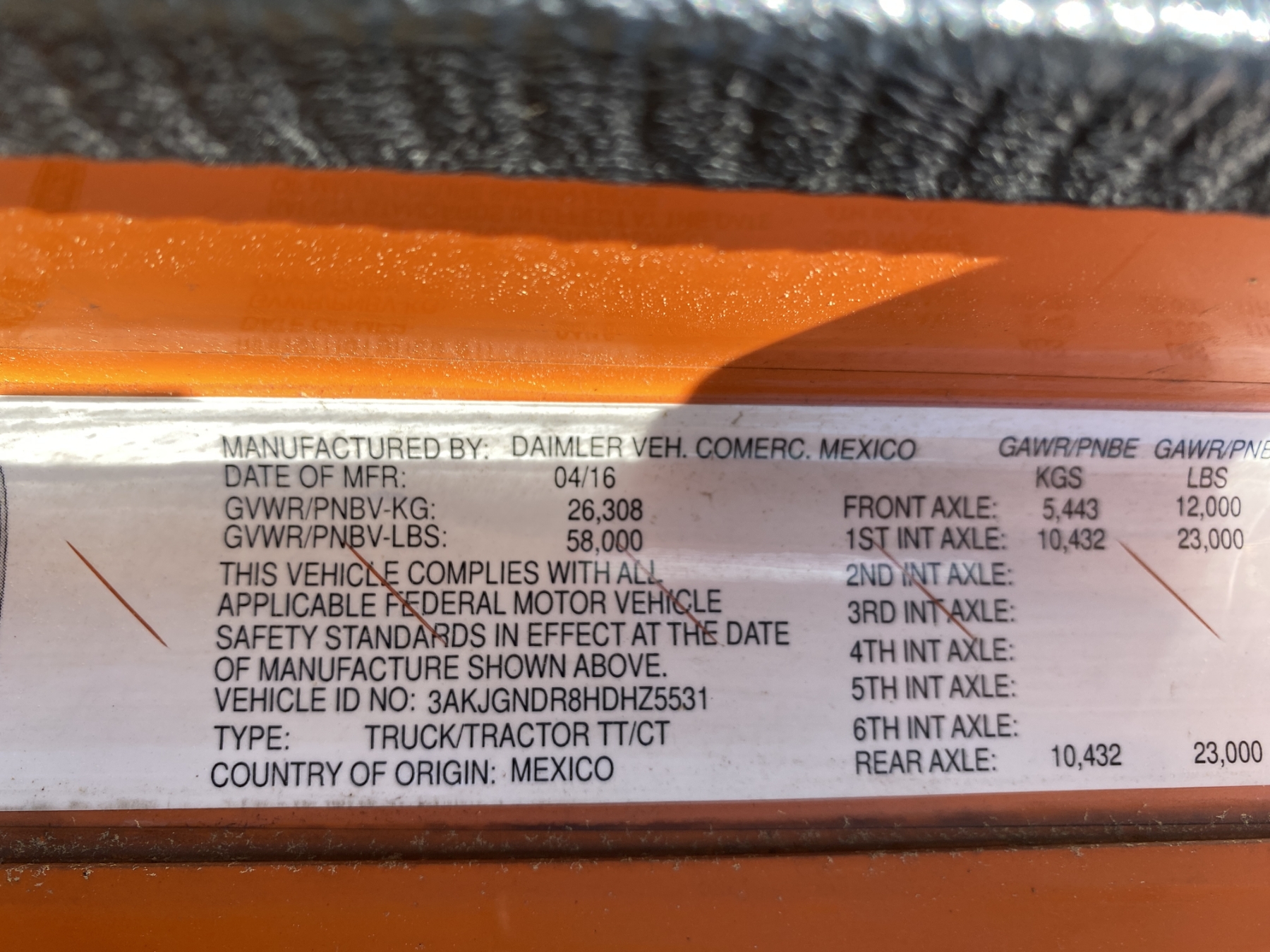 Vehicle ID Number: 3AKJGNDR8HDHZ5531