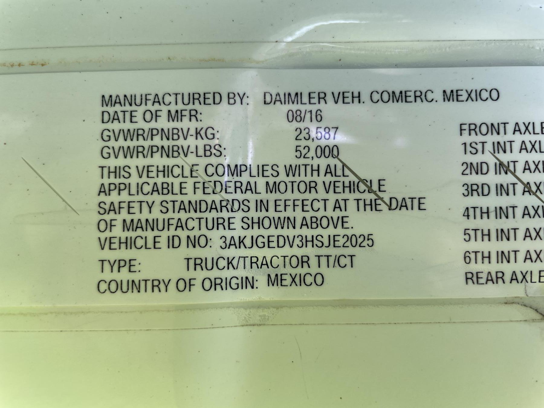 Vehicle ID Number: 3AKJGEDV3HSJE2025