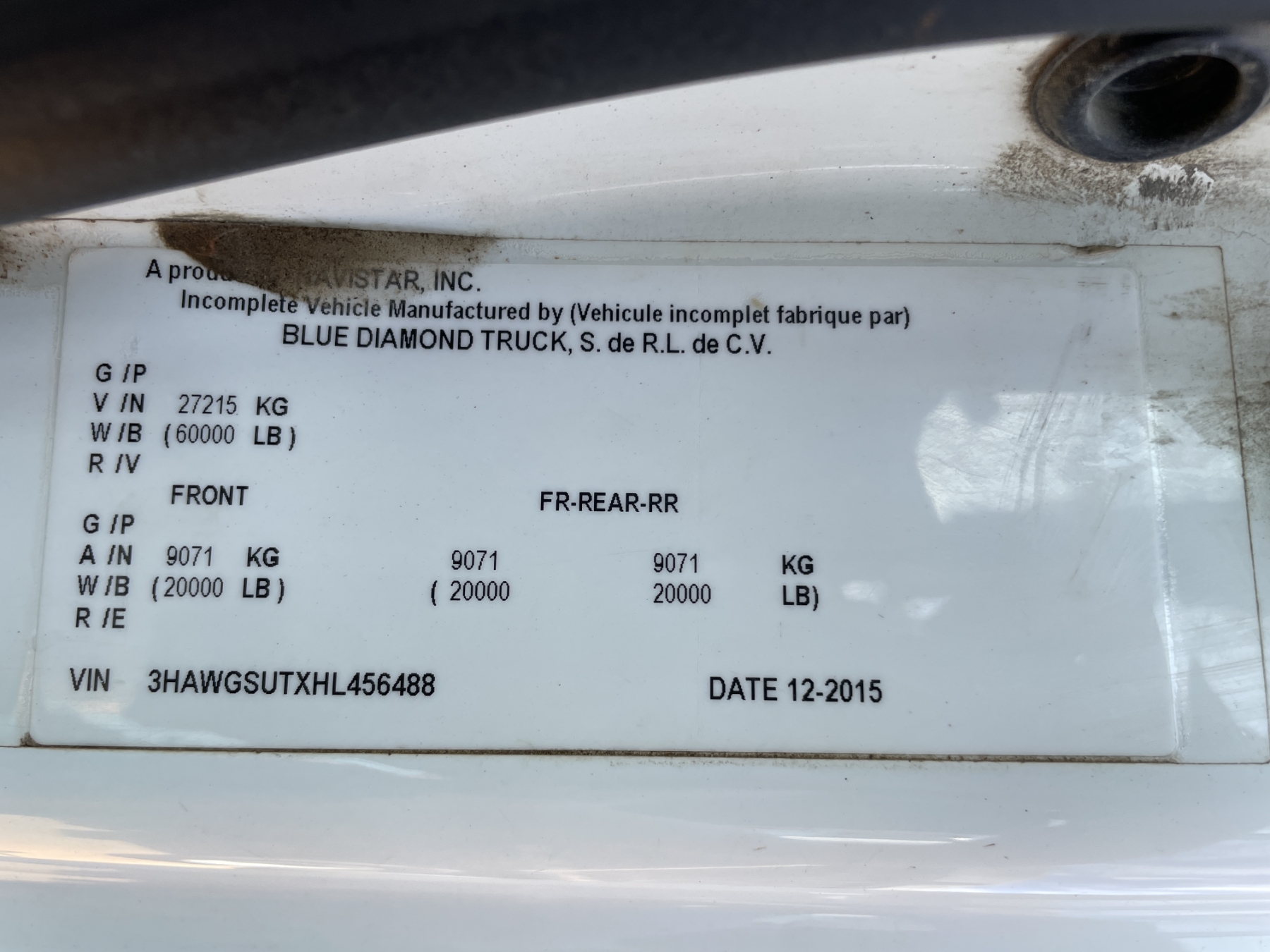 Vehicle ID Number: 3HAWGSUTXHL456488