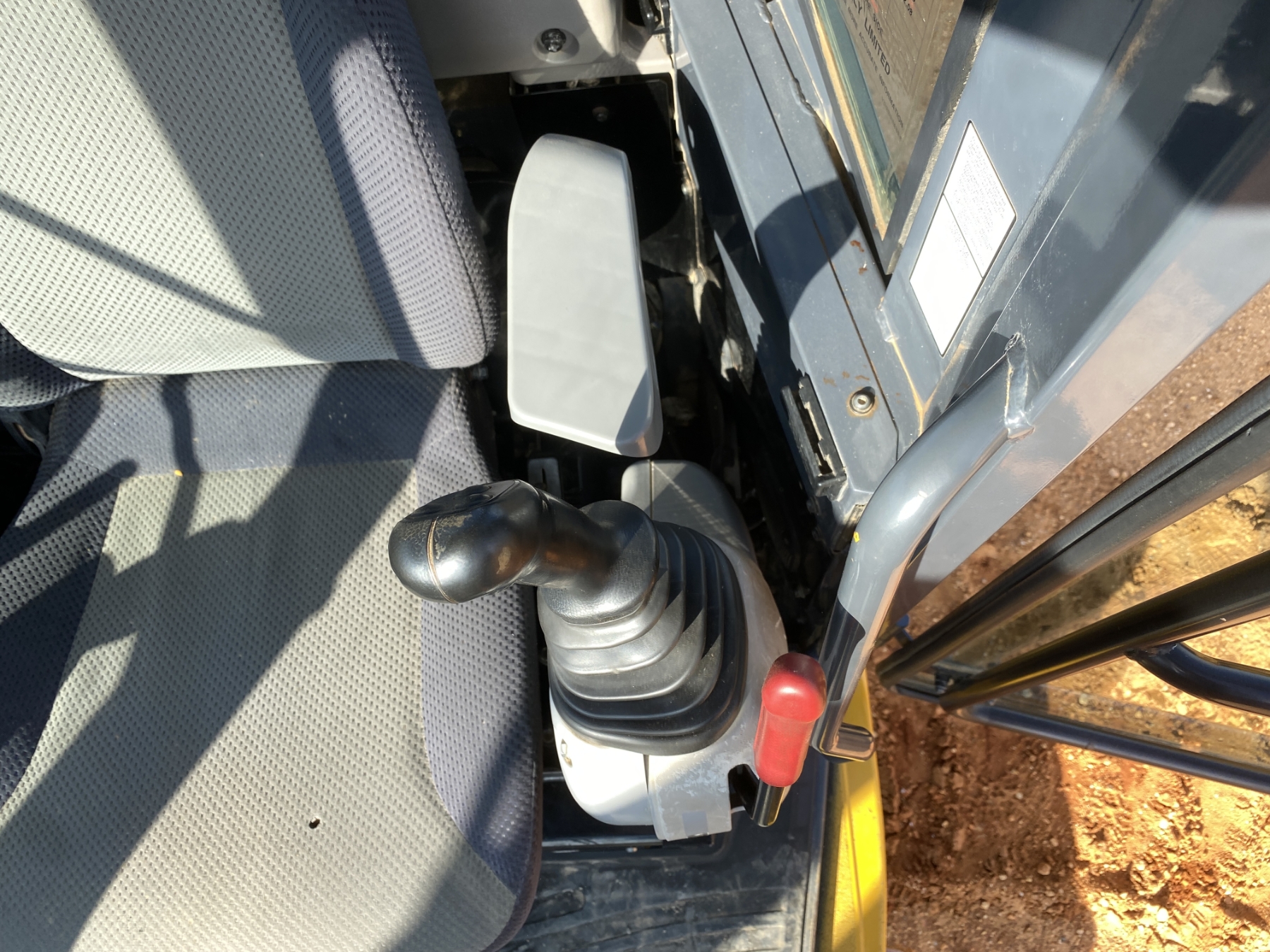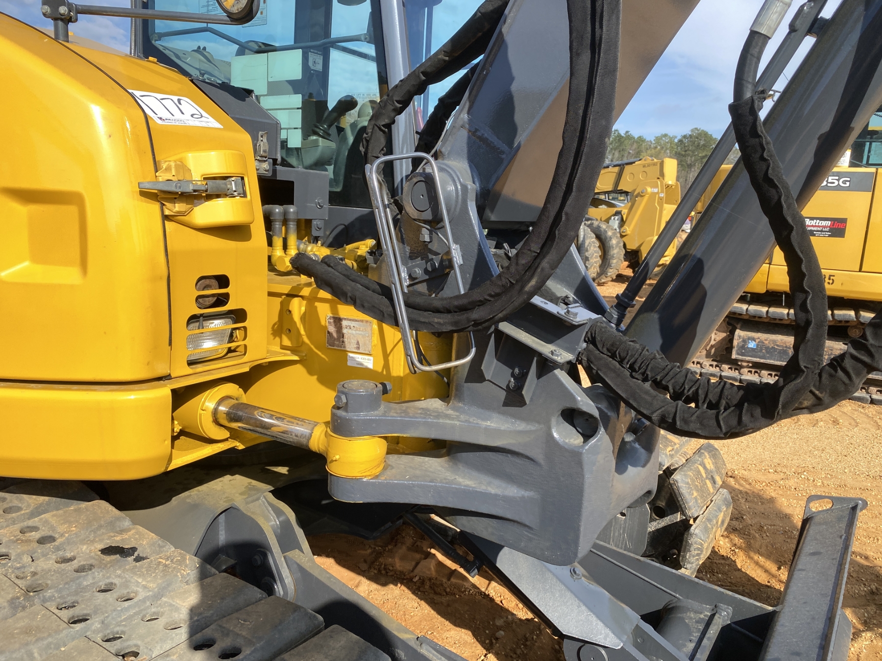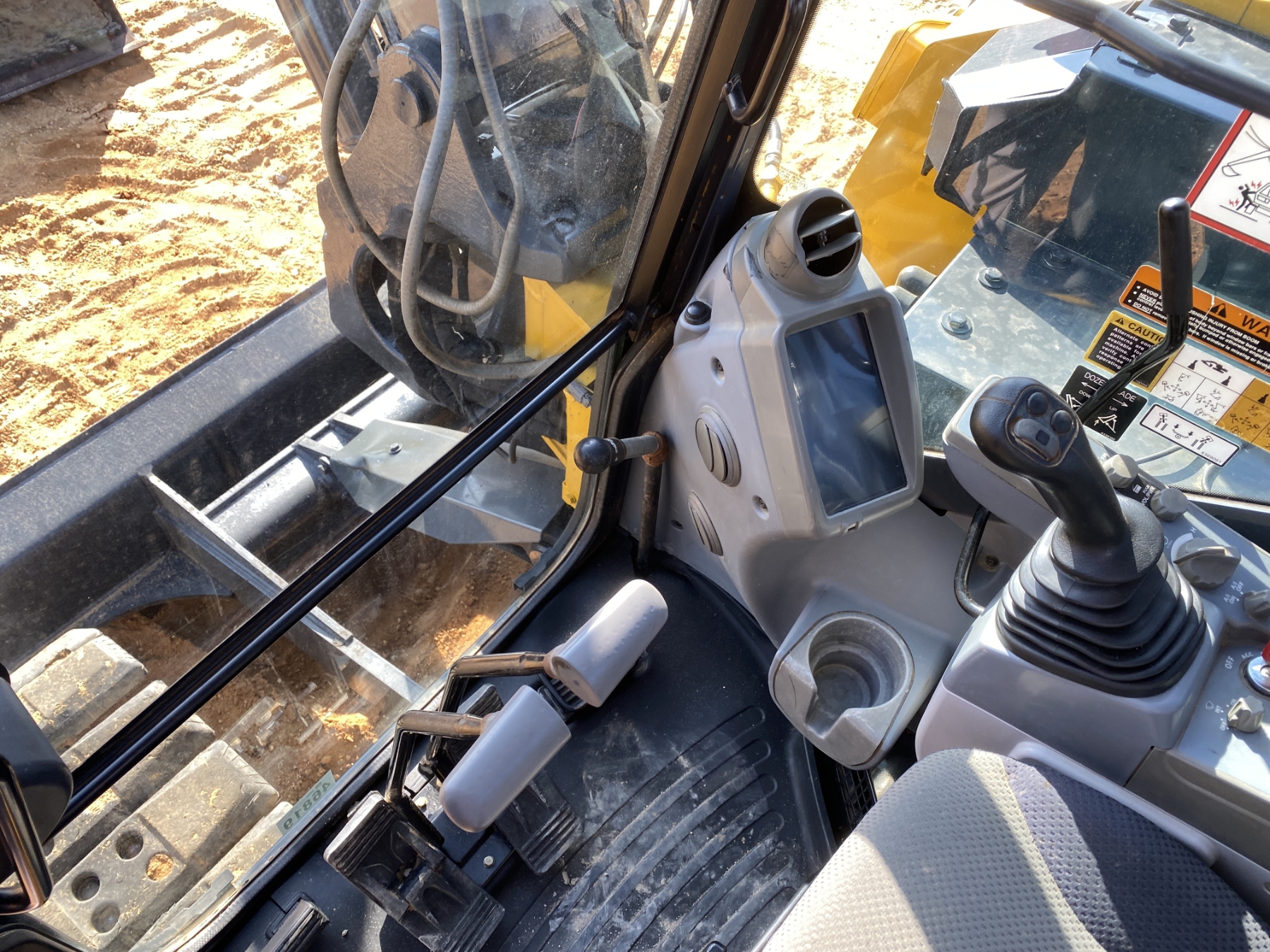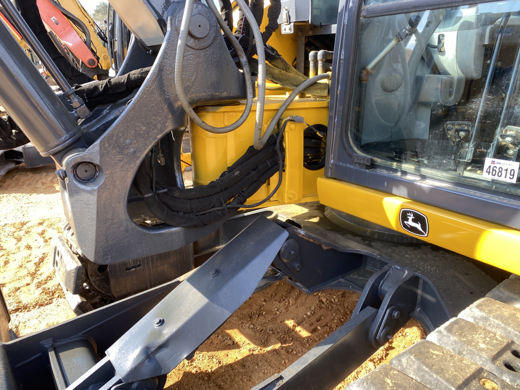 6' 8" stick, 48" tilt cleanout bucket, aux hyd, rubber pads, blade, cab, A/C