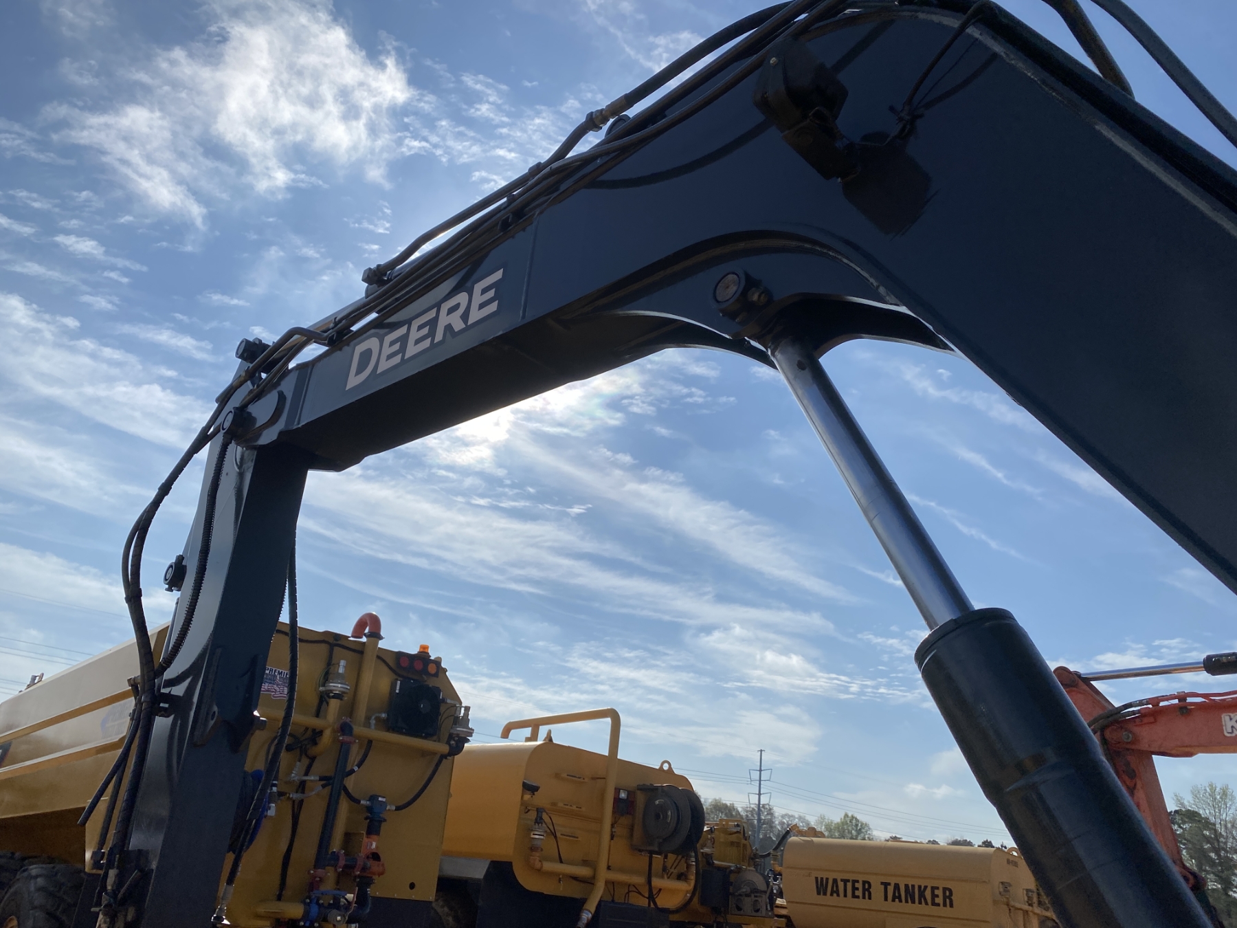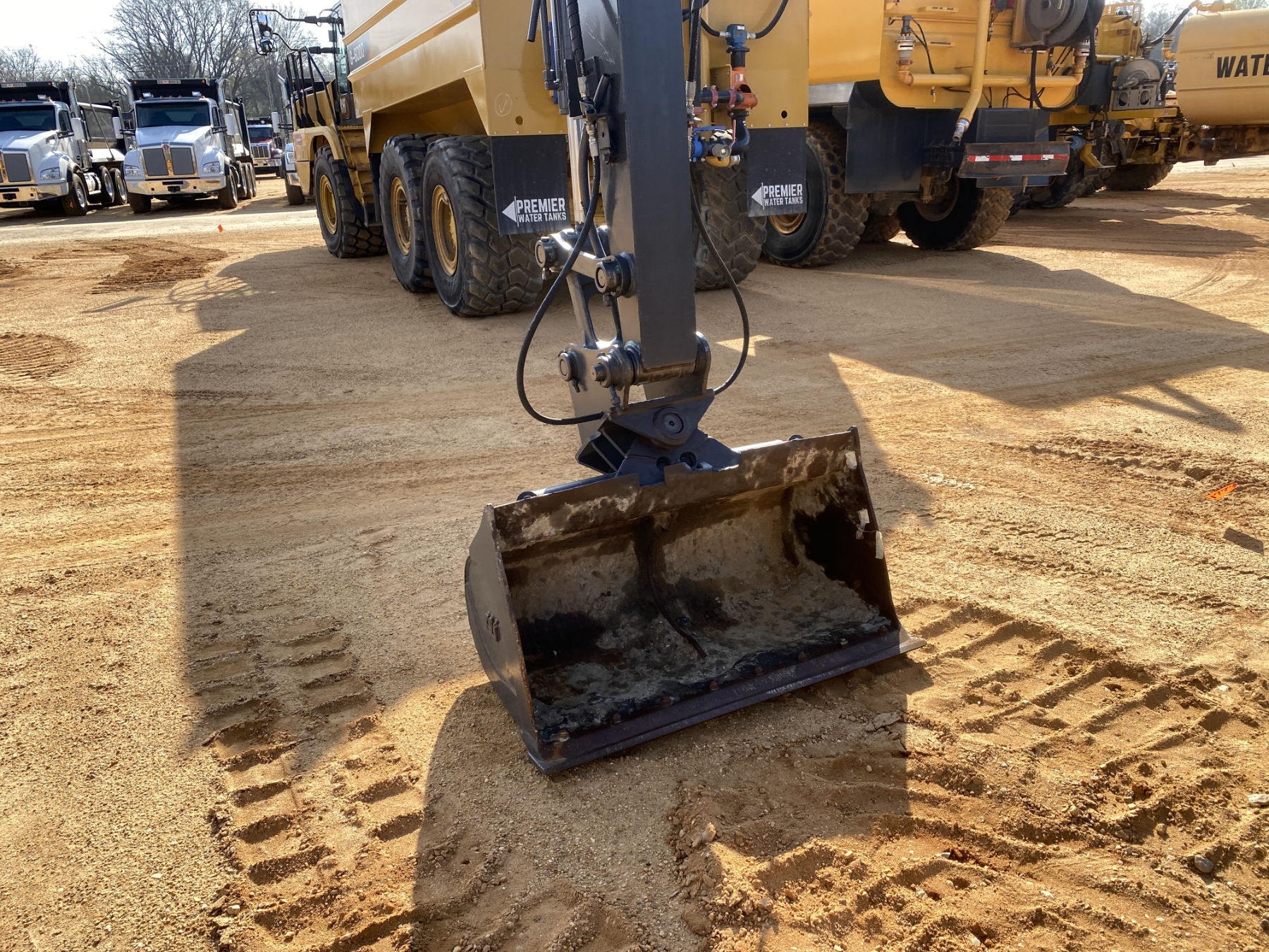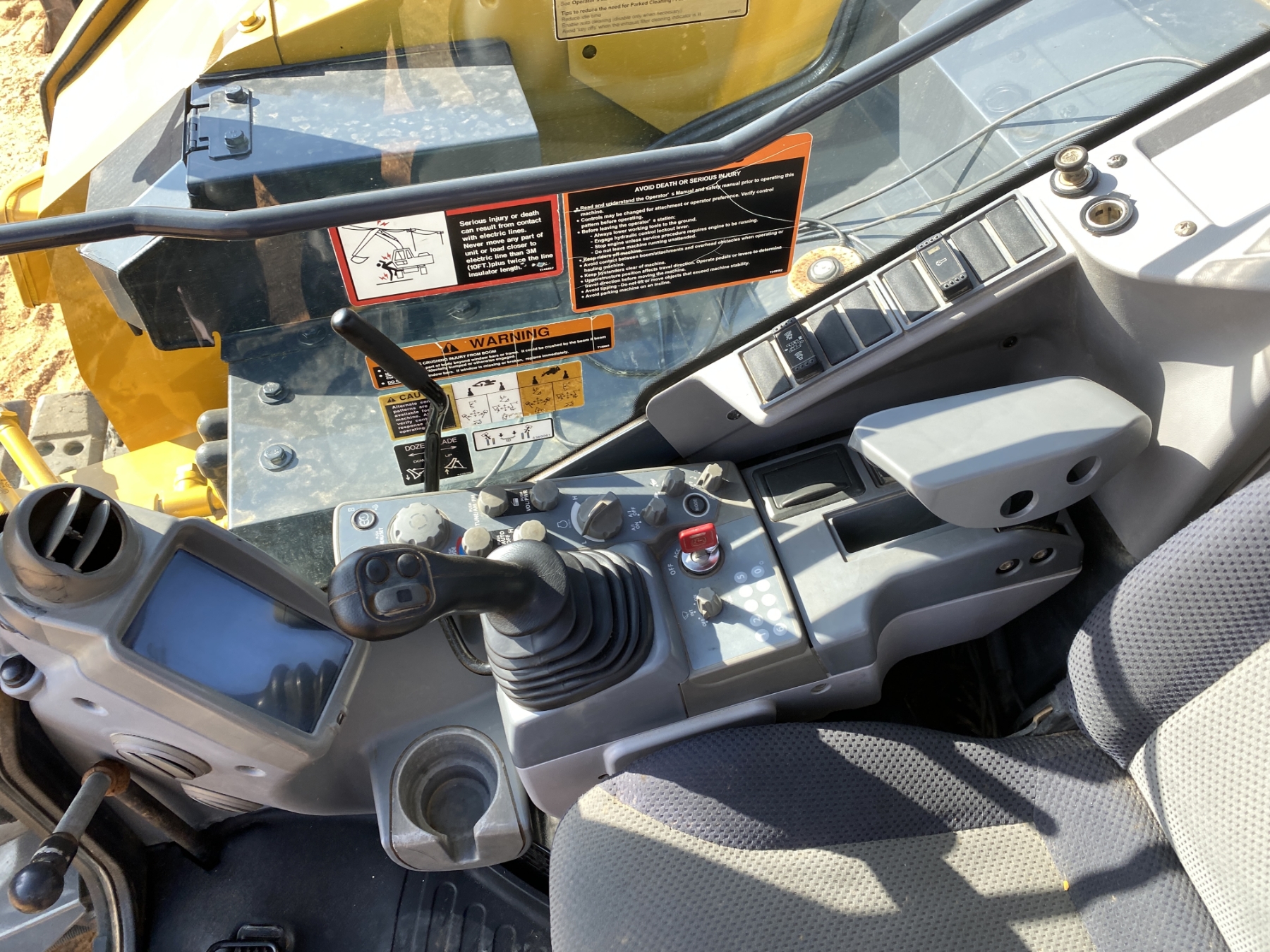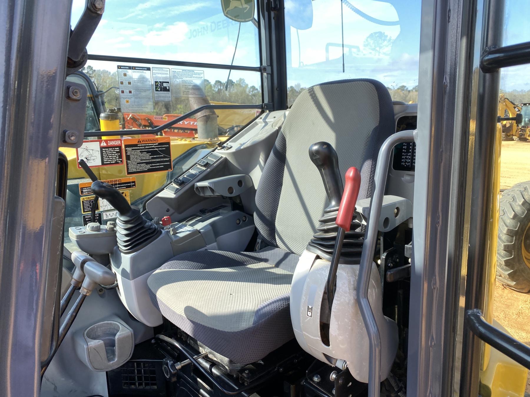 6' 8" stick, 48" tilt cleanout bucket, aux hyd, rubber pads, blade, cab, A/C