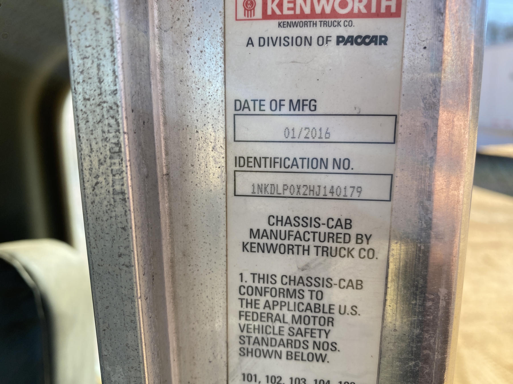 Vehicle ID Number: 1NKDLP0X2HJ140179