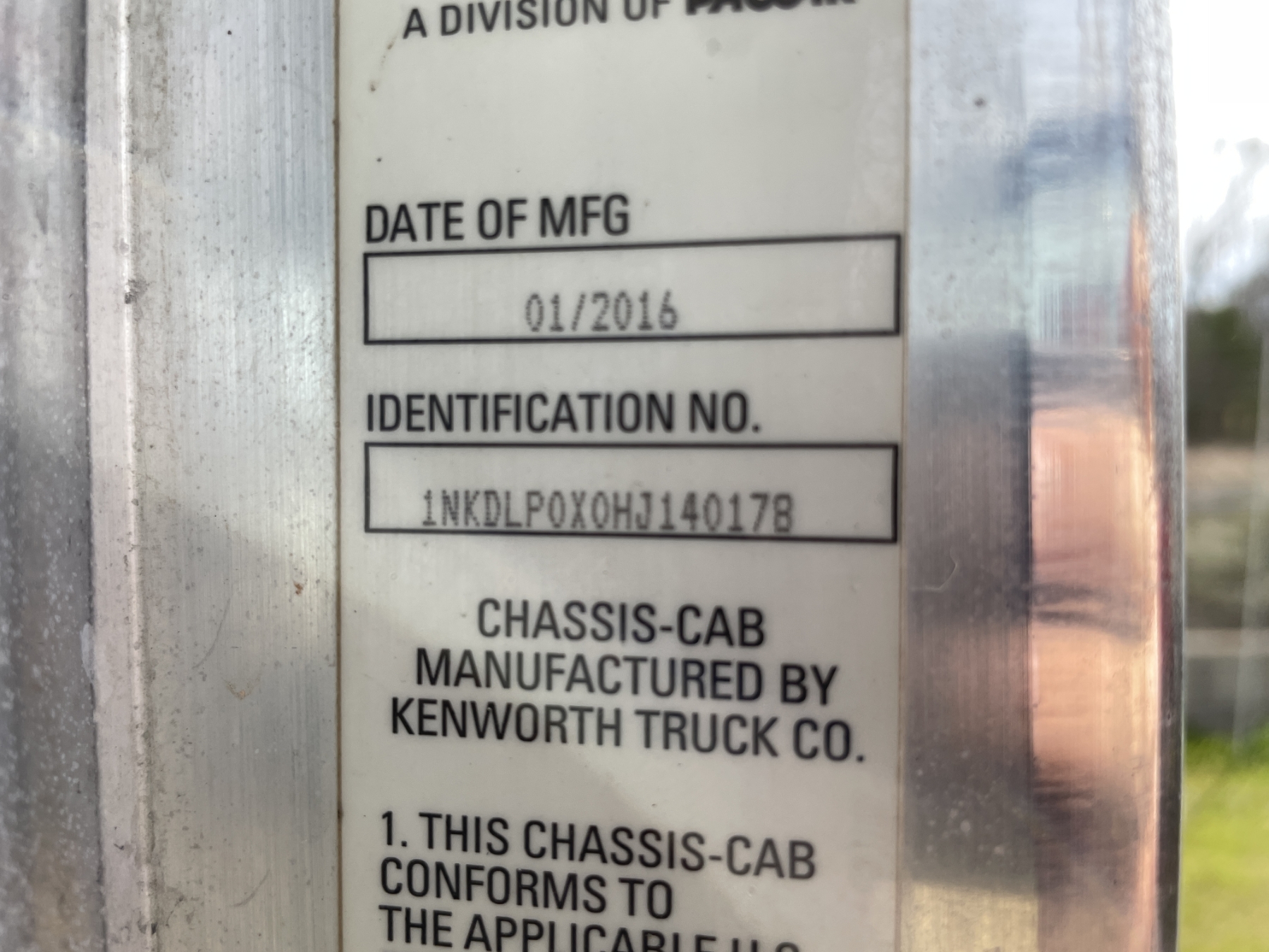 Vehicle ID Number: 1NKDLP0X0HJ140178