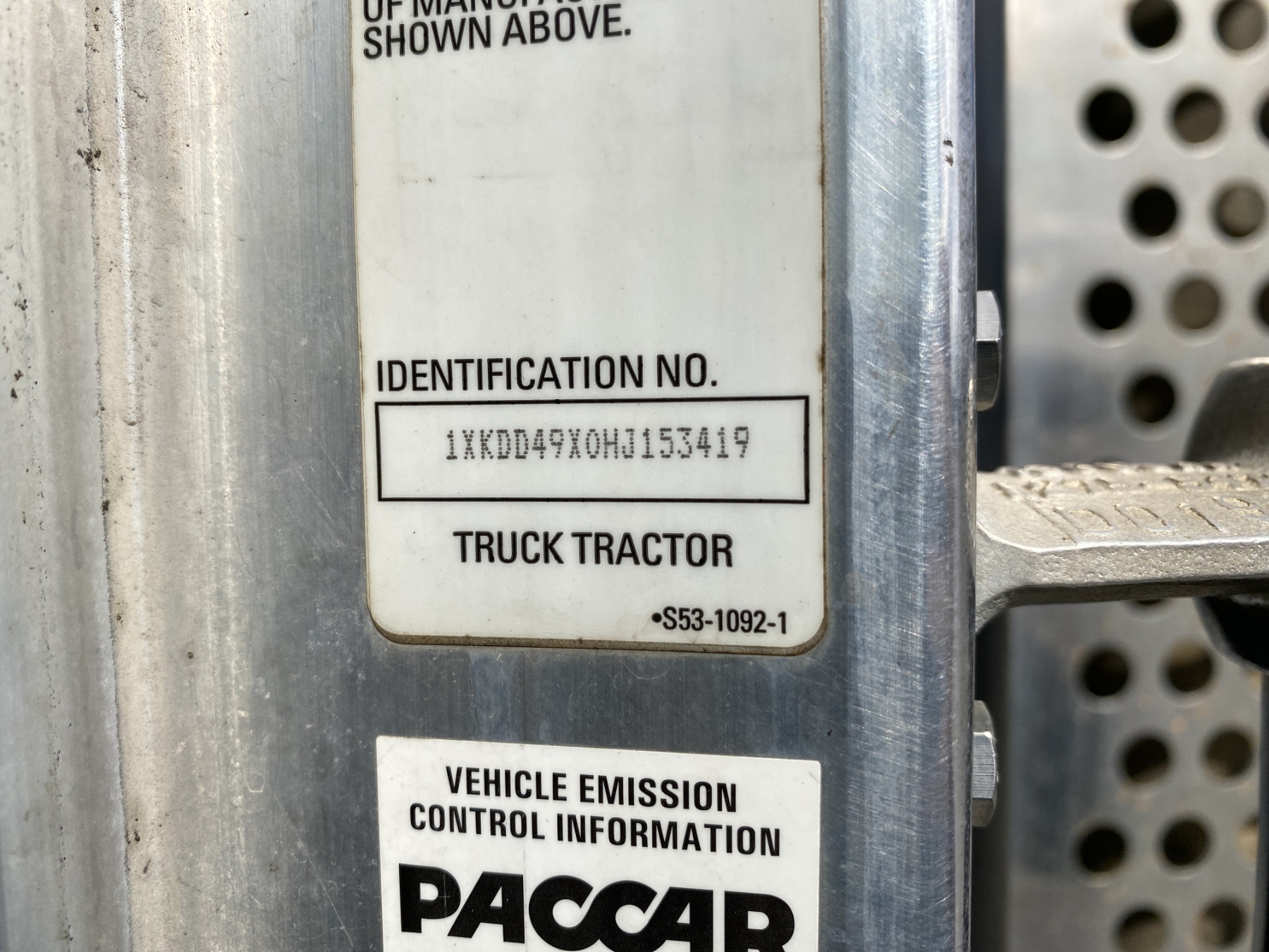 Vehicle ID Number: 1XKDD49X0HJ153419