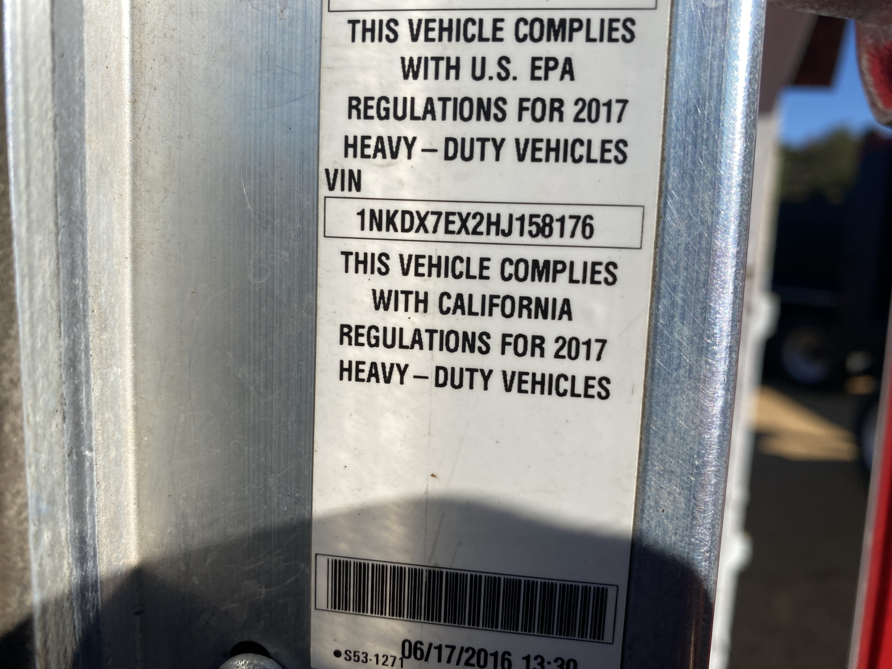 Vehicle ID Number: 1NKDX7EX2HJ158176