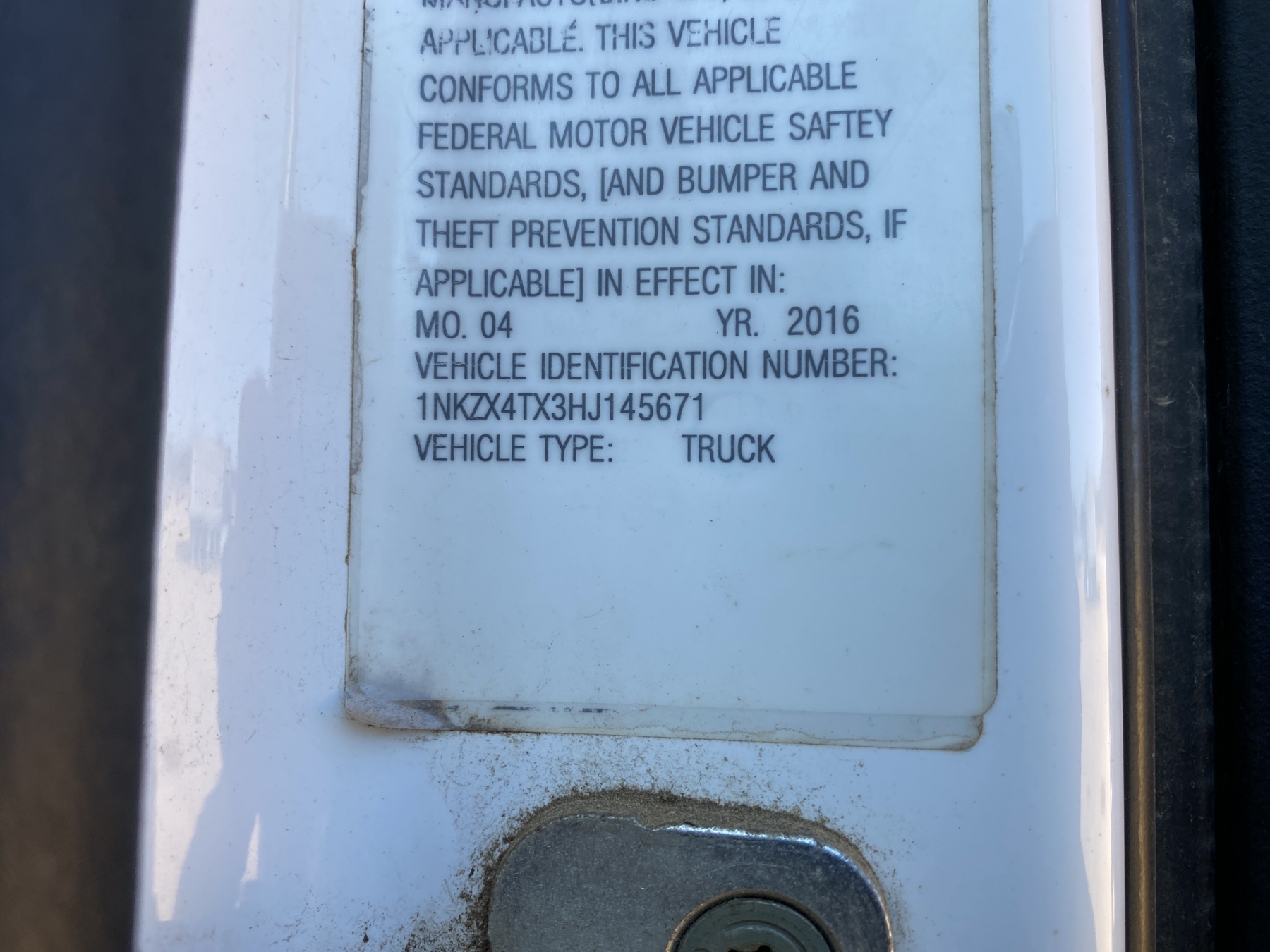 Vehicle ID Number: 1NKZX4TX3HJ145671