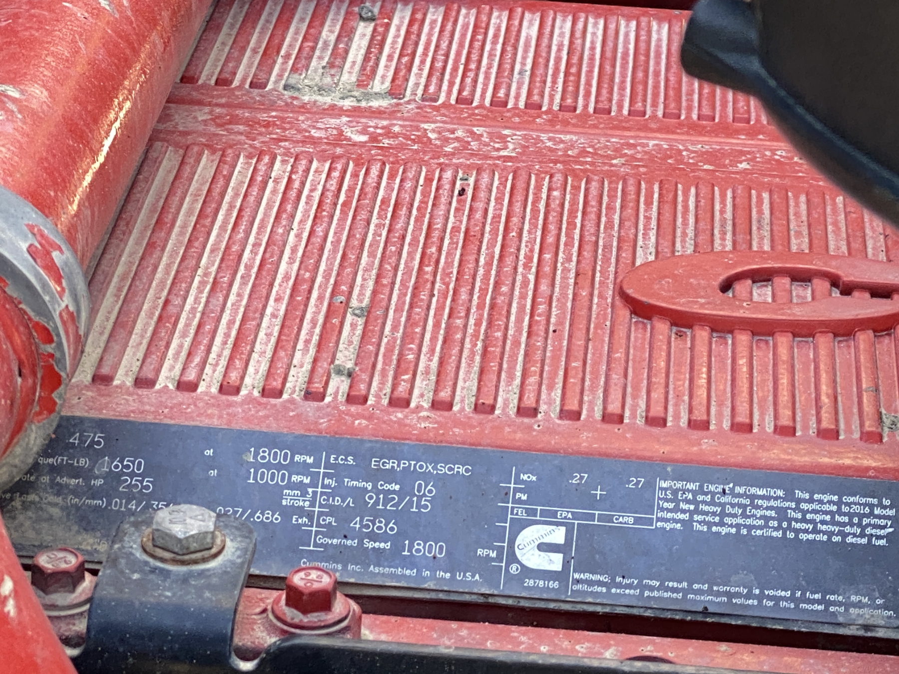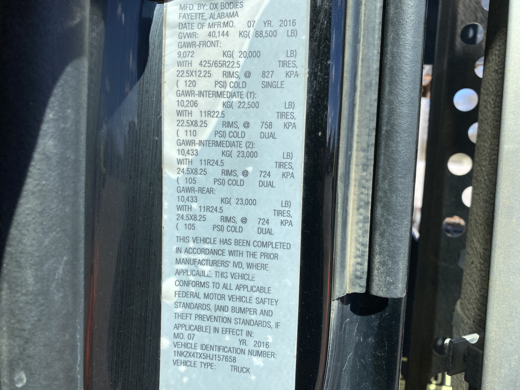 Tri Axle, 475 HP Cummins ISX15 engine, Eaton 8LL trans, 46K rears, 20K front, 16' Hard Ox body, 11R24.5 rear tires, 385/65R22.5 front tires, all alum