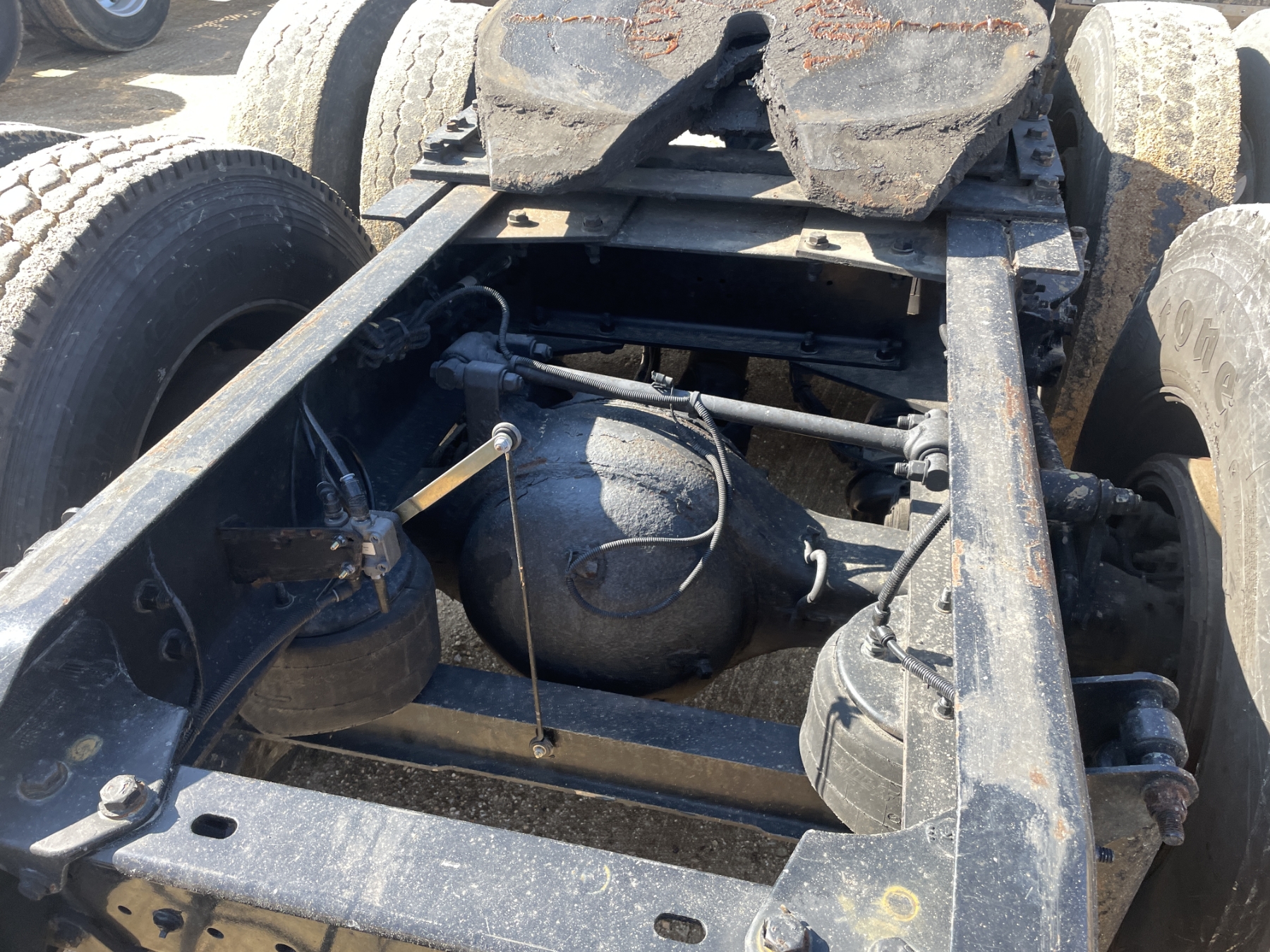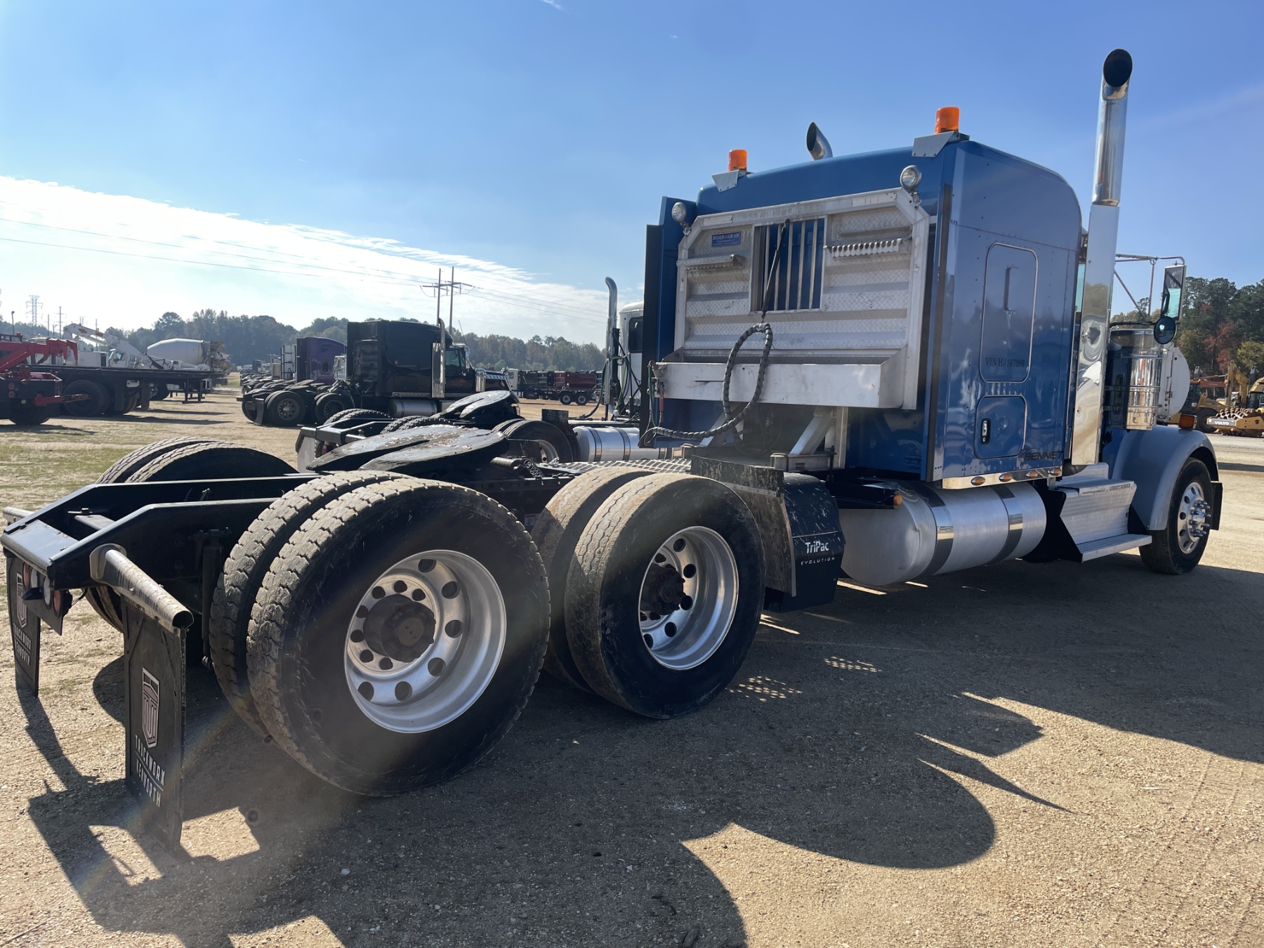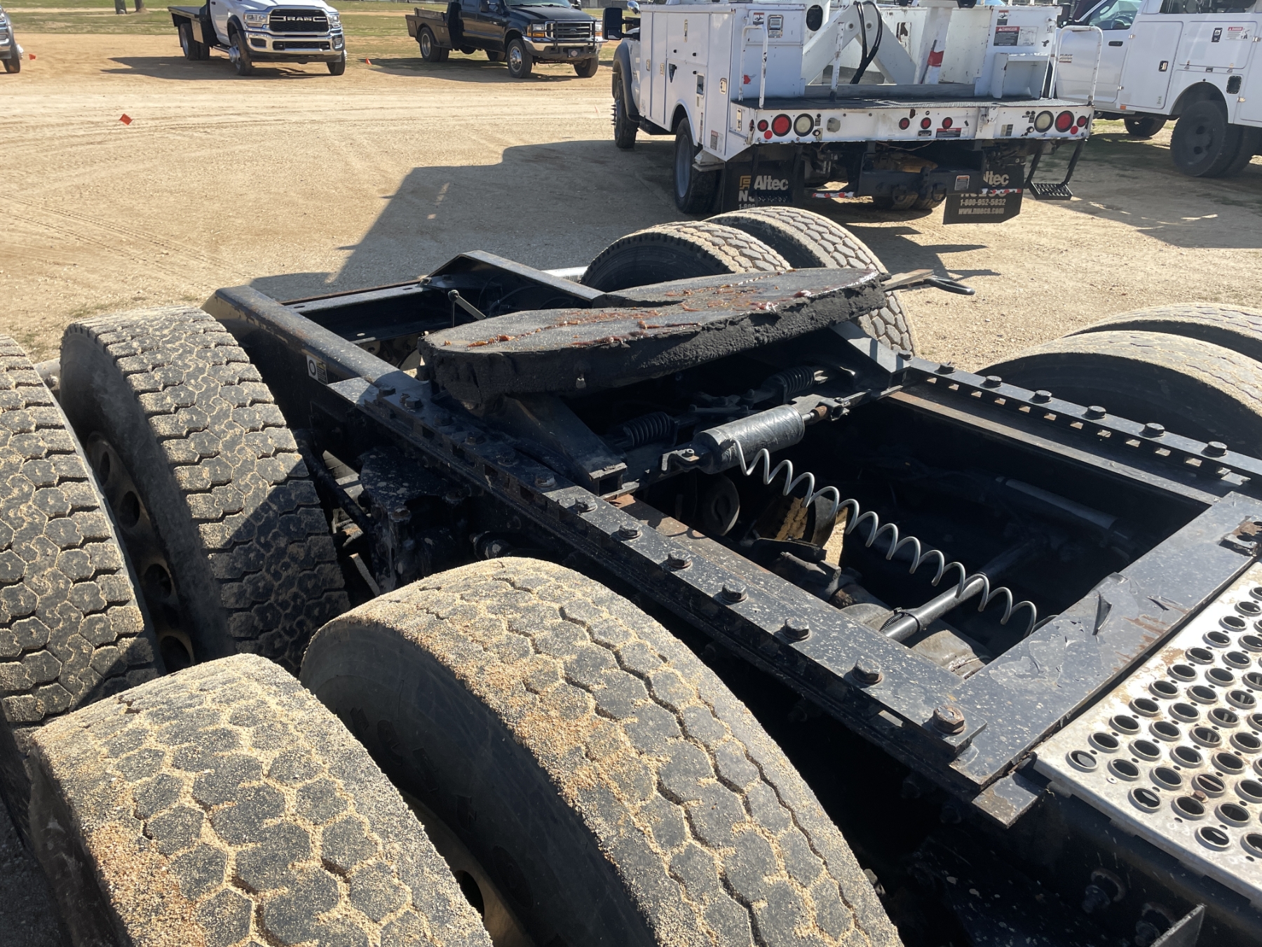 T/A, 500 HP Cummins ISX15 engine, 18 speed trans, 38K rears, air ride, 13,200 lb. 280" W/B, alum headache rack, 11R24.5 tires, all alum