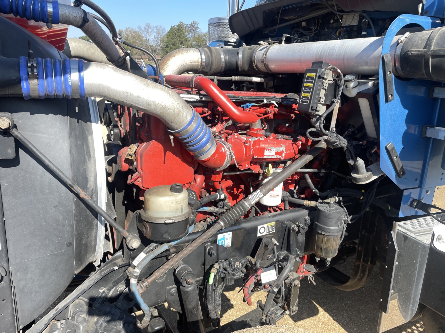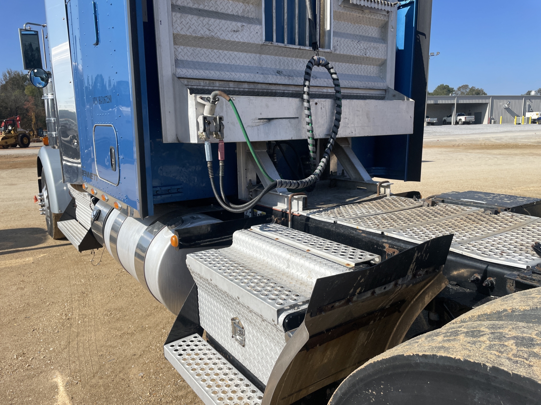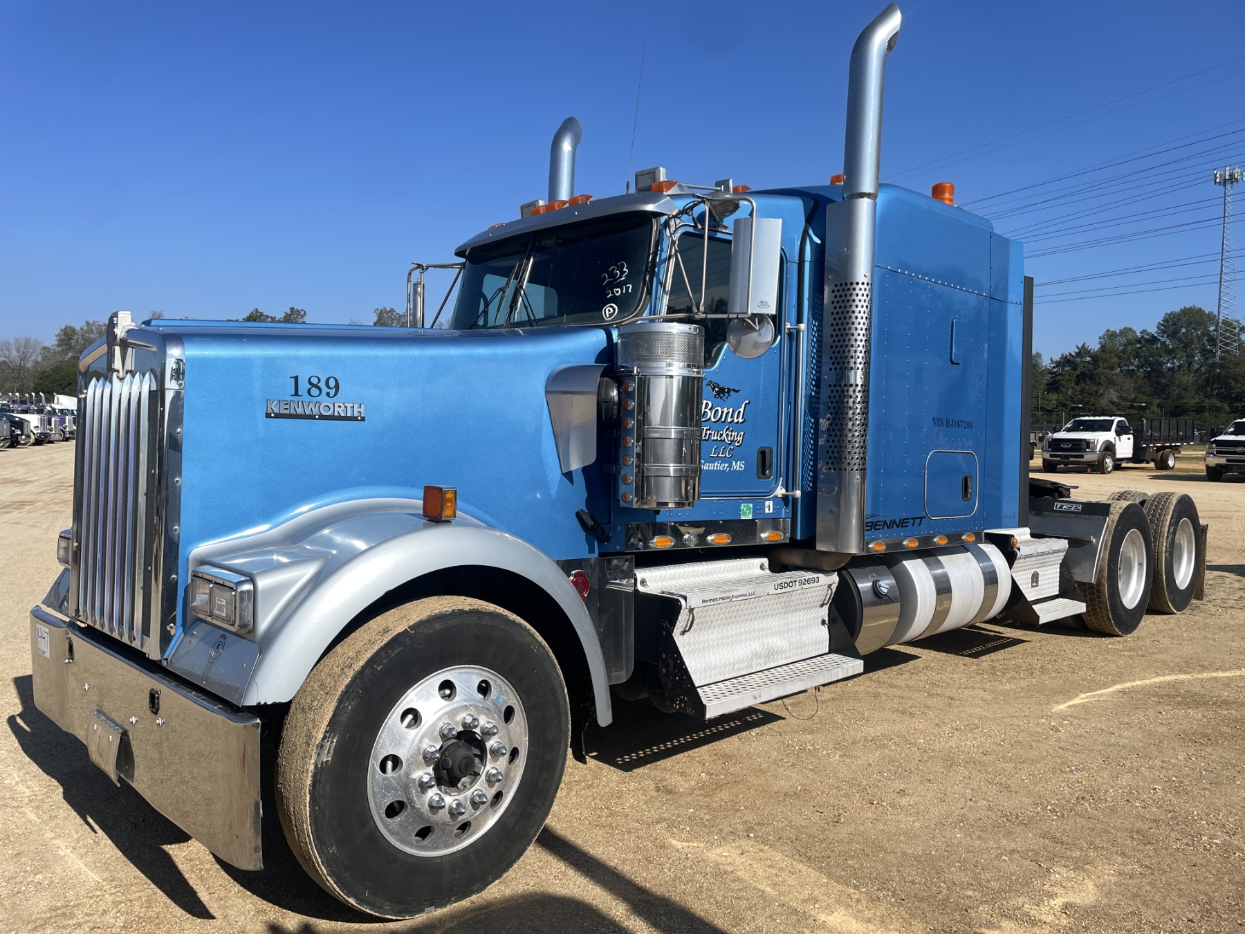 T/A, 500 HP Cummins ISX15 engine, 18 speed trans, 38K rears, air ride, 13,200 lb. 280" W/B, alum headache rack, 11R24.5 tires, all alum