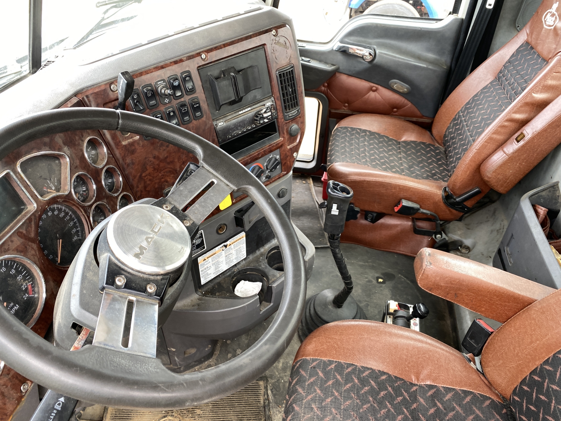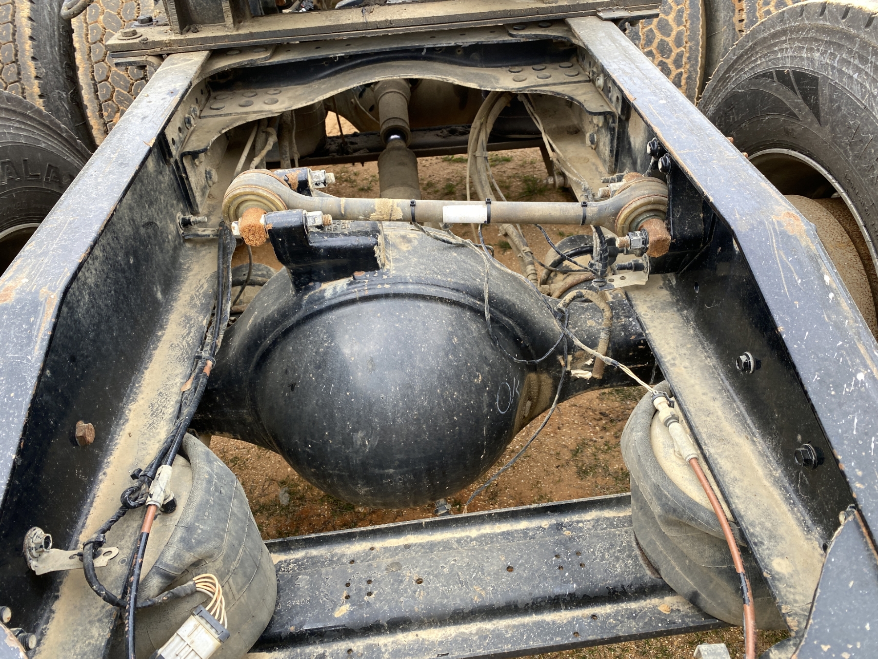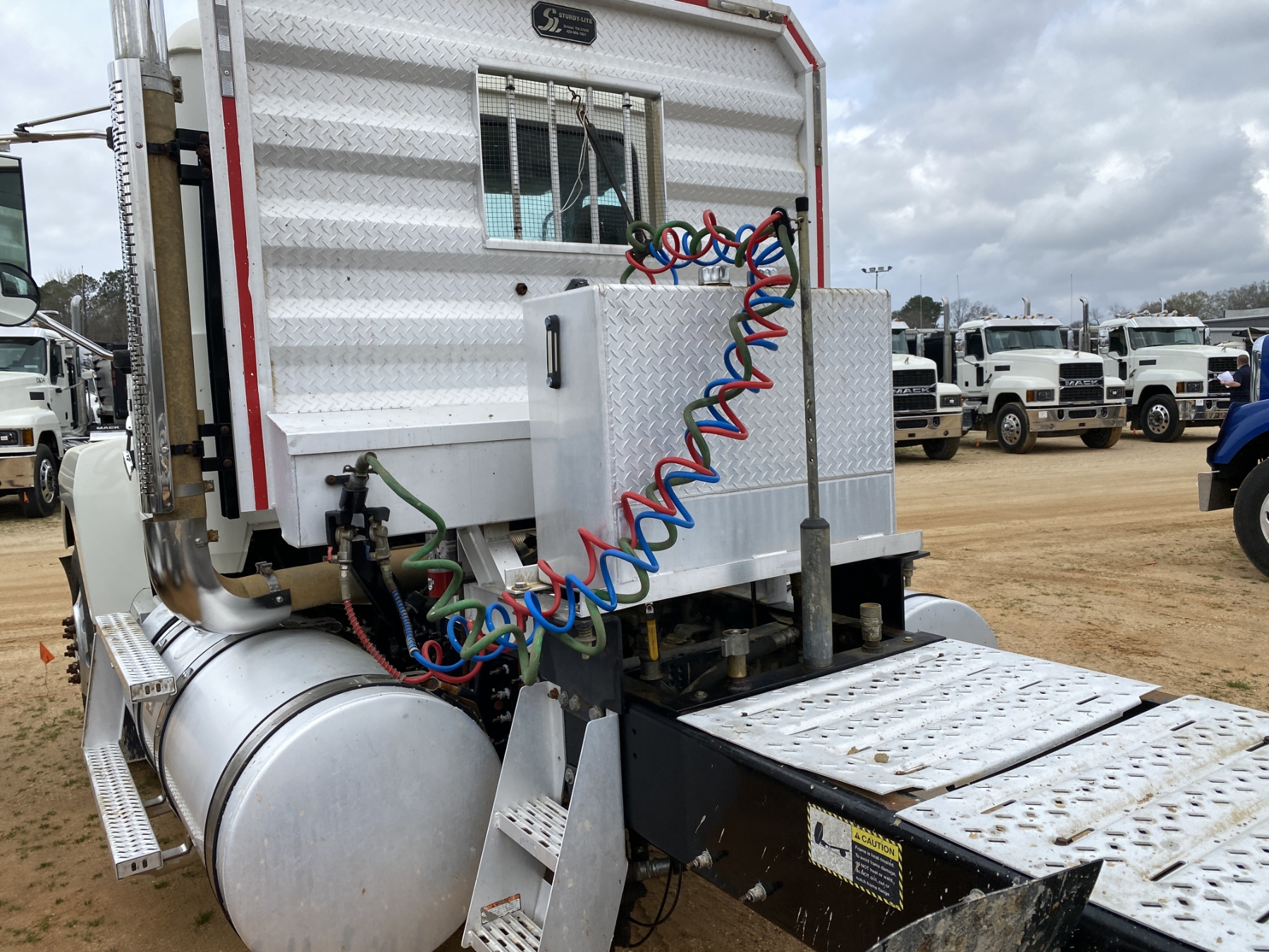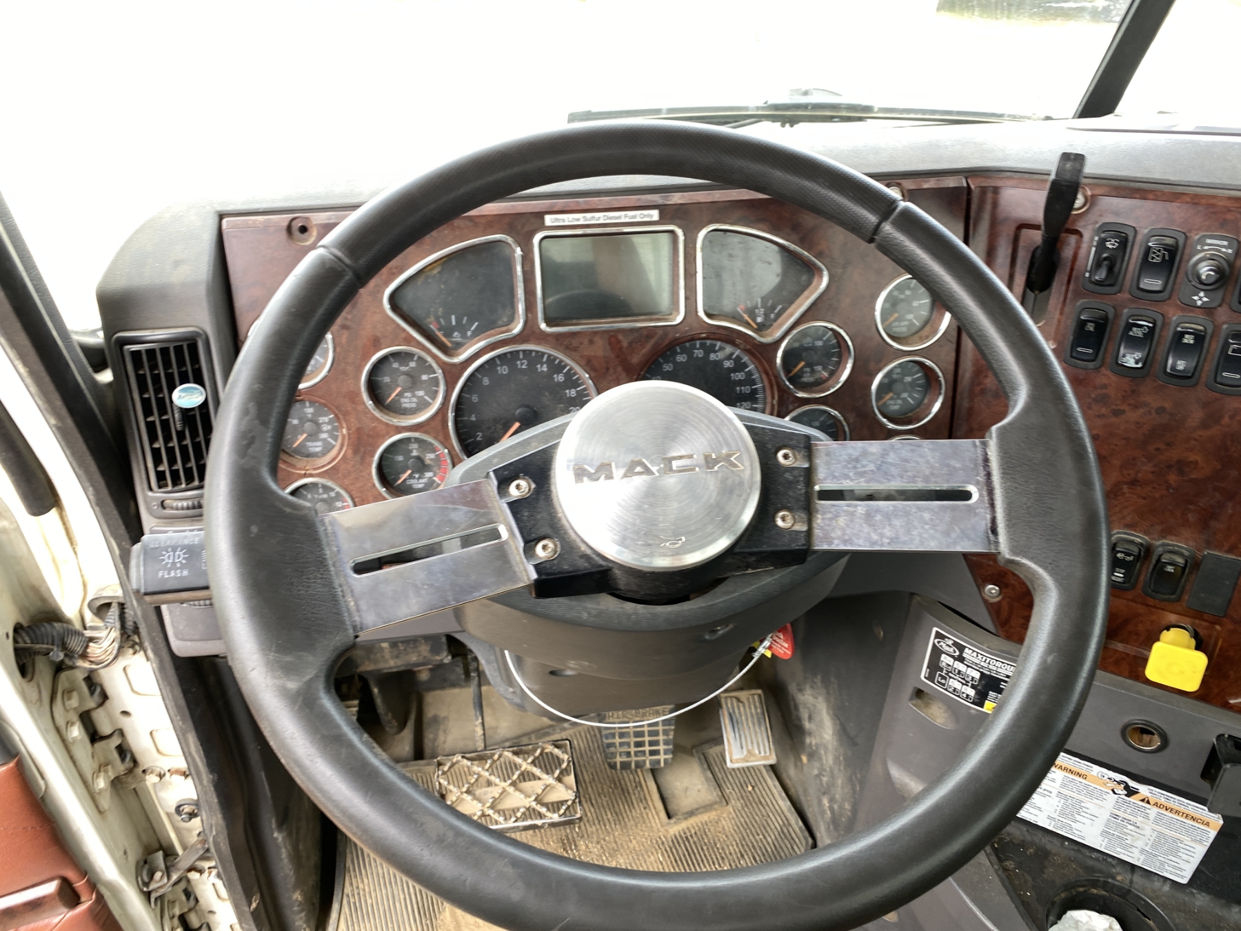 T/A, 505 HP Mack MP8 engine, 18 speed trans, 46K rears air ride, 14,320 lb. front, 235" W/B, wet kit, alum headache rack, 11R24.5 tires, all alum