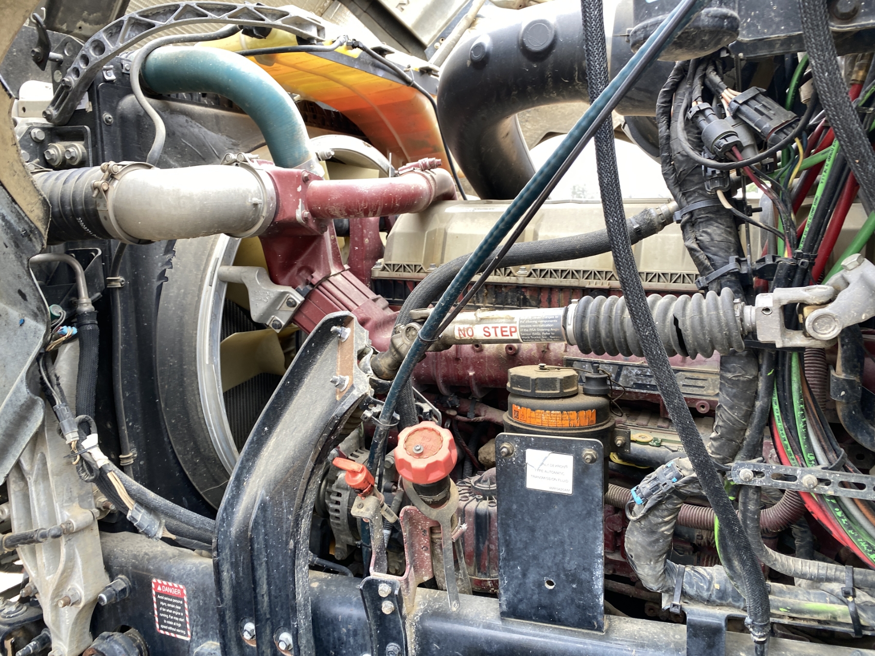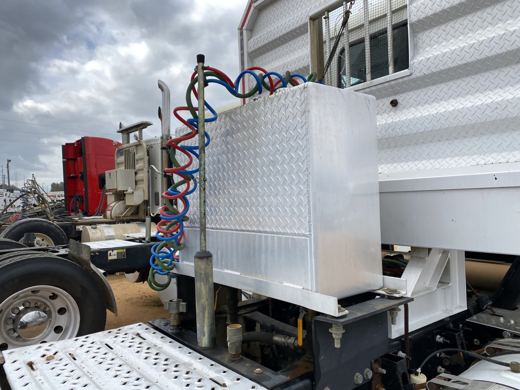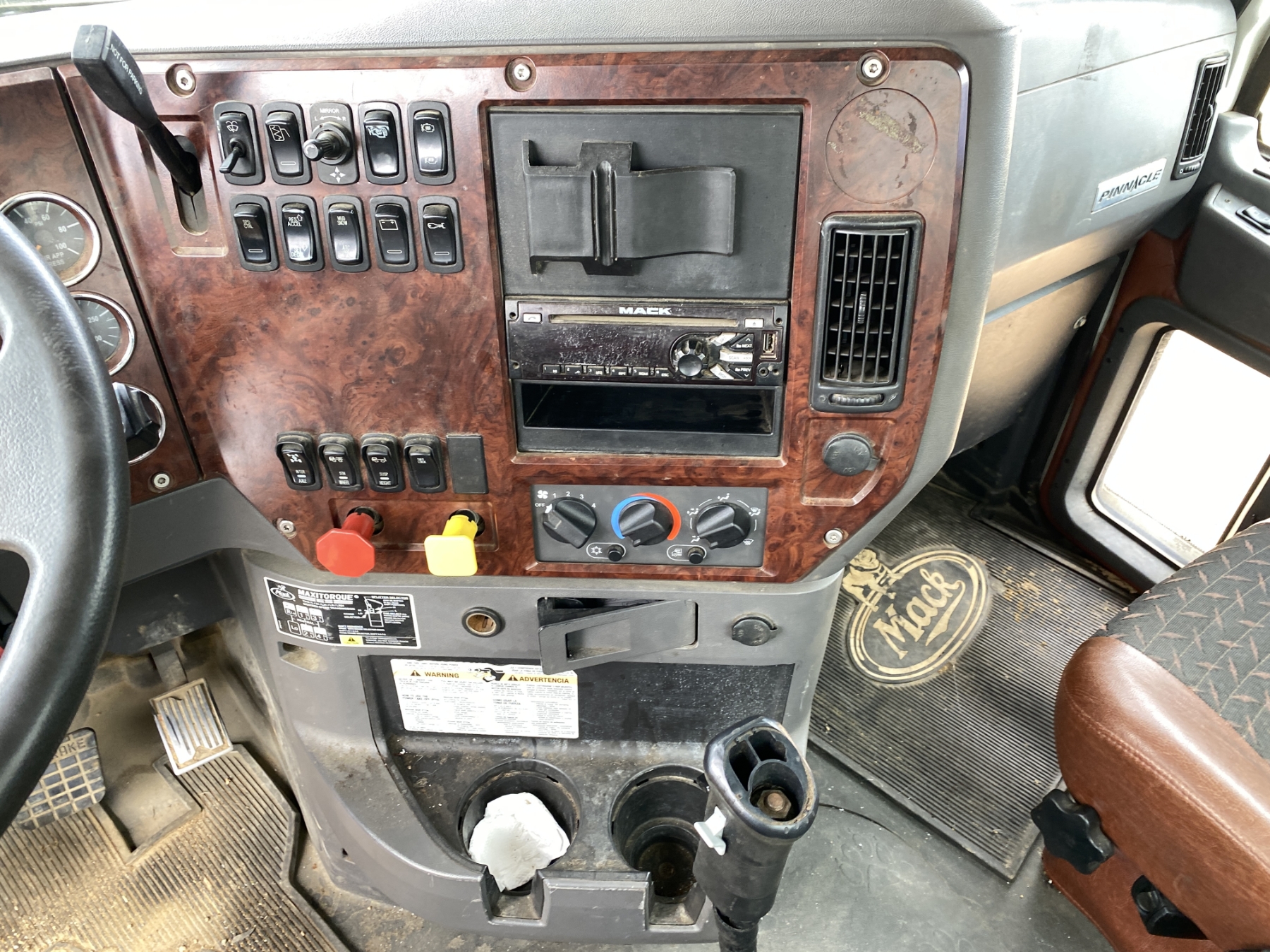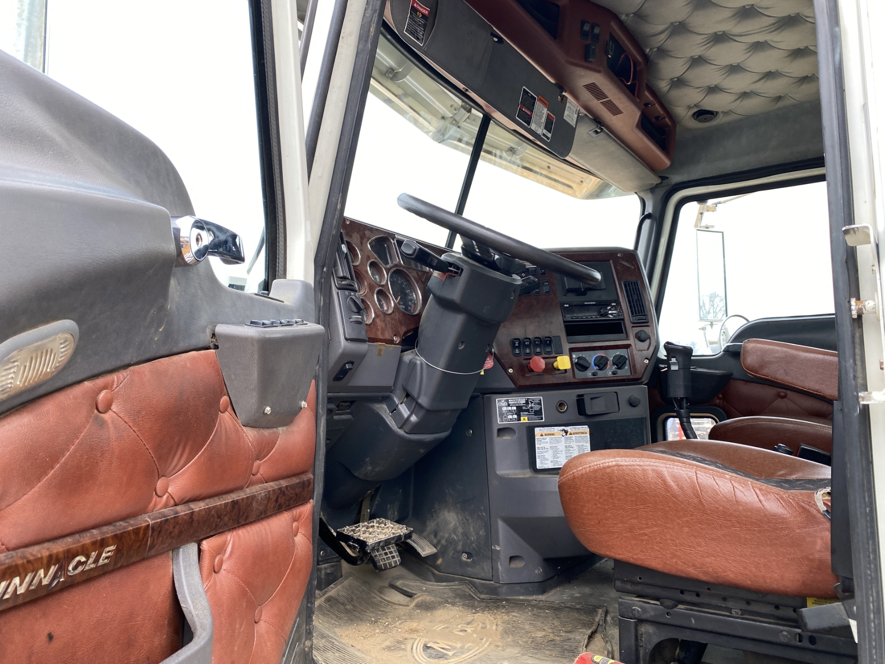 T/A, 505 HP Mack MP8 engine, 18 speed trans, 46K rears air ride, 14,320 lb. front, 235" W/B, wet kit, alum headache rack, 11R24.5 tires, all alum