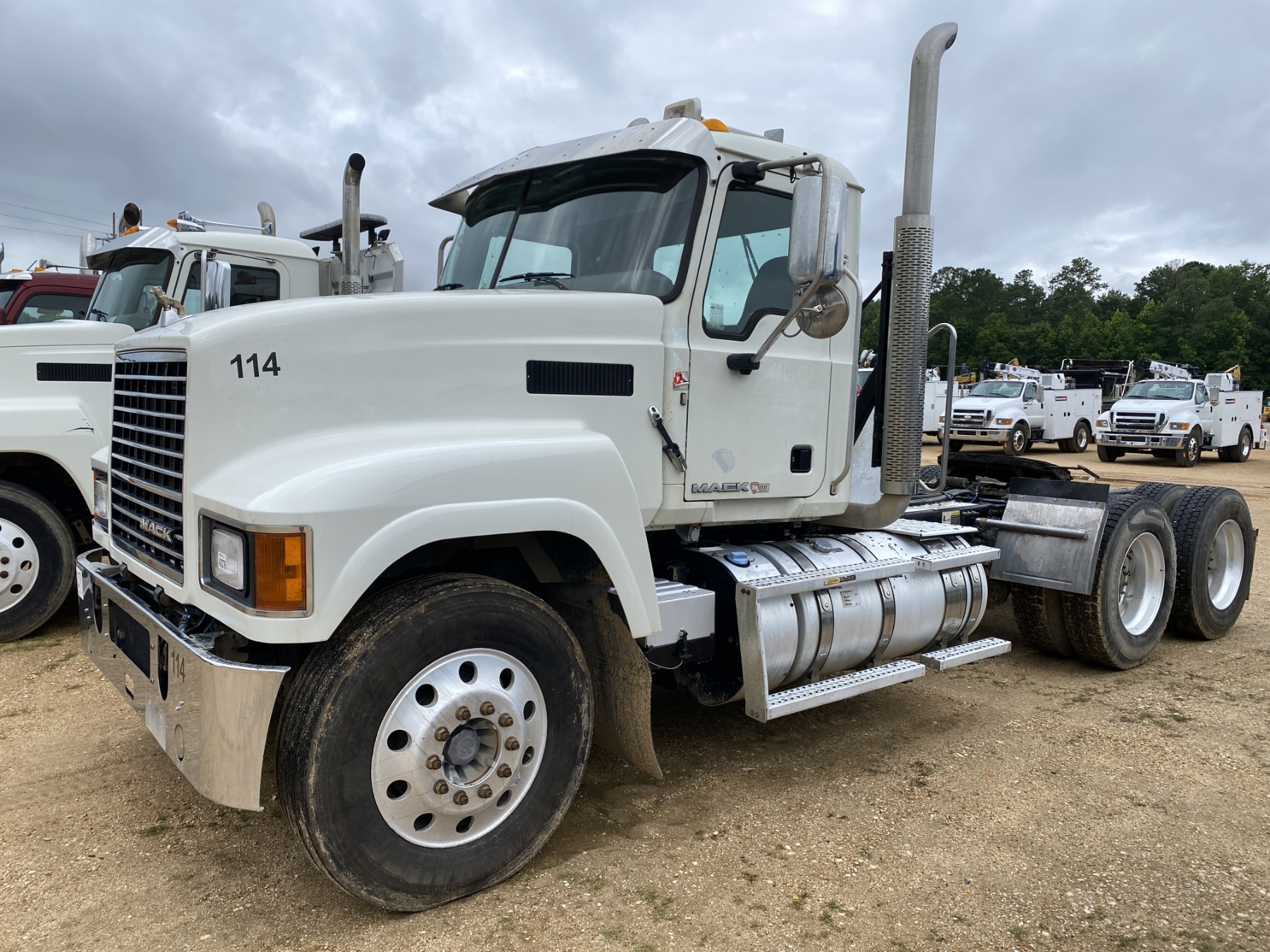T/A, 445 HP MP8 Mack engine, Mack mDrive auto shift trans, 40K rears, air ride, 12K front, 215" W/B, wet kit, 11R24.5 tires, all alum
