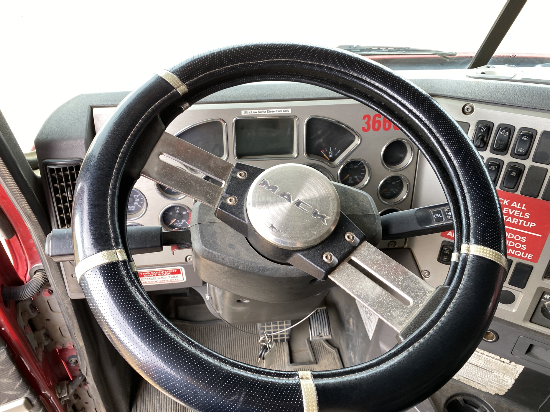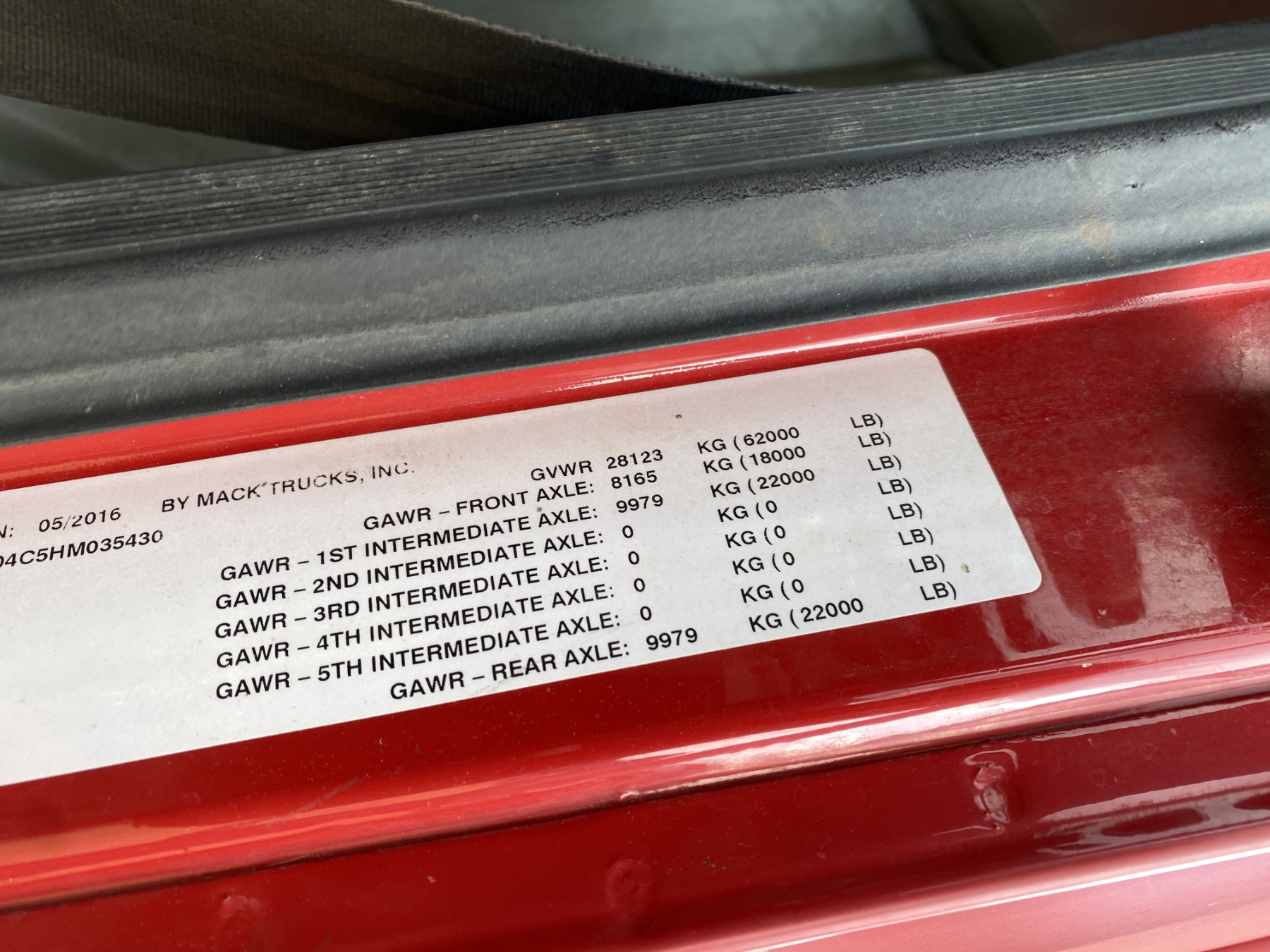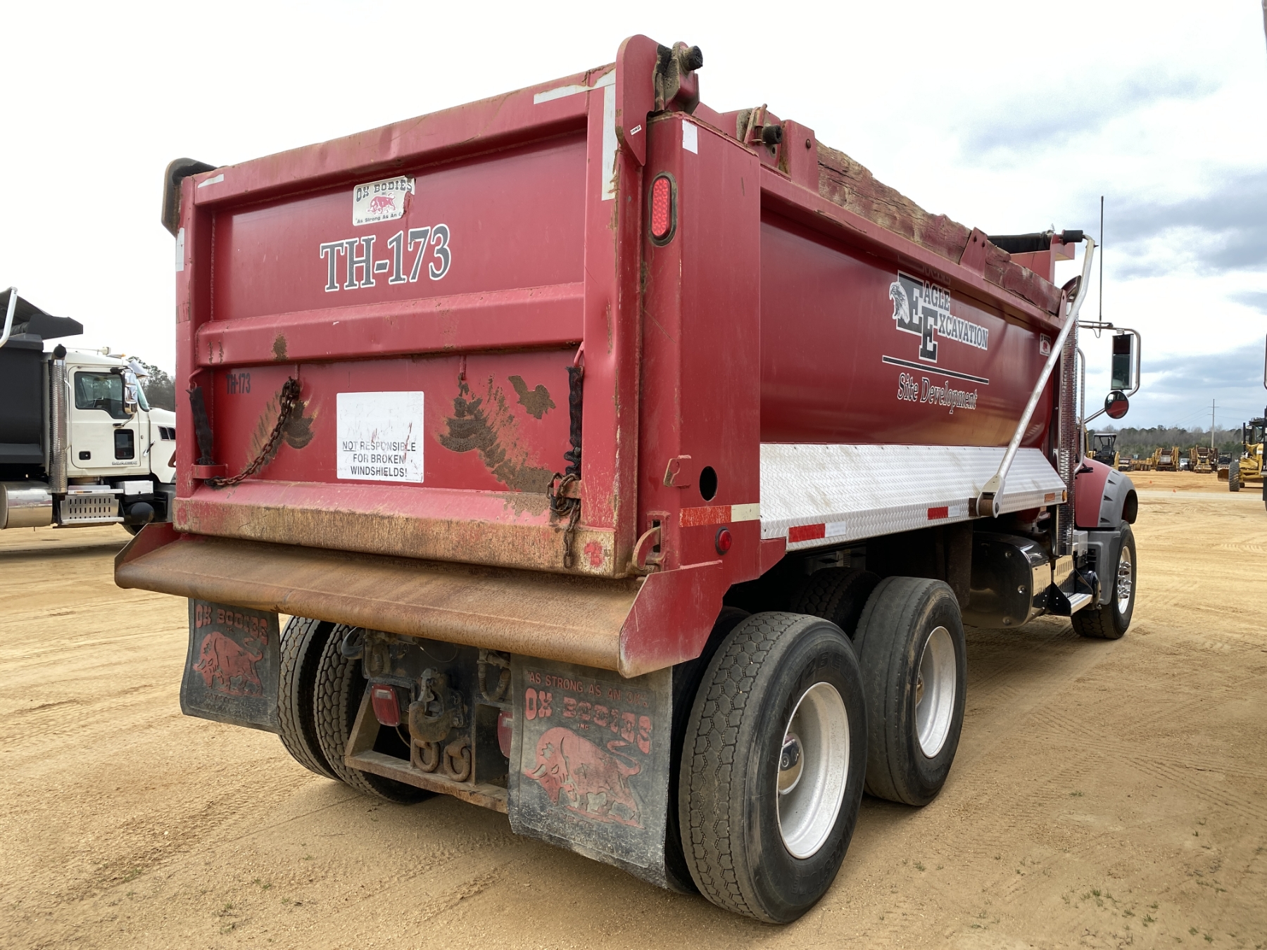 T/A, Mack MP7 engine, Allison A/T, 44K rears, 18K front, 16' Hard Ox body, high-lift gate, 11R22.5 rear tires, 385/65R22.5 front tires