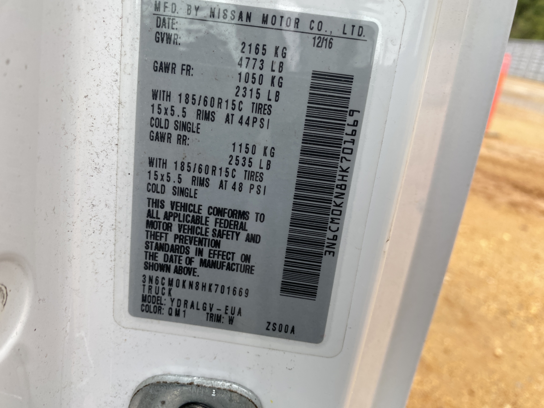 Vehicle ID Number: 3N6CM0KN8HK701669