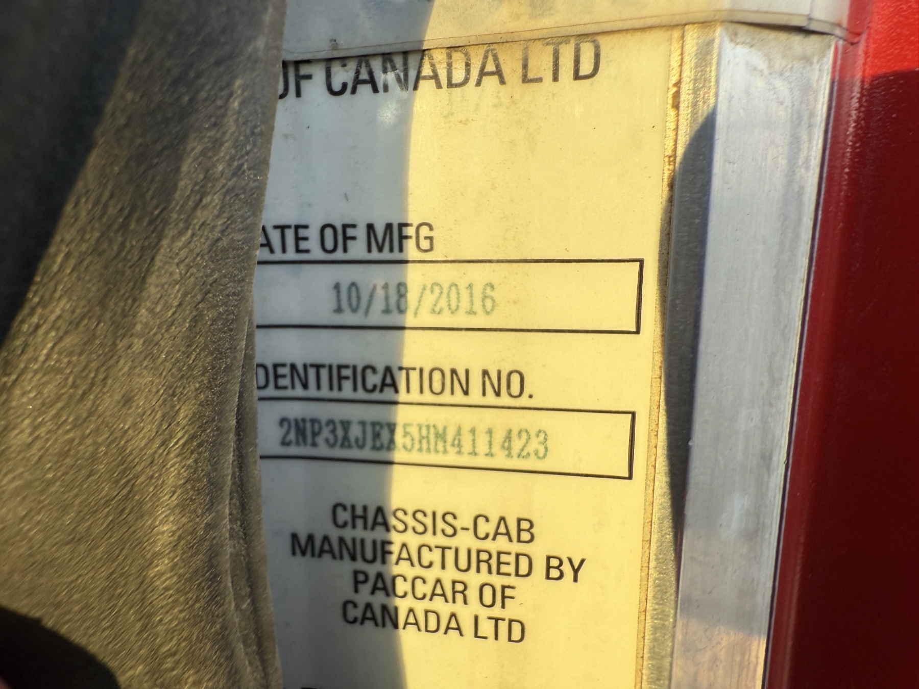 Vehicle ID Number: 2NP3XJEX5HM411423