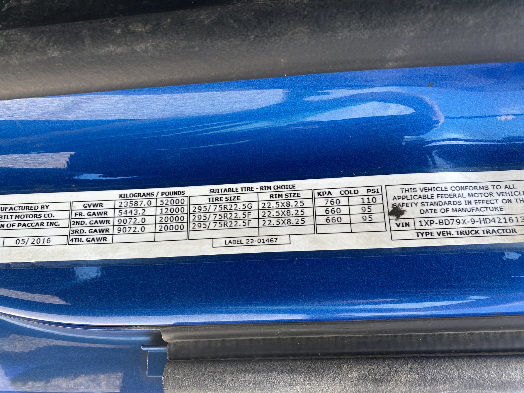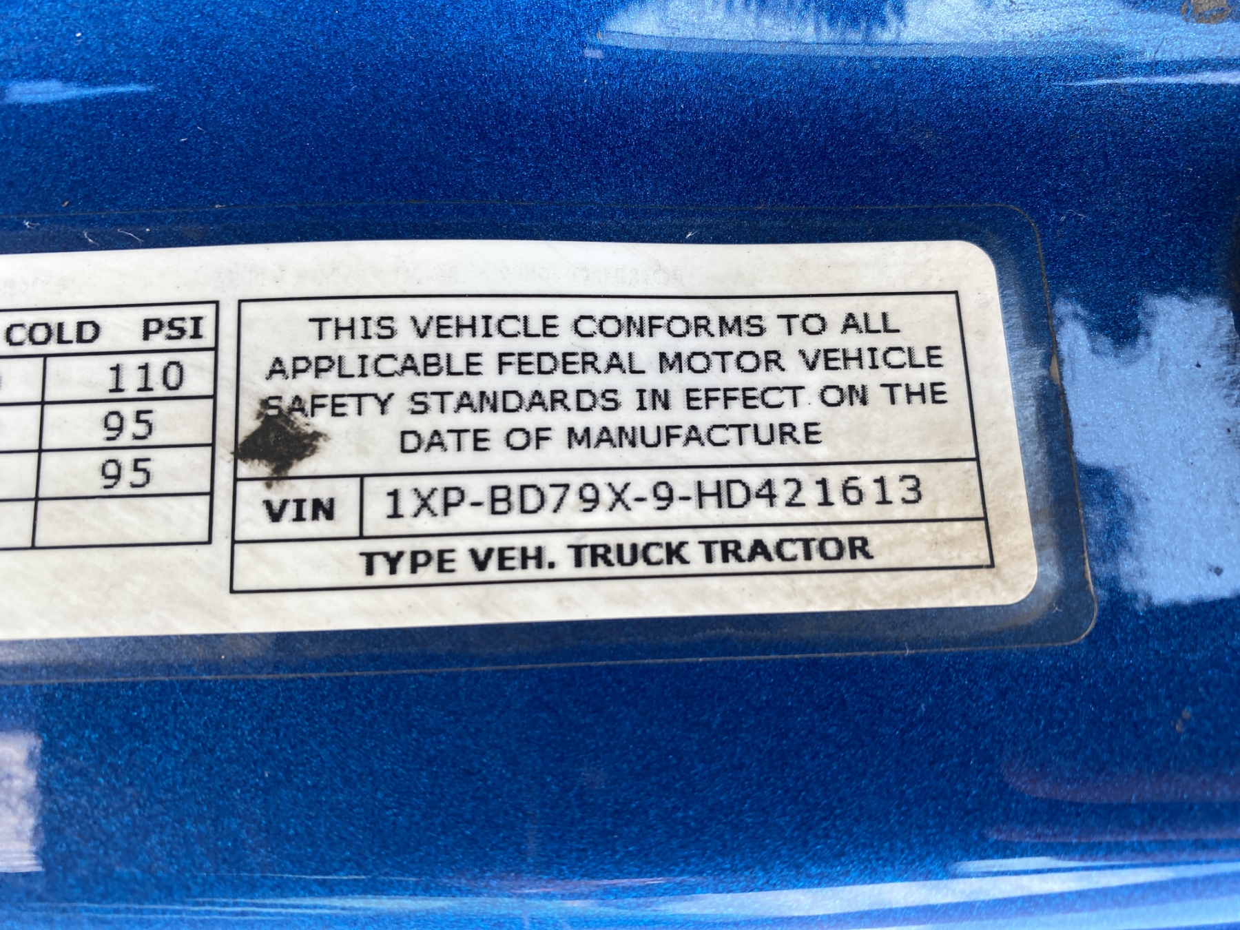 Vehicle ID Number: 1XPBD79X9HD421613